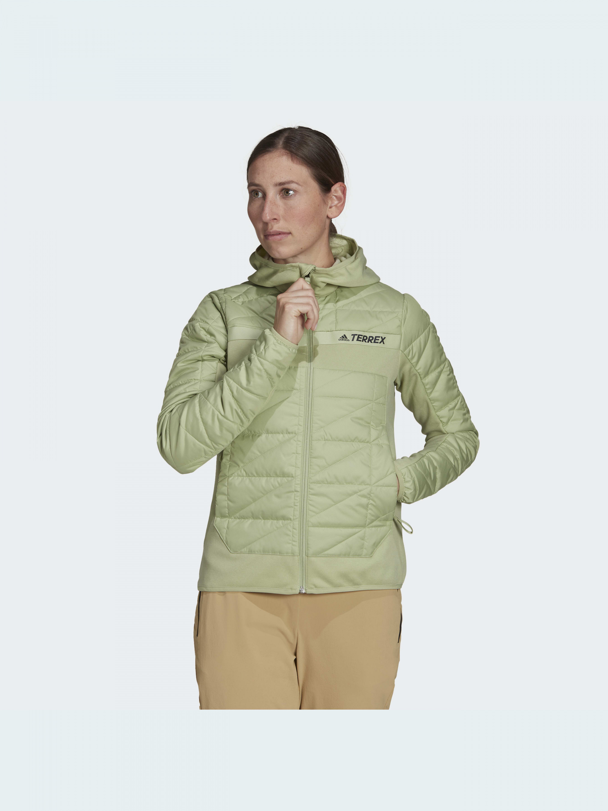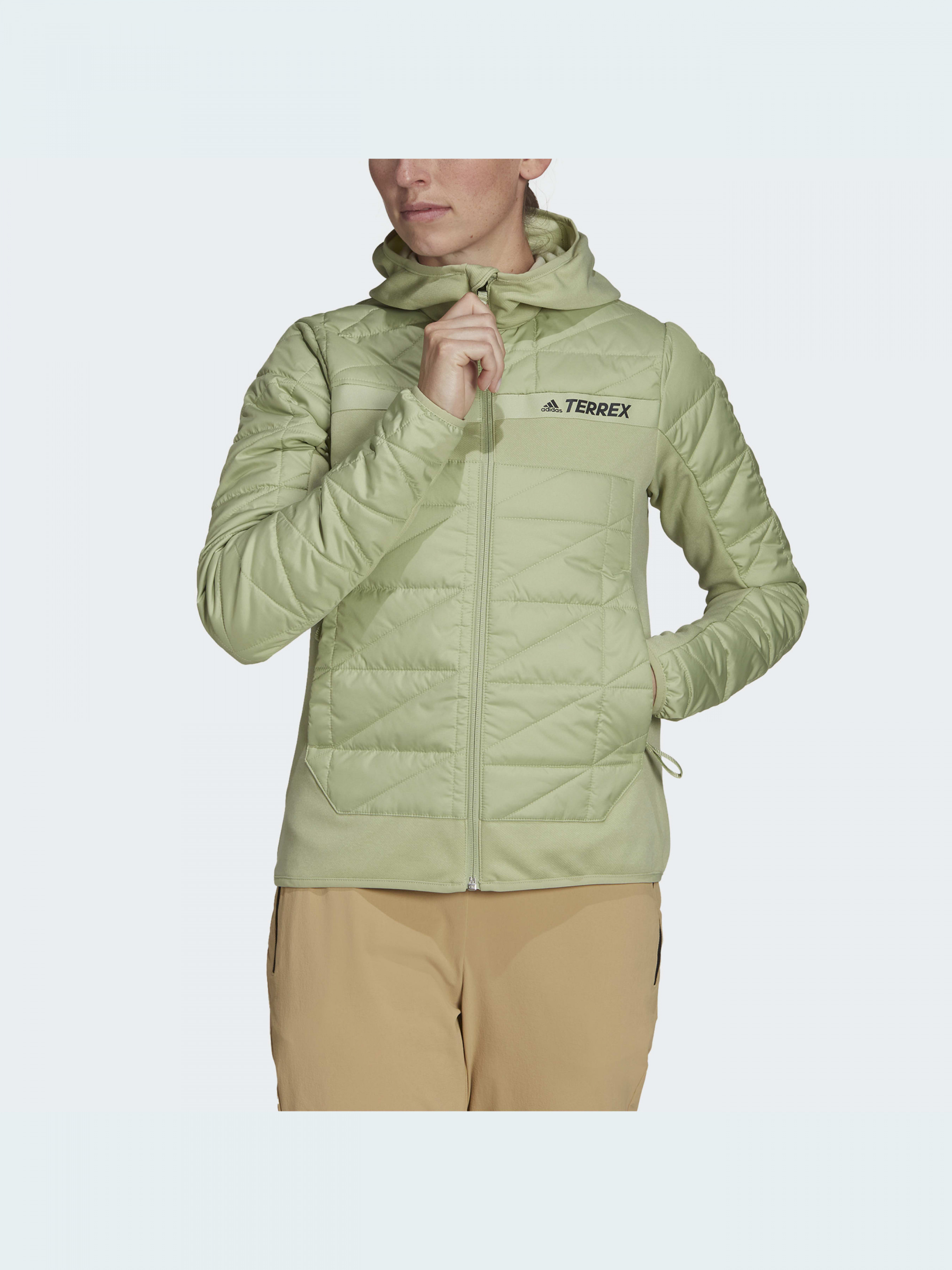 Комфортно чувствовать себя на трейле поможет правильная экипировка. Положи в рюкзак эту гибридную куртку adidas Terrex. Специальный дизайн с продуманными зонами вентиляции удерживает тепло внутри и при этом позволяет телу дышать. Ткань с технологией AEROREADY впитывает влагу, сохраняя ощущение сухости. Стеганый синтетический наполнитель согревает, когда ты останавливаешься, чтобы сделать передышку.В состав модели входит материал Primegreen, созданный из переработанных волокон.