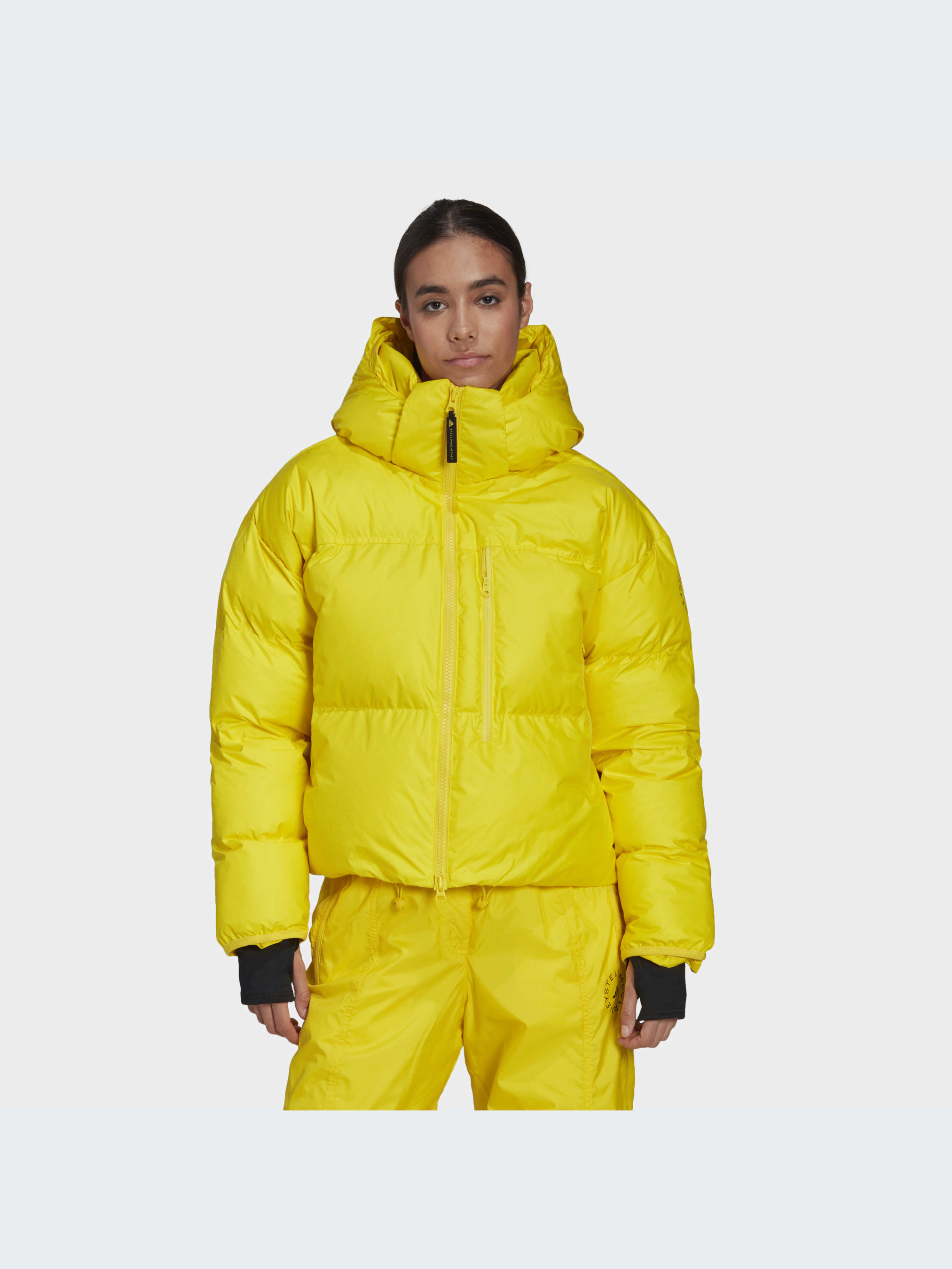 Не смотря на что что, эта куртка adidas by Stella McCartney укороченна, но в ней все равно все продумано до мелочей. И тепло. И комфорт. В виду того, что наполнителем выступает пух, он обеспечивает твой комфорт при понижении температуры, а водоотталкивающая отделка готова к тому, что вместе с дождем придет и понижение температуры. Отстегивающийся капюшон, регулируемый низ - эта куртка создана для универсальности. Изготовленная из 100% переработанных материалов, эта модель представляет собой лишь одно из наших решений, призванных помочь покончить с пластиковыми отходами.