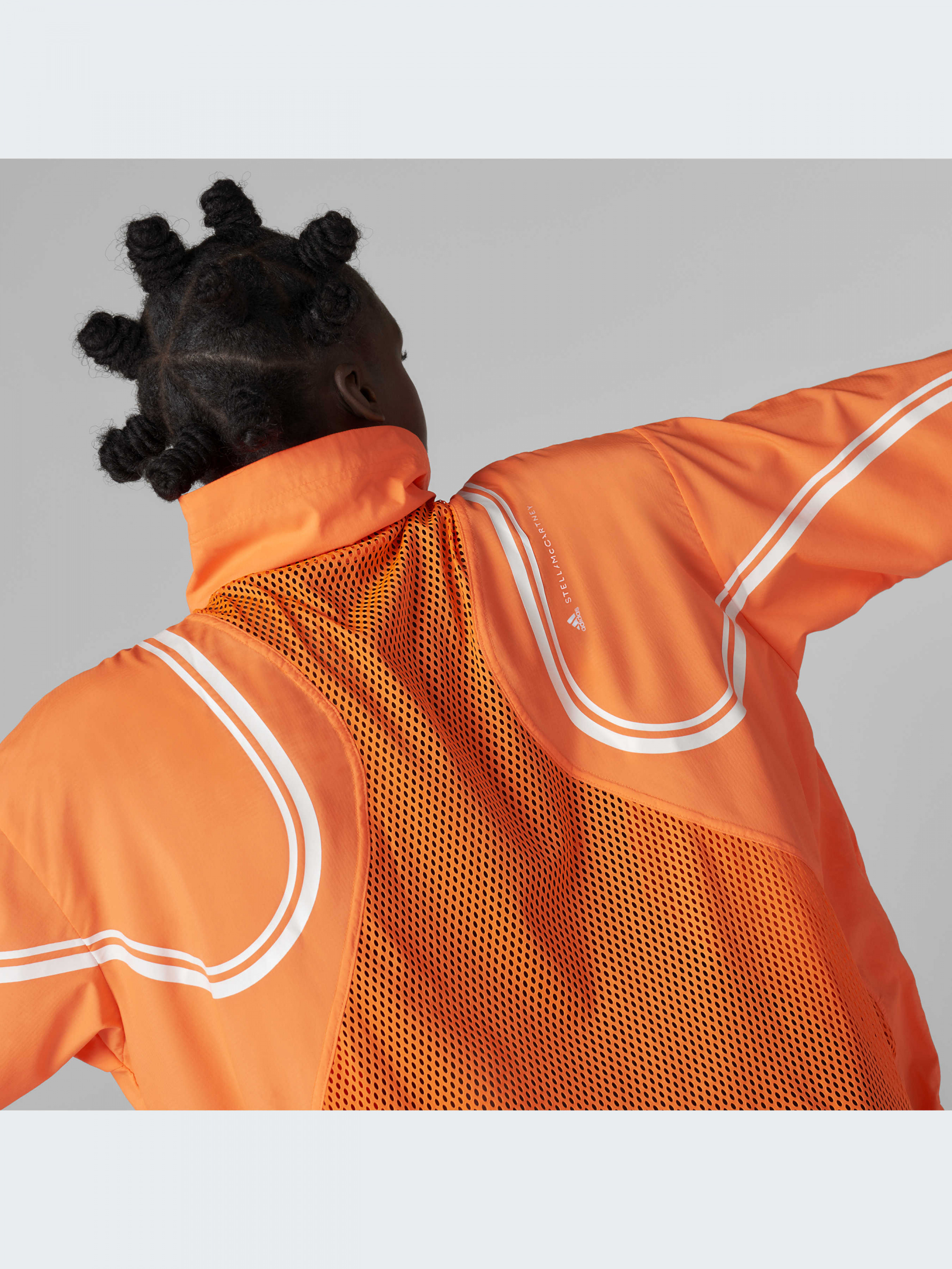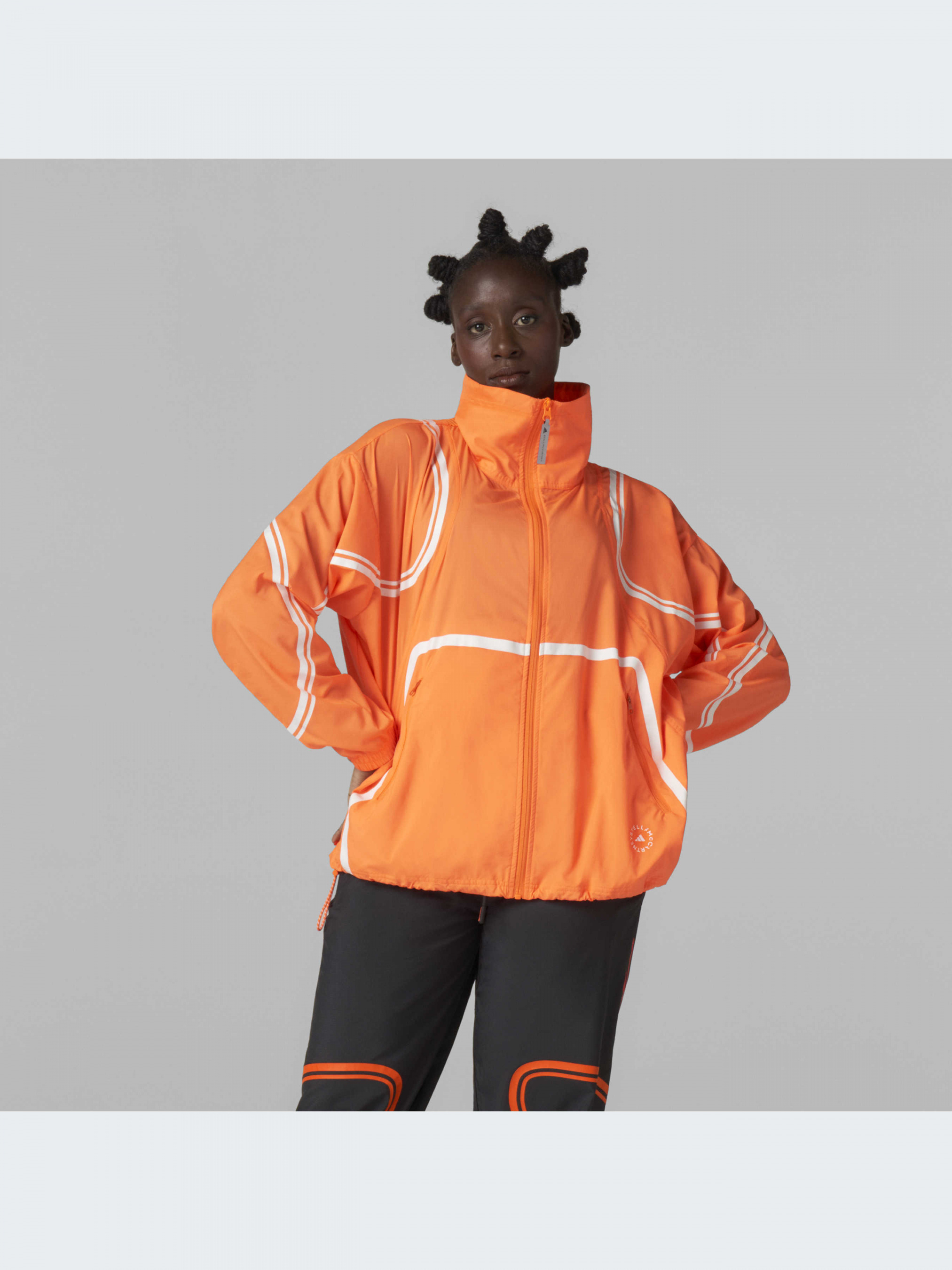В этой стильной куртке adidas by Stella McCartney даже самый сильный ветер не помешает твоей пробежке. Она выполнена из 100% переработанного полиэстера с технологией WIND.RDY, который надежно защищает от ветра, не ограничивая твою скорость.Сетчатая вставка и открытая кокетка на спине создают интересные акценты и обеспечивают циркуляцию воздуха. А если внезапно выглянет солнце, куртку можно снять и сложить в задний карман.Светоотражающие элементы гарантируют видимость в условиях низкого освещения, если ты выходишь на пробежку рано утром перед работой. В сочетании с брюками TruePace эта куртка надежно защитит тебя от непогоды.