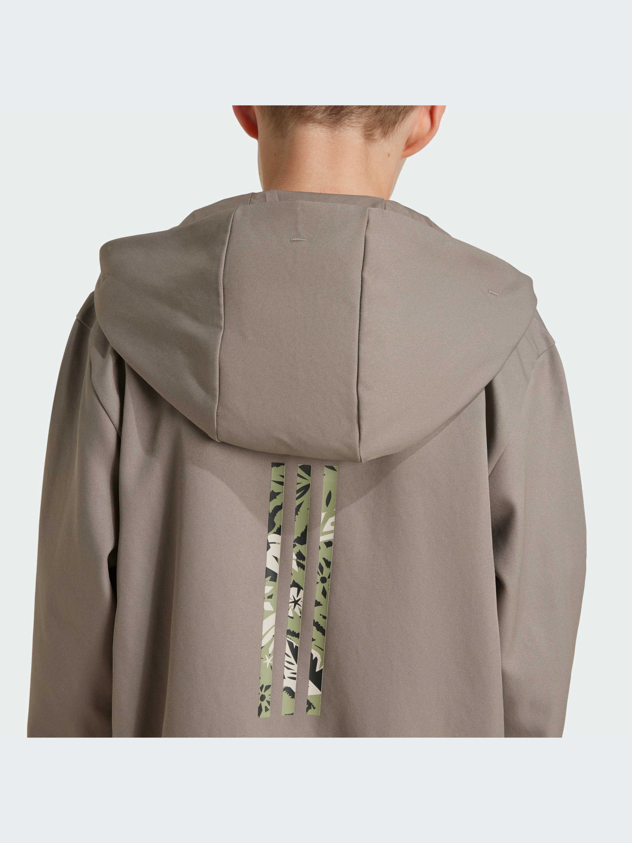 Держи руки свободными, исследуя новую территорию. В этой куртке adidas для подростков есть три кармана, в которые можно положить все самое необходимое, что значительно упрощает путешествие. Яркие детали спереди и сзади отдают дань уважения диснеевскому «Королю Льву». Легкая ткань позволяет свободно передвигаться, а капюшон защищает от непогоды. Этот продукт изготовлен из 100% переработанных материалов. Повторно используя уже созданные материалы, мы помогаем сократить количество отходов и нашу зависимость от ограниченных ресурсов, а также уменьшить негативное воздействие продуктов, которые мы производим.