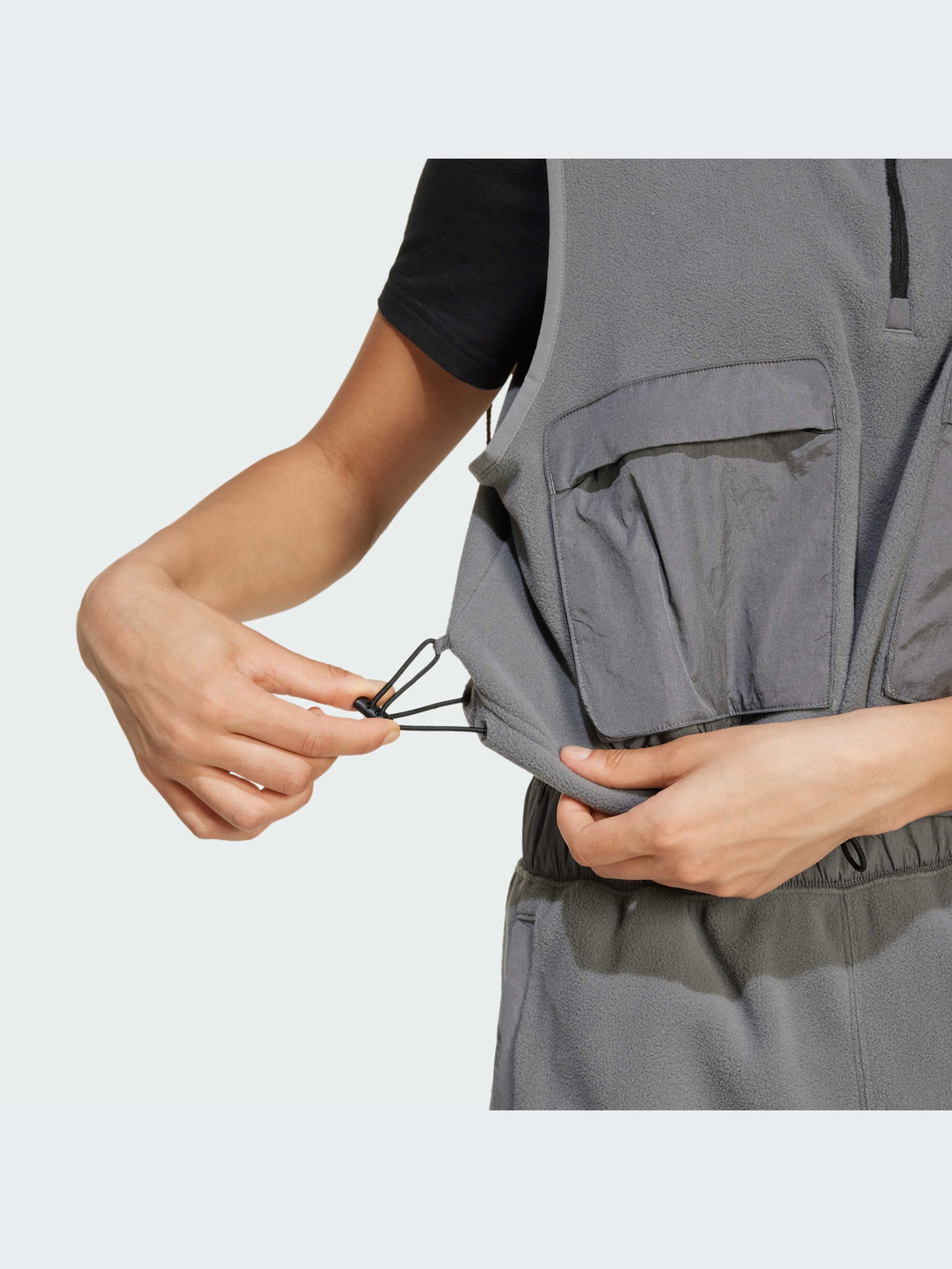 Какими бы ни были твои планы на выходные, этот флисовый жилет adidas обязательно тебе пригодится. Уютная ткань не пропускает холод, а регулируемый подол плотно прилегает к телу и сохраняет тепло. Этот наряд идеально подходит как для городской повседневной носки, так и для активного отдыха на природе, позволяя без труда передвигаться по городским улицам и тропам. Этот продукт изготовлен из 100% переработанных материалов. Повторное использование материалов, которые уже были созданы, помогает нам сократить количество отходов и зависимость от ограниченных ресурсов, а также уменьшить воздействие продукции, которую мы производим.