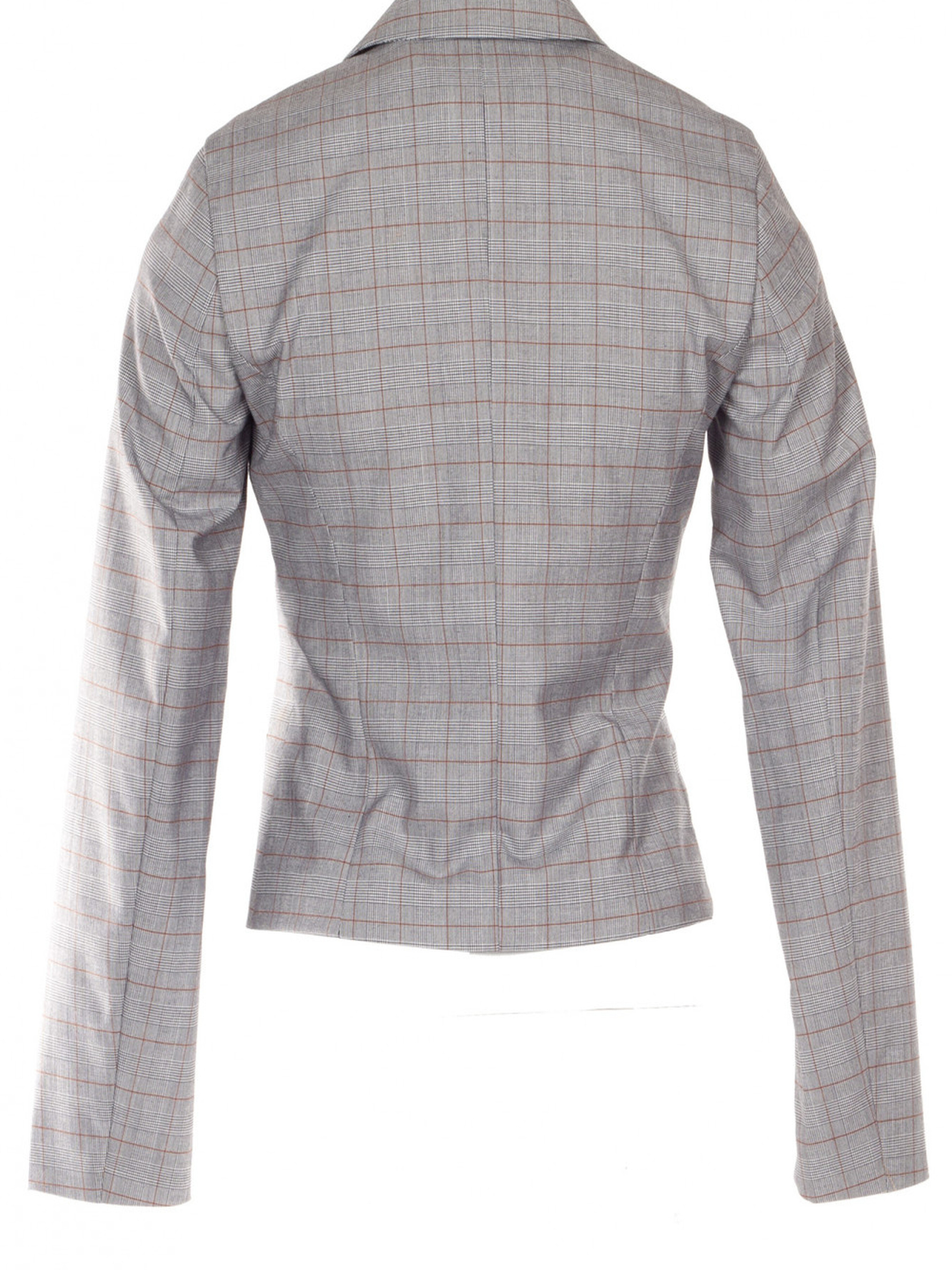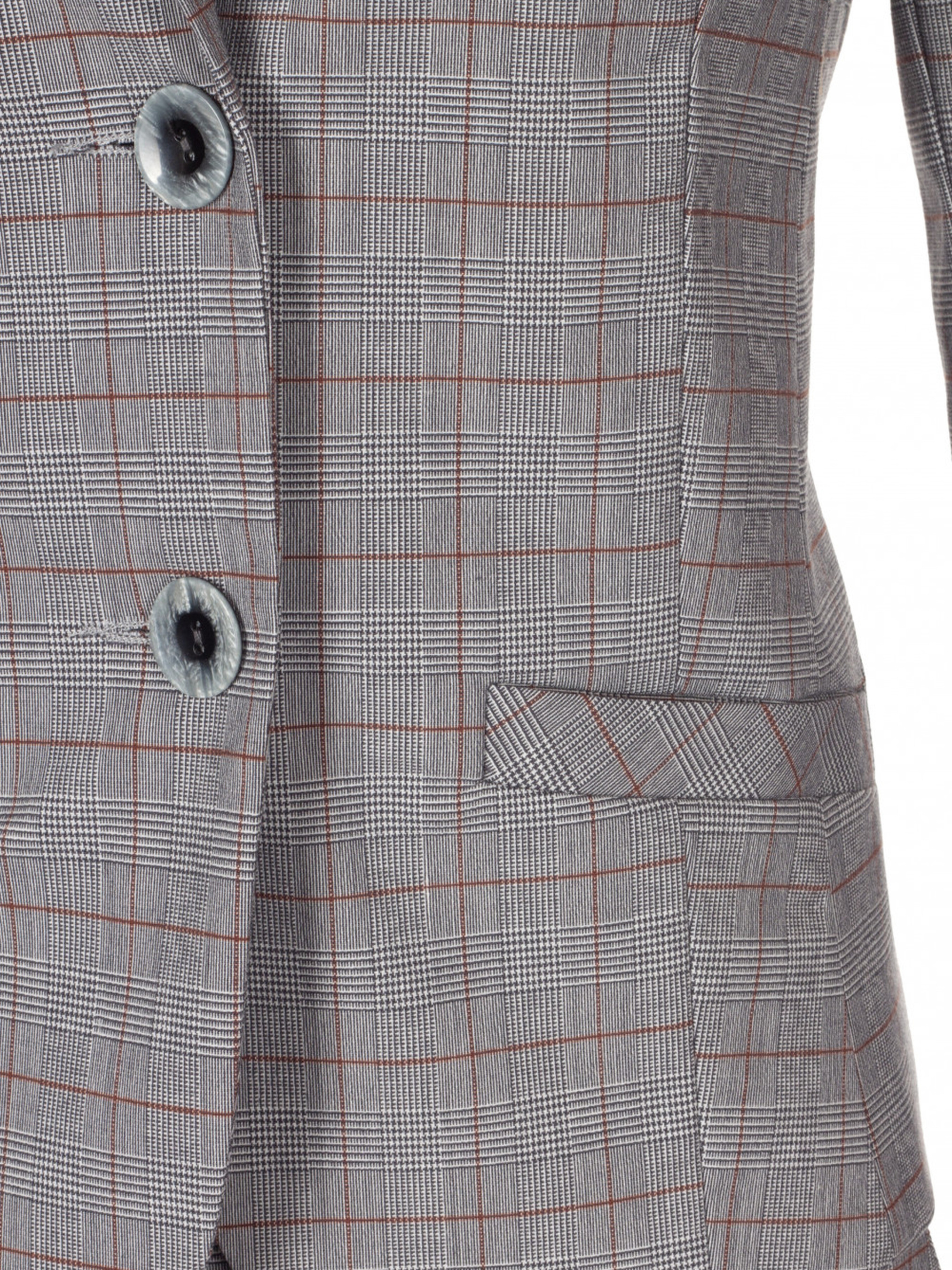 Короткий, приталений жакет в англійському стилі в сіру клітку з коричневою смужкоюЦей стильний короткий жакет в англійському стилі виготовлений з високоякісної тканини в сіру клітку з елегантною коричневою смужкою, що надає йому класичного шарму та сучасної витонченості. Жакет має приталений силует, що підкреслює фігуру, ідеально підходить для створення елегантних та стильних образів. Жакет оснащений відкладним англійським воротником з лацканами, що додає класичності, а довгі рукави та застібка на дві ґудзики створюють витончений вигляд. Для зручності та практичності жакет має кармани з листочкою спереду. Цей жакет ідеальний для стильних офісних луков або для вечірніх виходів, коли потрібно виглядати елегантно, але не перевантажено.