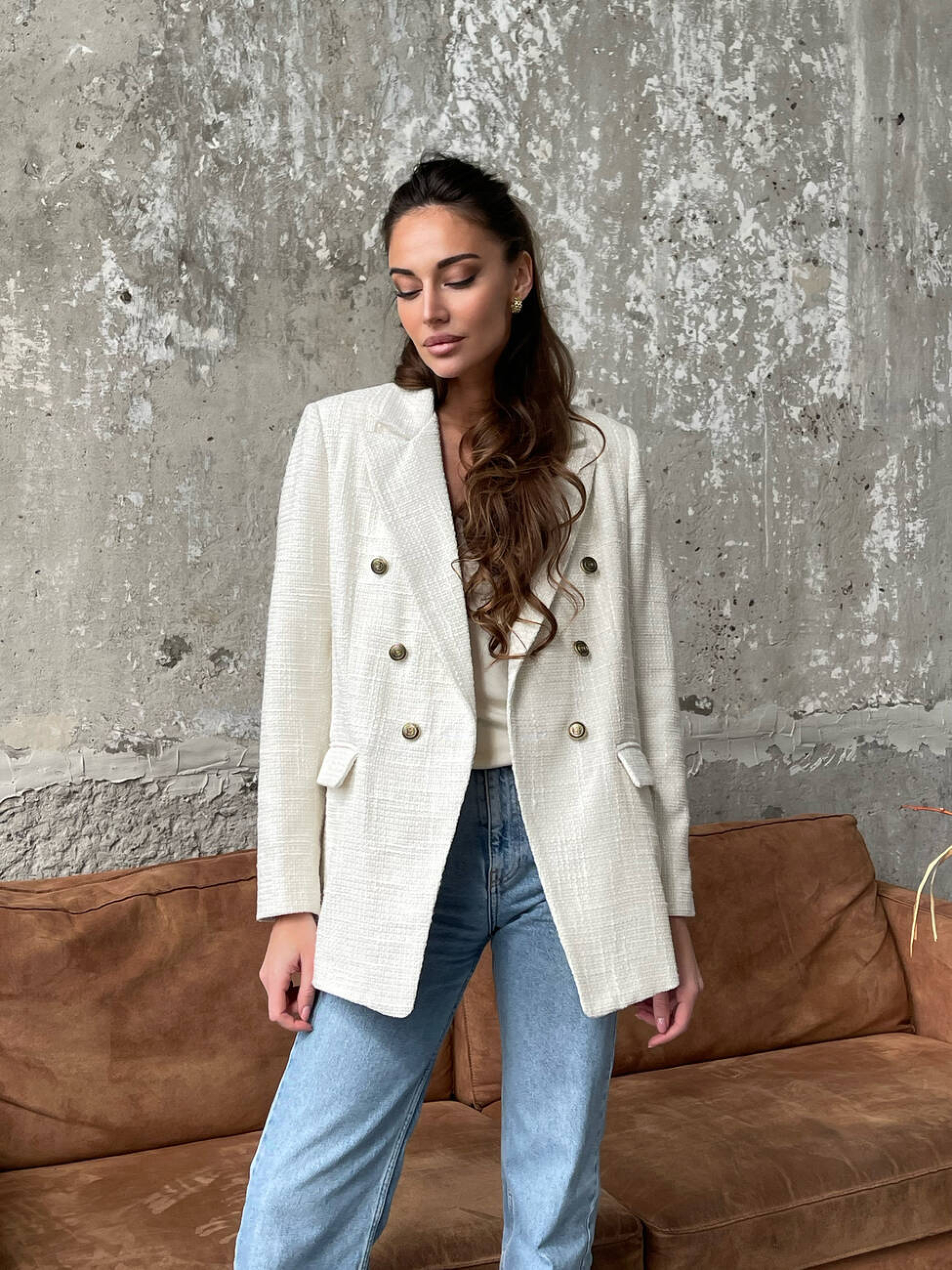 Характеристики: Розмір: S–L Тканина: костюмна (основа) Підкладка: шовк Армані Кольори: темний беж, молоко, чорний Догляд: ручне або делікатне машинне прання при температурі до 30 °C прасування з виворітного боку при середній температурі (до 150 °C) не відбілювати не викручувати після прання хімічна чистка дозволена Піджак з костюмної тканини — це гармонійний синтез нестаріючої класики, бездоганної якості та сучасних тенденцій. Модель має лаконічний крій, що красиво підкреслює фігуру та забезпечує комфорт у русі. Завдяки приємній на дотик підкладці з шовку Армані піджак м’яко лягає по фігурі й не обмежує рухів. Ідеально поєднується з брюками, спідницями, сукнями чи джинсами, дозволяючи створювати як ділові, так і повсякденні образи.