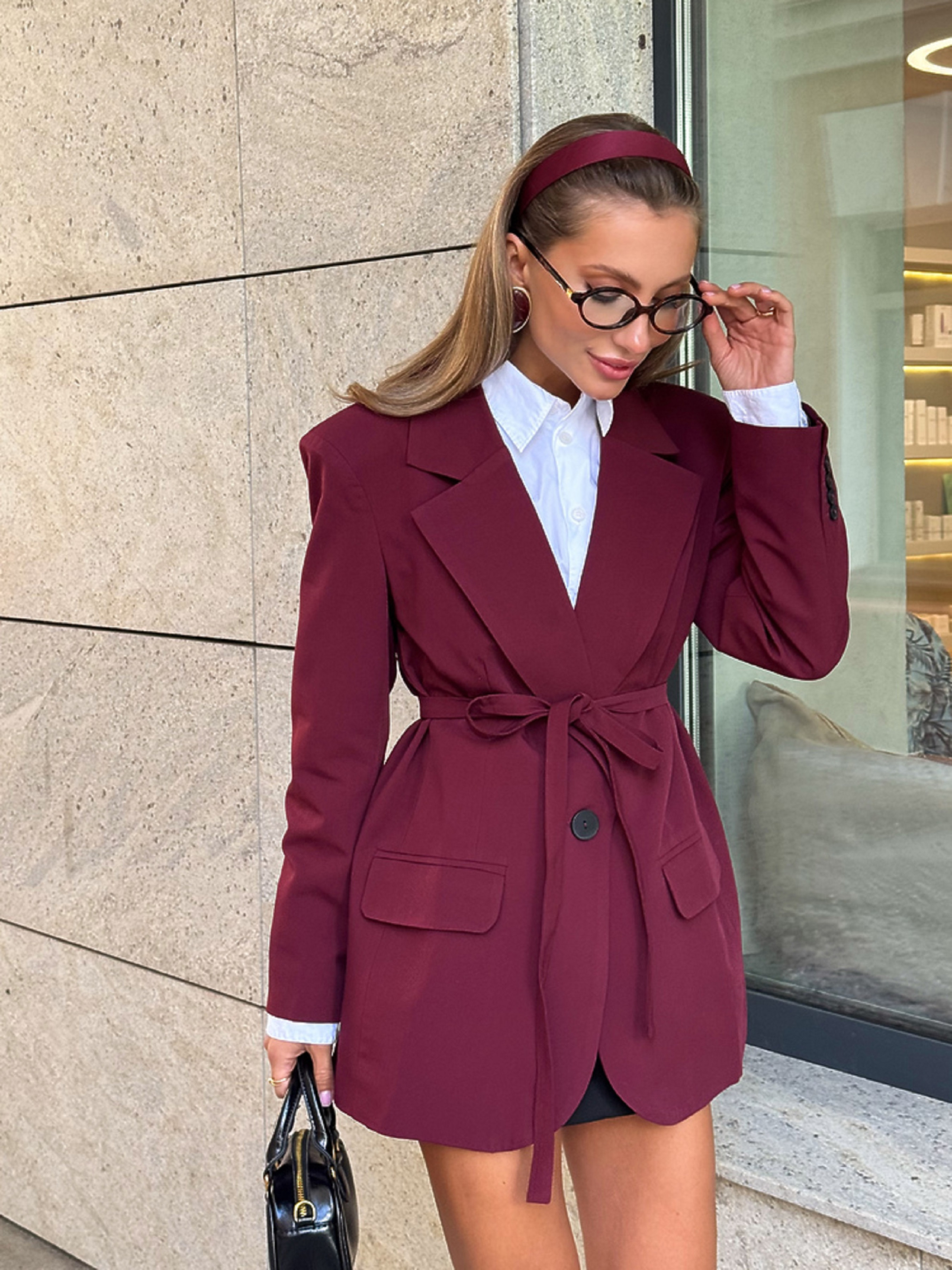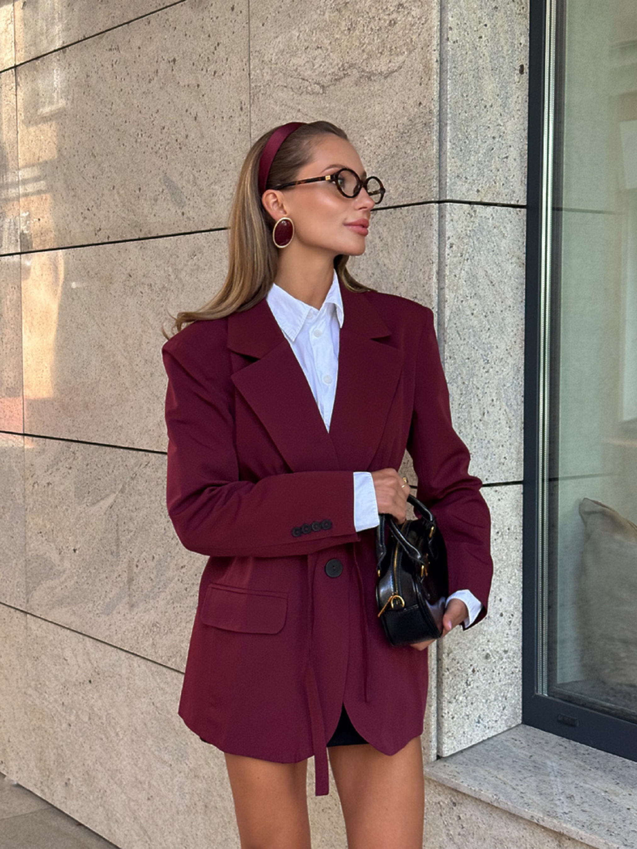 Характеристики: Розмір: one size (XS–L) Тканина: преміальна костюмка (70% бавовна, 30% поліестер) Підкладка: 100% поліестер Колір: бургунді Кишені: 2 діючі Пояс: тонкий, шнурівка Особливості та характеристики: прямий, подовжений крій піджака створює елегантний, жіночний силует; об’ємні плечі додають виробу структури і стилю; діючі кишені дозволяють носити дрібні речі з комфортом; пояс-шнурівка акцентує талію та надає образу витонченості; тканина преміальної якості забезпечує довговічність, приємна до тіла, не мнеться та легко утримує форму; піджак ідеально поєднується як з класичними брюками, так і з джинсами чи спідницями. Догляд: машинне прання при делікатному режимі або ручне прання при температурі до 30 °C прасування при середній температурі суха чистка допускається відбілювання заборонено Стильний жіночий піджак КЛАСИКА стане універсальним елементом гардероба. Прямий подовжений крій з об’ємними плечима підкреслює витончений силует і додає образу строгої елегантності, а діючі кишені та тонкий пояс-шнурівка поєднують практичність і сучасний стиль.