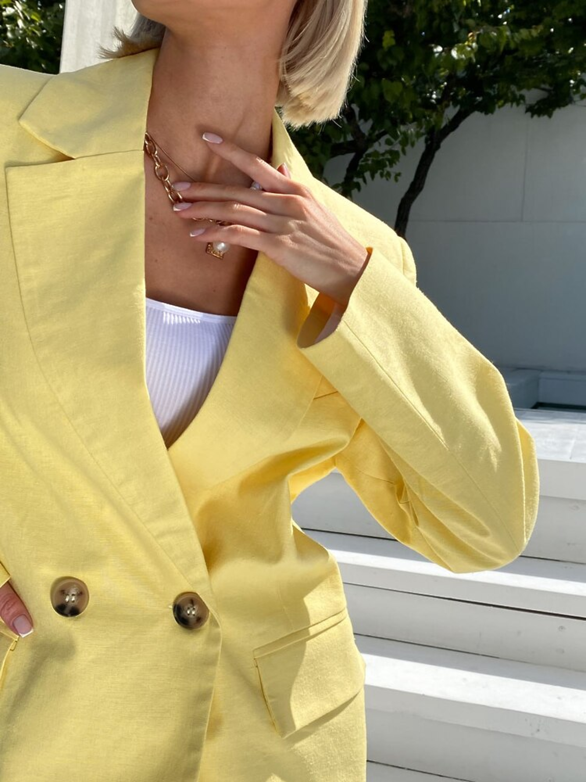 Класичний піджак LOVE — ідеальний варіант для стильного та сучасного образу. Модель виконана у трендовому «чоловічому плечі», що додає суворості силуету, але при цьому залишається жіночною завдяки правильному крою та карманам. Легкий шліць по спинці та бавовняна підкладка роблять піджак зручним і практичним для щоденного носіння. Деталі та переваги Трендовий крій «з чоловічого плеча» — сучасний силует із легким акцентом на плечах Кармани спереду — практичні та естетичні Шліць по спинці — забезпечує комфорт та свободу рухів Підкладка: бавовняна штапель — приємна до тіла та дихає Льняна тканина — натуральна, легка та комфортна Характеристики Тип виробу: жіночий піджак Силует: класичний, злегка приталений Матеріал: льон Підкладка: штапель Розмір: S (42-44), M (44-46) Кольори: жовтий, лайм Сезон: весна-літо Як носити Поєднуйте піджак LOVE з брючним костюмом для офісного образу, джинсами для повсякденного стилю або зі спідницею для романтичного вигляду.