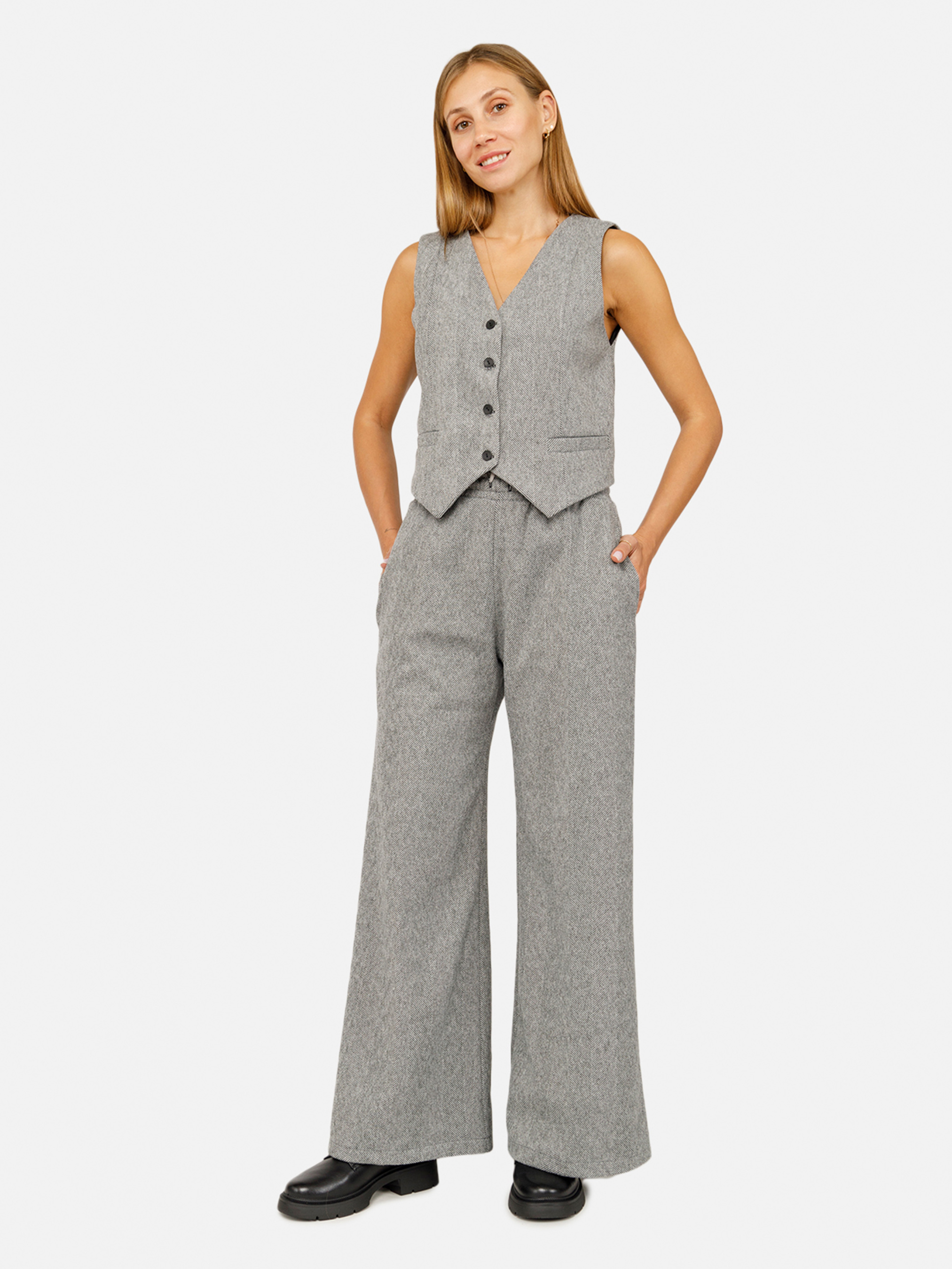 Женский жилет – это стильный и практичный элемент гардероба, который подойдет для любого сезона. Он придает стилю вашему образу при этом не ограничивая движений. Жилет можно легко сочетать с рубашками или блузами, создавая разнообразные образы – от повседневного до делового офисного. Изготовлен из качественного материала, он обеспечивает комфорт и удобство во время ношения. Эта универсальная одежда идеально подходит для работы, деловых встреч или праздничных мероприятий, придавая вашему стилю легкость и элегантность. Особенности: Цвет жилета: серый, однотонный. Материал изготовления: костюмная ткань. Состав: 55% полиэстер, 40% вискоза, 5% эластан. Крой: прямой. Длина: короткая. Сезон: демисезон. Параметры модели: Рост: 170 сантиметров. Размер на модели: 46. Страна изготовитель: Украина.