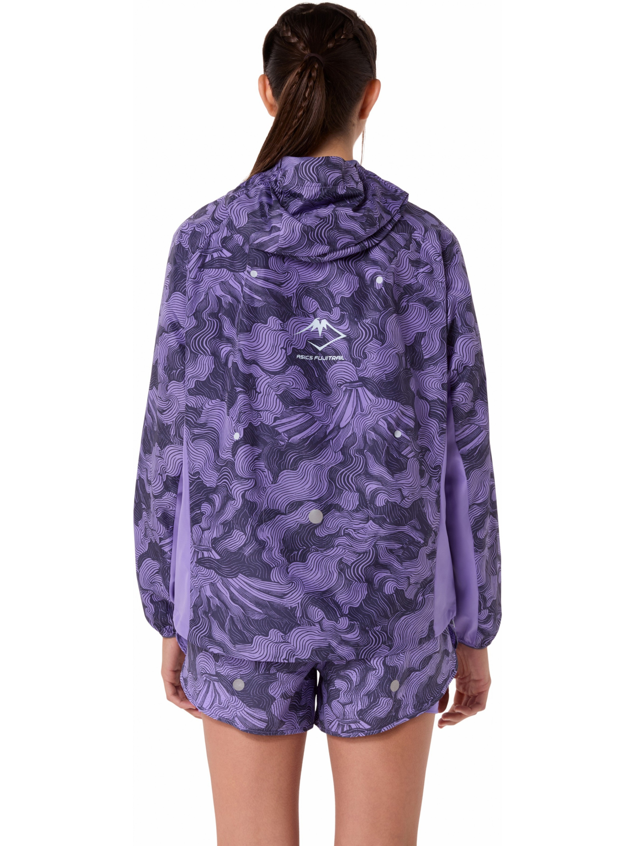 Ветровка спортивная FUJITRAIL PACKABLE JACKET — это функциональная модель для трейлового бега, которая обеспечивает защиту от ветра и дождя во время приключений вне асфальта. Выполненная из легкой ткани ripstop, она совмещает прочность и малый вес, что особенно важно на дистанции. Конструкция позволяет компактно сложить куртку в собственный задний карман, чтобы удобно хранить ее во время движения. Эластичный капюшон с регулировочным шнурком помогает настроить посадку индивидуально. Расширяющаяся панель на спине обеспечивает комфорт поверх бегового или трейлового жилета, не сковывая движений. Дополнительные петли для больших пальцев фиксируют рукава и повышают удобство во время активности. Модель украшена принтом, вдохновленным горой Фудзи, подчеркивающим характер линейки FUJITRAIL. Светоотражающие элементы улучшают видимость в темное время суток. По меньшей мере, 50% основного материала изготовлено из переработанного сырья, что способствует уменьшению отходов и сокращению выбросов углерода.