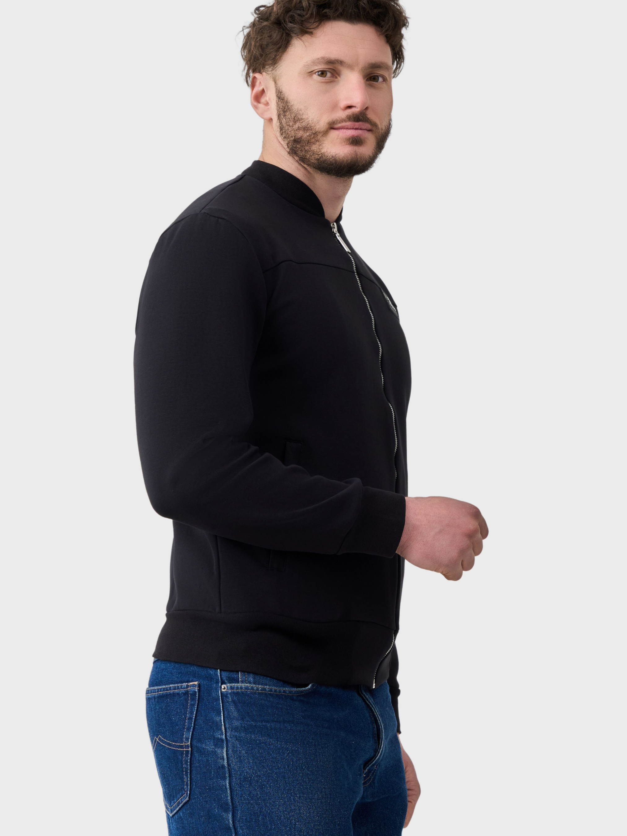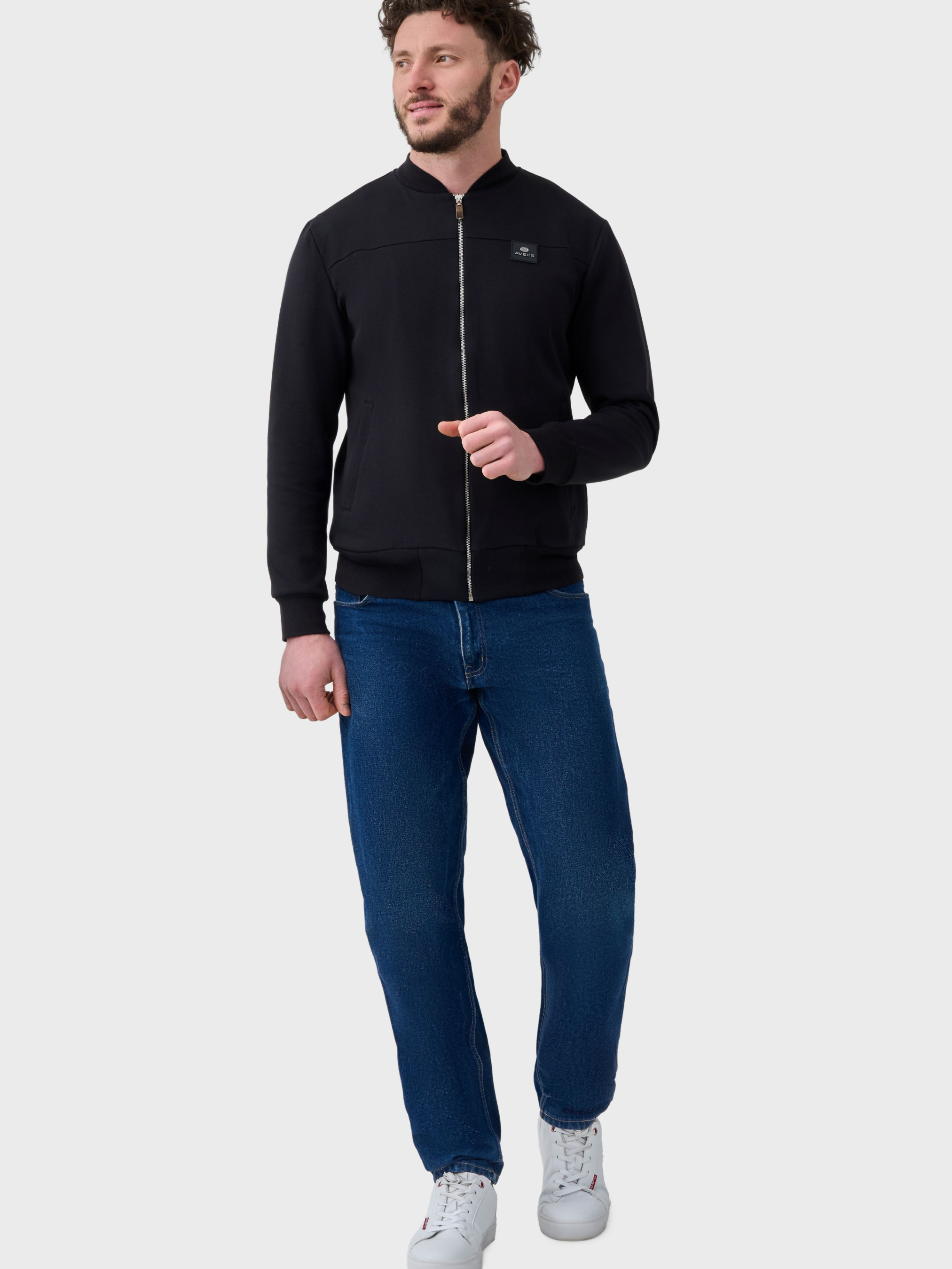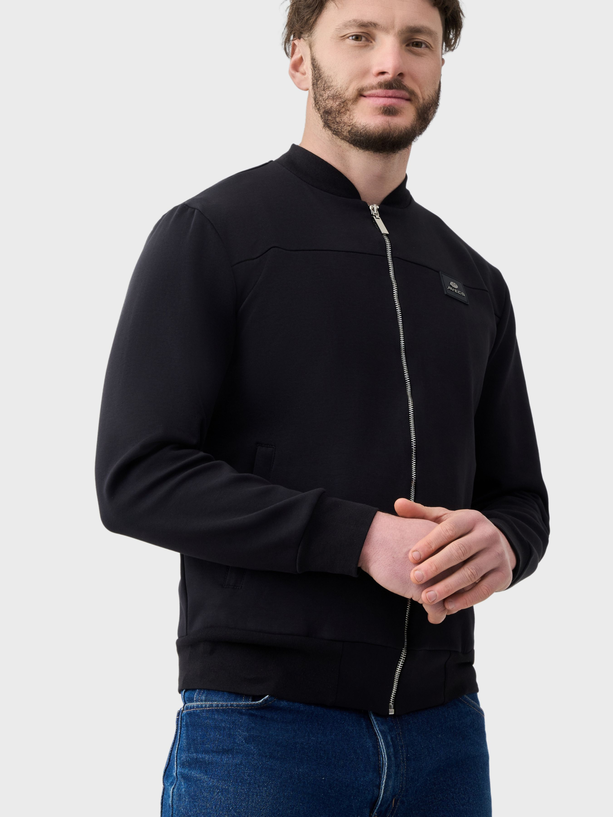 Черная кофта-бомбер AVECS с классическим круглым воротам предназначена для комфортного ежедневного ношения и активного городского ритма. Лаконичный дизайн и продуманный крой делают модель универсальной для повседневных образов, прогулок и путешествий. Кофта выполнена из двухстороннего трикотажа "Double Face", сочетающего мягкость, плотность и износостойкость. Материал приятен к телу, хорошо сохраняет форму и обеспечивает комфорт во время продолжительного ношения. Рукава на манжетах придают практичность, а аккуратная посадка не ограничивает движений и подчеркивает современный силуэт. Благодаря универсальному черному цвету кофта легко сочетается с элементами гардероба в спортивном и casual стиле. Кофта AVECS с капюшоном из трикотажа "Double Face" – это сочетание комфорта, практичности и минималистичной эстетики для ежедневного использования. Особенности: -Трикотаж "Double Face" -Классический круглый ворот -Хорошо сохраняет форму во время ношения -Универсальный дизайн -фирменный логотип -Низ кофты на манжете-резинке -Эргономичный шов в зоне груди -2 боковые карманы защищены молниями Состав: хлопок 80%, полиэстер 20%.