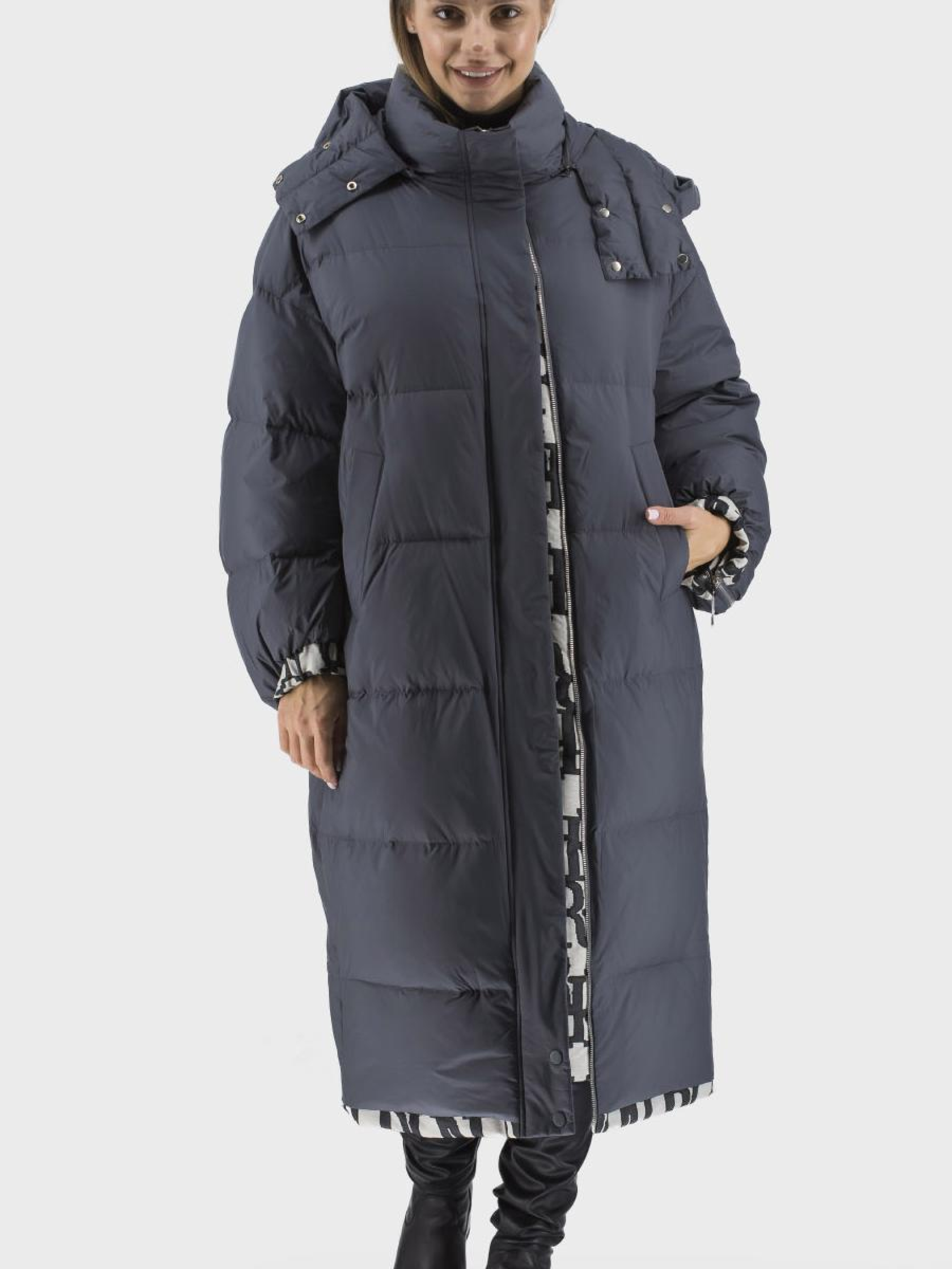 Встречайте стильный женский пуховик для зимы, идеальный выбор для тех, кто ценит уют и модный вид. Выполненный в стильном casual дизайне этот пуховик станет незаменимым элементом вашего зимнего гардероба. Оверсайз силуэт с втачным, широким и спущенным рукавом обеспечивает максимальную свободу движений. Высококачественный утеплитель из гусиного пера и пуха гарантирует тепло во время холодных зимних дней. Застежка на молнию и кнопки обеспечивает удобство, а стойка воротника защищает от ветра. Стеганая текстура с рисунками и надписями придает уникальность. Съемный капюшон и практичные карманы делают этот пуховик очень функциональным. Доступный в цвете: серый, черный, молочный. Идеальный выбор для стильного зимнего образа!