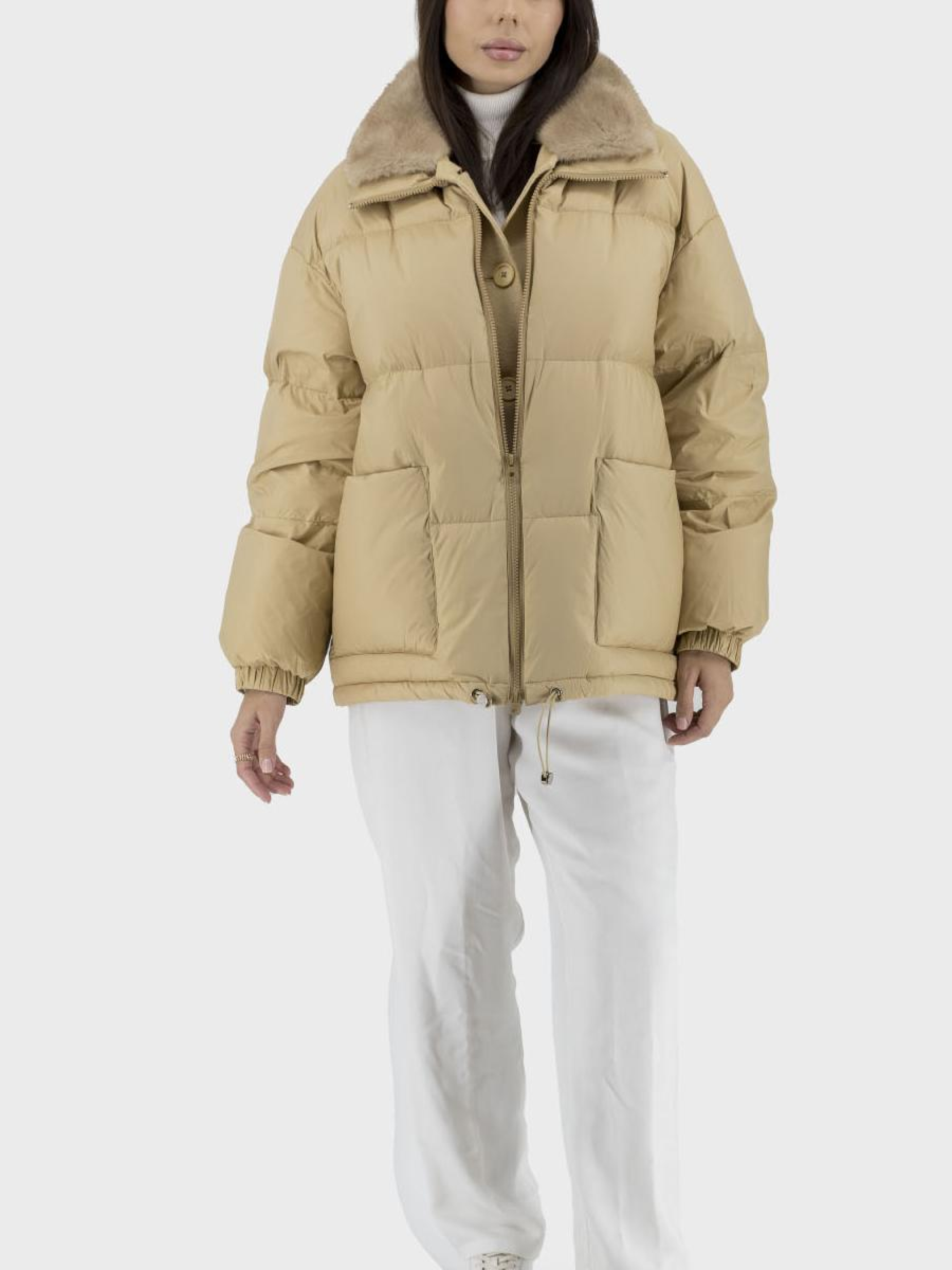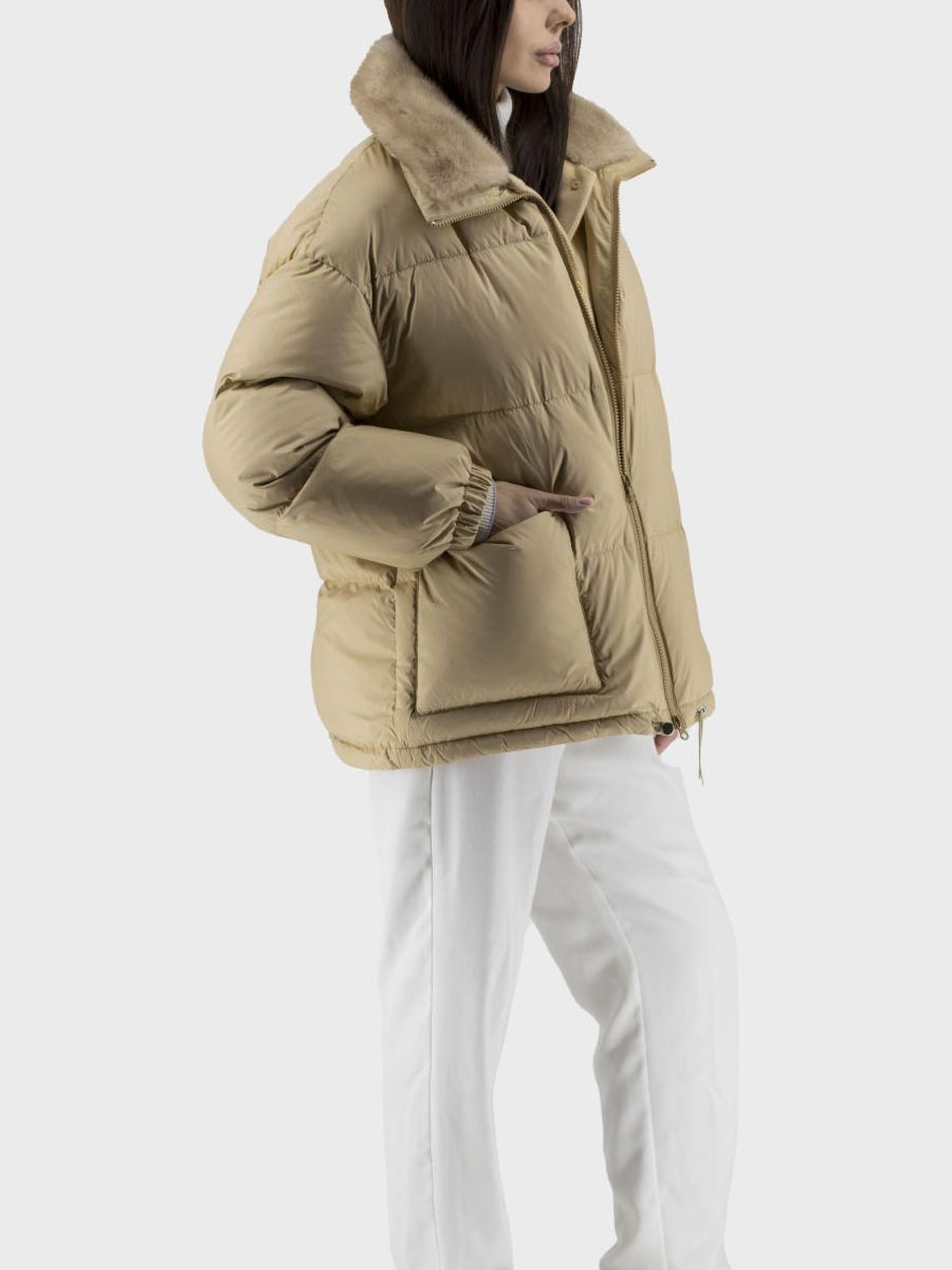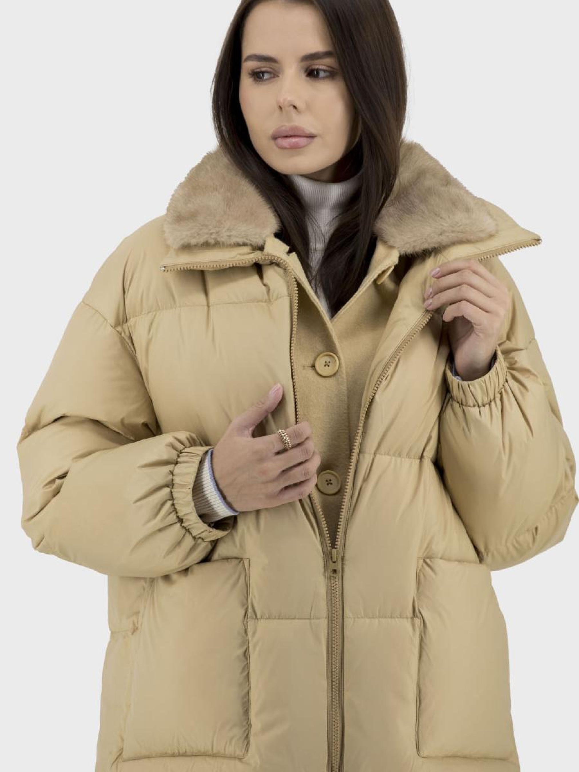 Представляем стильный женский пуховик, идеален для осенне-зимнего сезона. Этот нарядный и casual пуховик выполнен из высококачественного нейлона с утеплителем из утиного пера и пуха, что обеспечивает отличную сохранность тепла. Особый шарм добавляет съемный воротник из норки, что позволяет трансформировать ваш образ в зависимости от настроения. Однотонный дизайн в черном и песочном цветах делает его универсальным выбором для любого события. Прямой силуэт дополнен длинными втачными рукавами и застежкой на молнию и пуговицы для вашего комфорта. Пуховик также имеет практичные накладные карманы. Почувствуйте тепло и стиль с нашим пуховиком, вне зависимости от погоды!