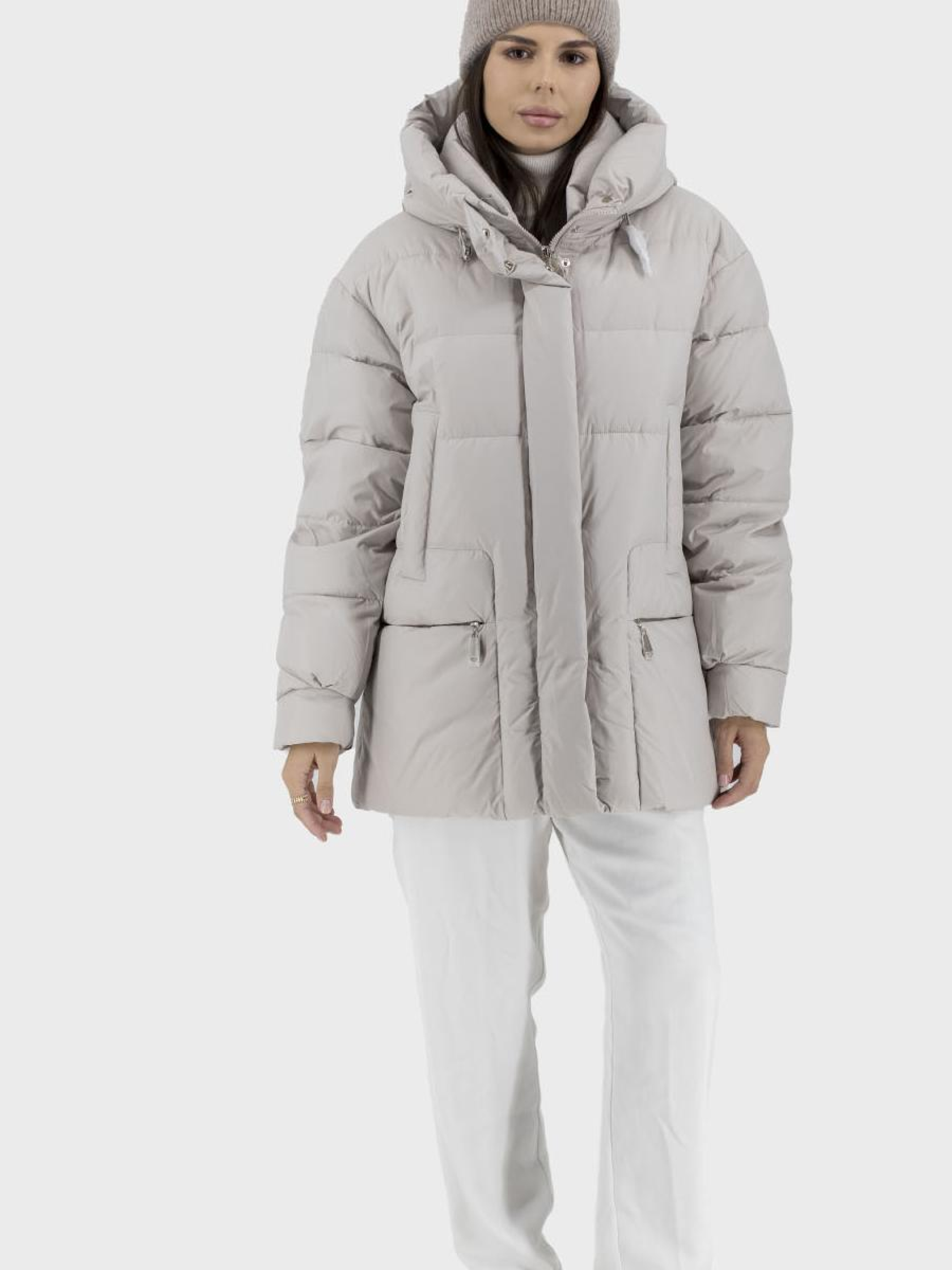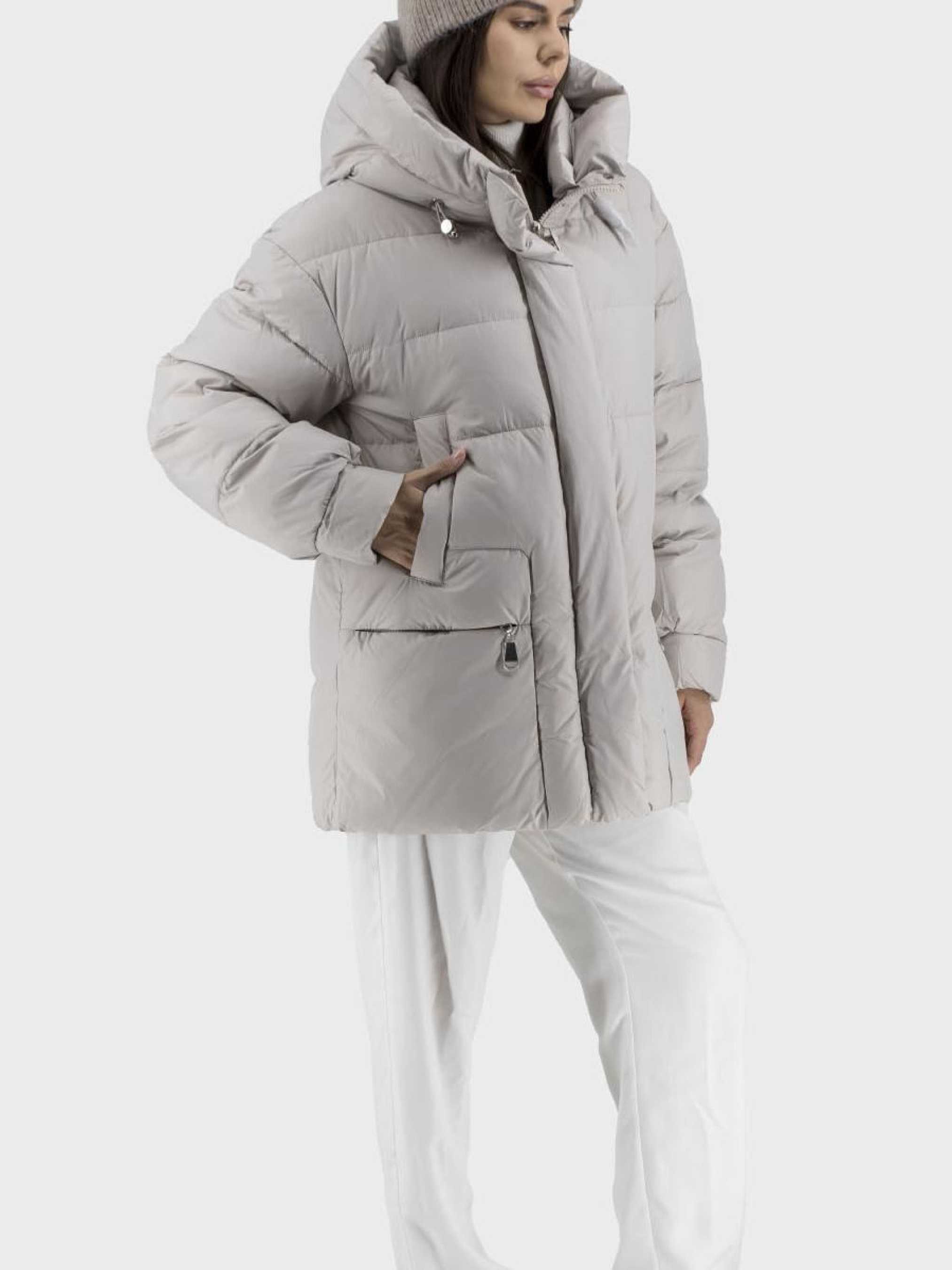 Пуховик женский casual стиля – идеальный выбор для тех, кто ценит комфорт и практичность в осенне-зимний период. Этот элегантный пуховик выполнен из средней толщины однотонного светобежевого материала, гармонично сочетающегося с подкладкой из полиэстера. Биопух обеспечивает отличную теплоизоляцию, поэтому вы будете чувствовать себя уютно даже в прохладную погоду. Стеганные детали придают изделию особого шарма, а втачный спущенный длинный рукав обеспечивает свободу движений. Пуховик оснащен удобным несъемным капюшоном с воротником-стойкой, а застежка на молнию и кнопках гарантирует надежную защиту от ветра. Практические втачные карманы на магнитах и молнии предоставляют место для хранения личных вещей. Выберите пуховик, сочетающий стиль и функциональность, и будьте неотразимы в любую погоду!