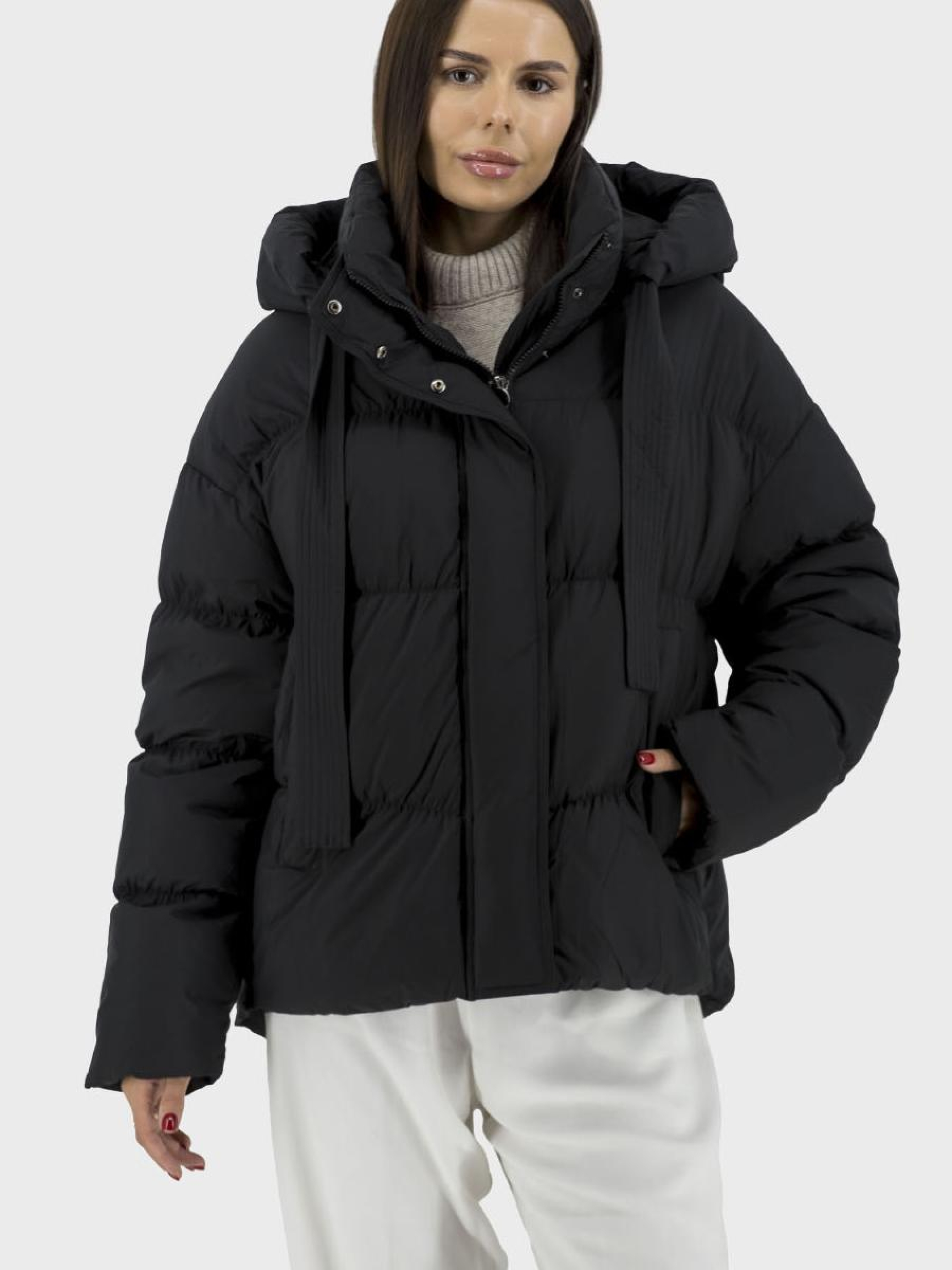 Роскошный женский пуховик в стиле casual создан для тех, кто ценит комфорт и элегантность даже в холодное время года. Он изготовлен из высококачественного материала с подложкой из полиэстера и утеплителем из натурального утиного пуха и пера, что обеспечивает максимальное тепло и легкость. Однотонный дизайн в черном цвете подходит для любого гардероба, а стойка воротника и длинный втачный рукав придают элегантности. Асимметричный низ и стеганные детали придают оригинальность, а застежка на молнию и кнопки защищают от ветра. Съемный капюшон и практичные карманы на кнопках делают эту модель идеальной для осенних и зимних прогулок.