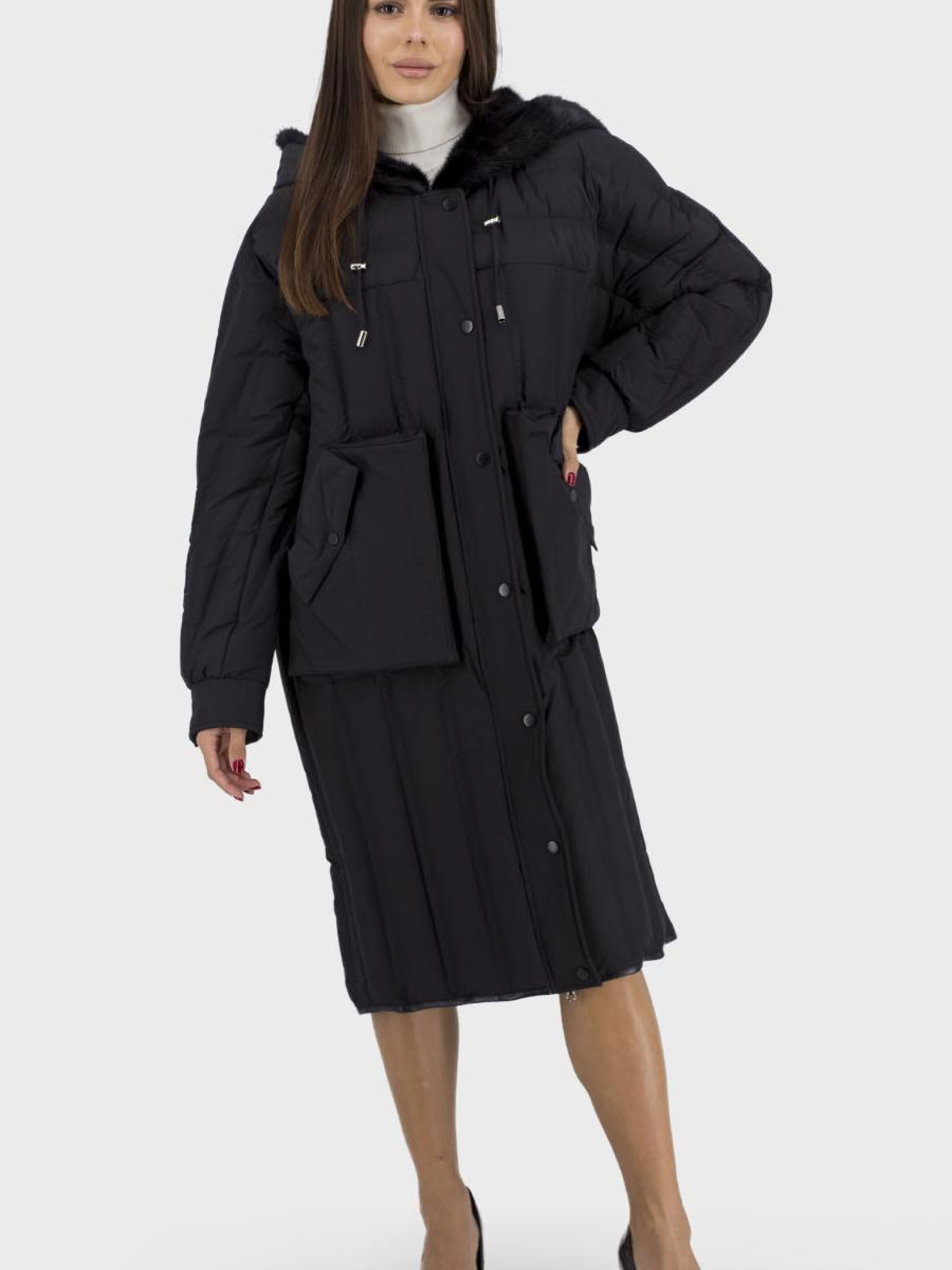 Ощутите тепло и комфорт в любое время года с элегантным женским пуховиком. Это стильное оверсайз изделие, идеальное для осени, зимы и весны, выполненное из высококачественных материалов - полиэстеровой подкладки и утеплителей из гусиного пуха и пера. Добавив нотку роскоши благодаря несъемному капюшону с норковым мехом, пуховик не только согревает, но и придает вашему образу изысканность. Длинный реглановый рукав обеспечит свободу движений, а застежка на кнопках позволит легко изменять образ. Одна из основных деталей – накладной карман, в котором можно удобно хранить мелочи. Выбирайте свой оттенок между классическим черным или изящным бежевым и отметьте свой стиль, оставаясь в комфорте.