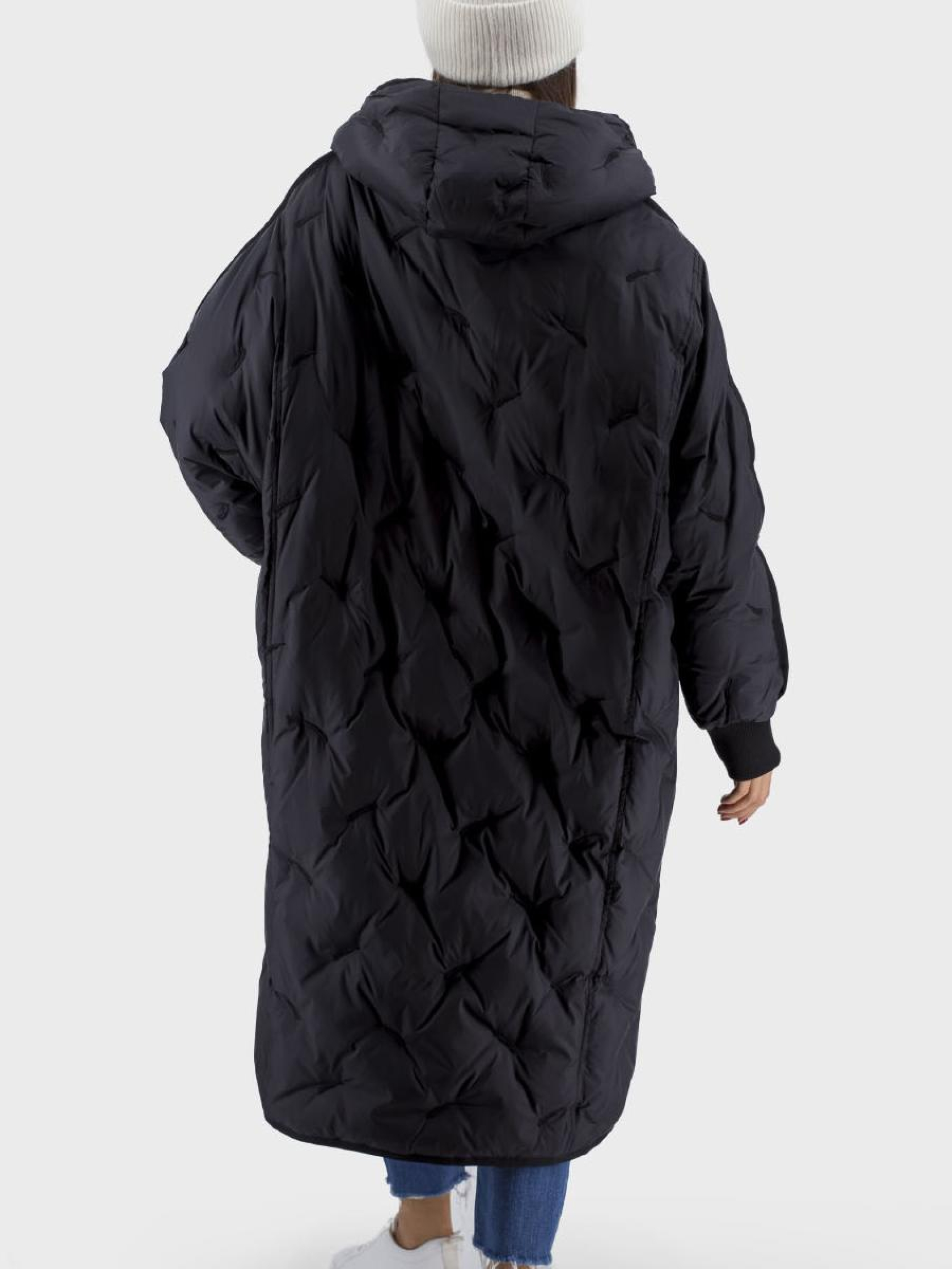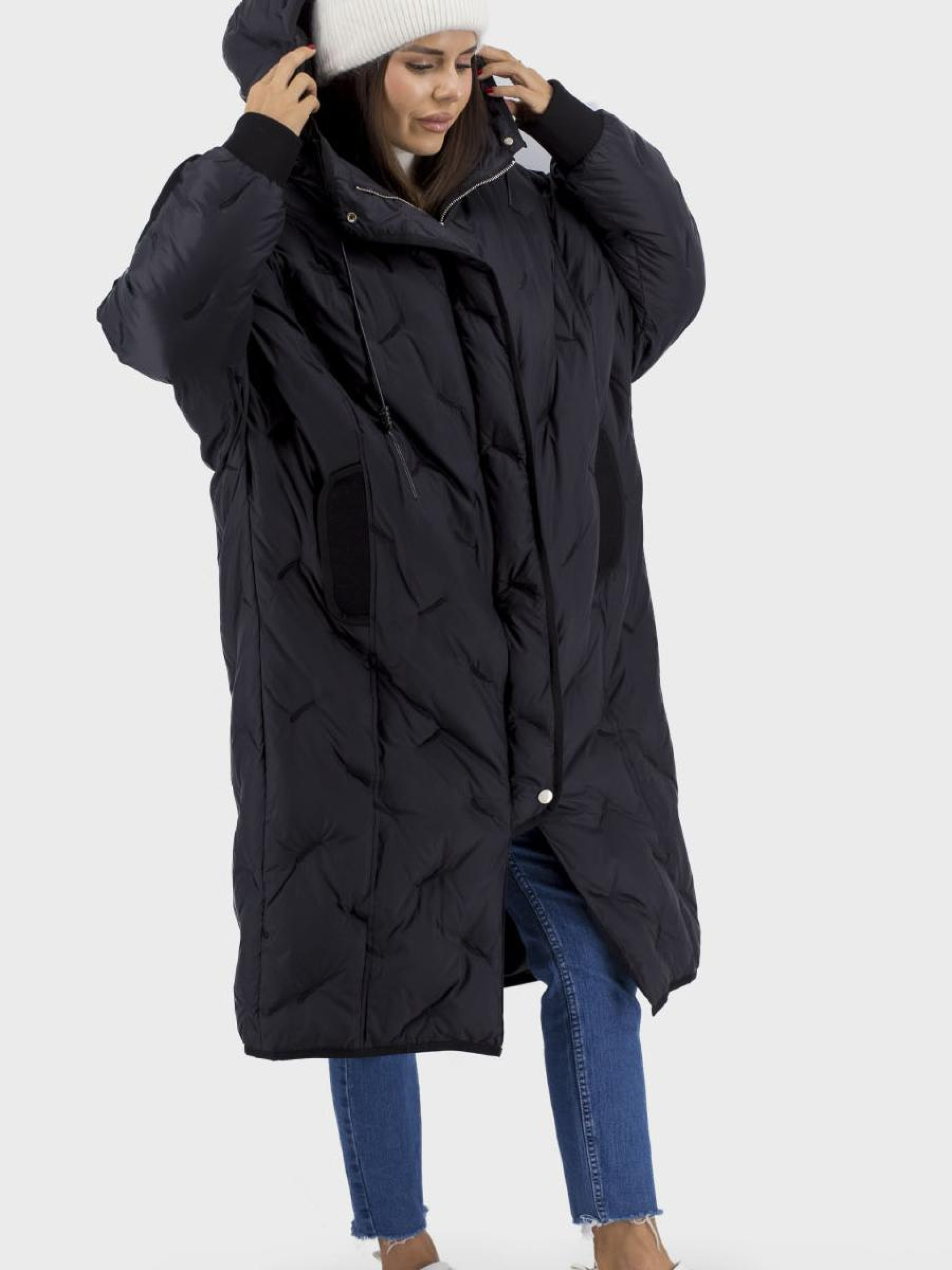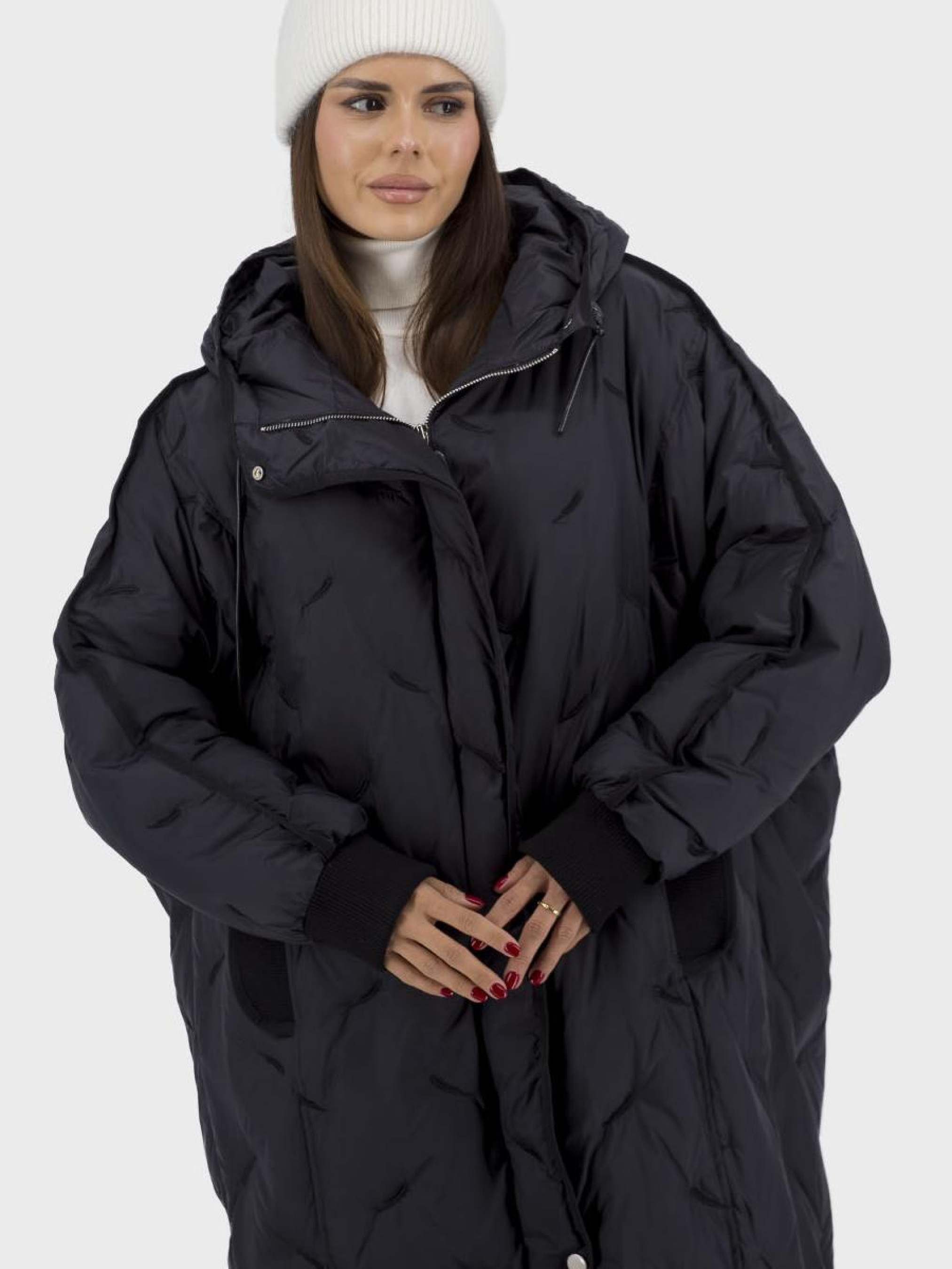 Универсальный женский пуховик, стильный выбор для осени, зимы и весны, сочетающий комфорт, тепло и современный дизайн. Выполнен из высококачественного материала: подкладка из полиэстера, утеплитель – гусиное перо и пух, которые обеспечивают отличную термоизоляцию. Созданный в стиле casual и спортивном стиле, этот пуховик имеет однотонный черный цвет, идеален для сочетания с разными образами. Длинный рукав типа "летучей мыши" и спущенный, придают модели оригинальности, а отделочный шов придает изысканности. Застегивается на молнию и кнопки, оснащенный несъемным капюшоном и функциональными карманами. Силуэт оверсайз "бочонок" дарит свободу движений и уют в прохладные дни.