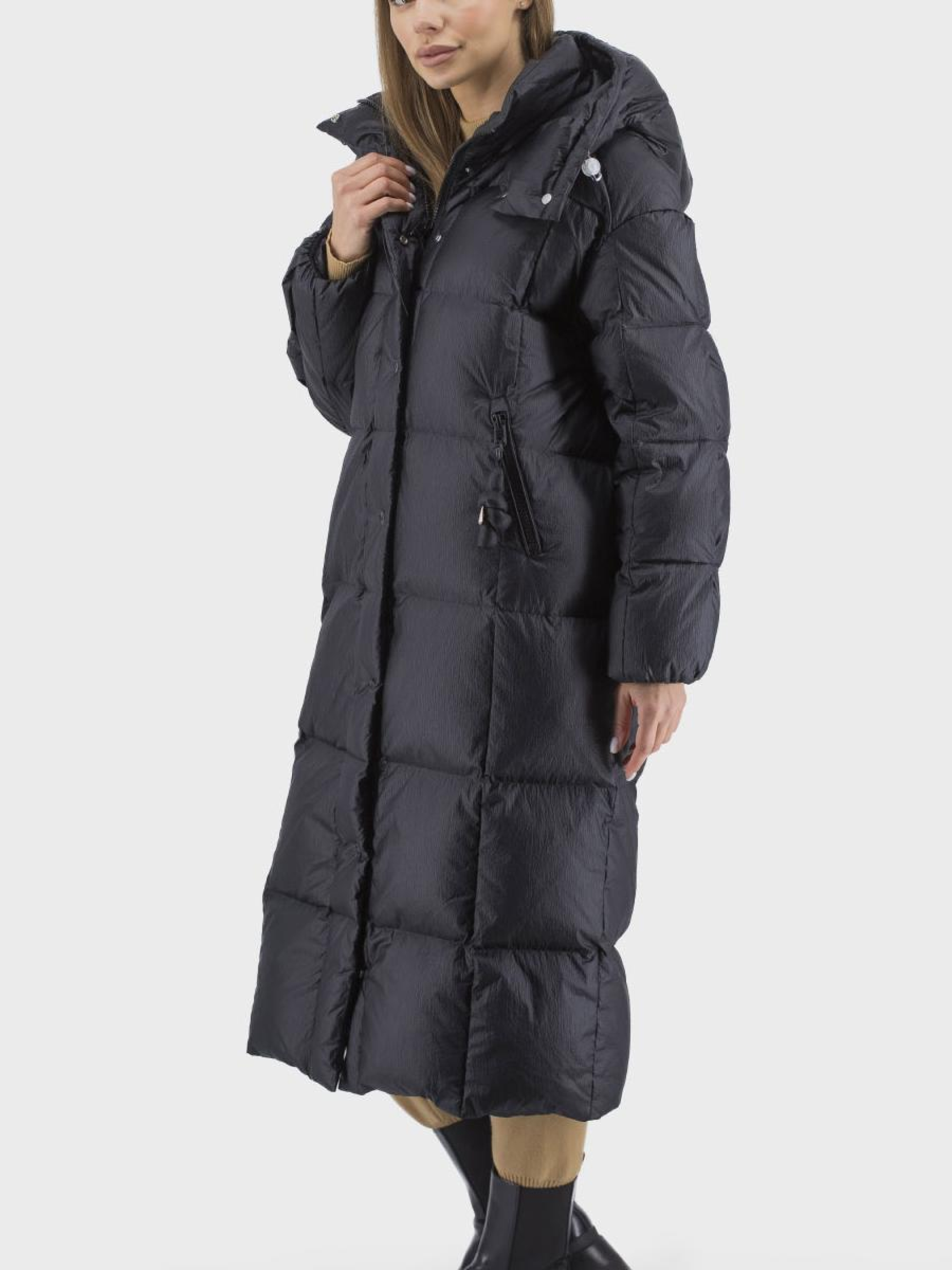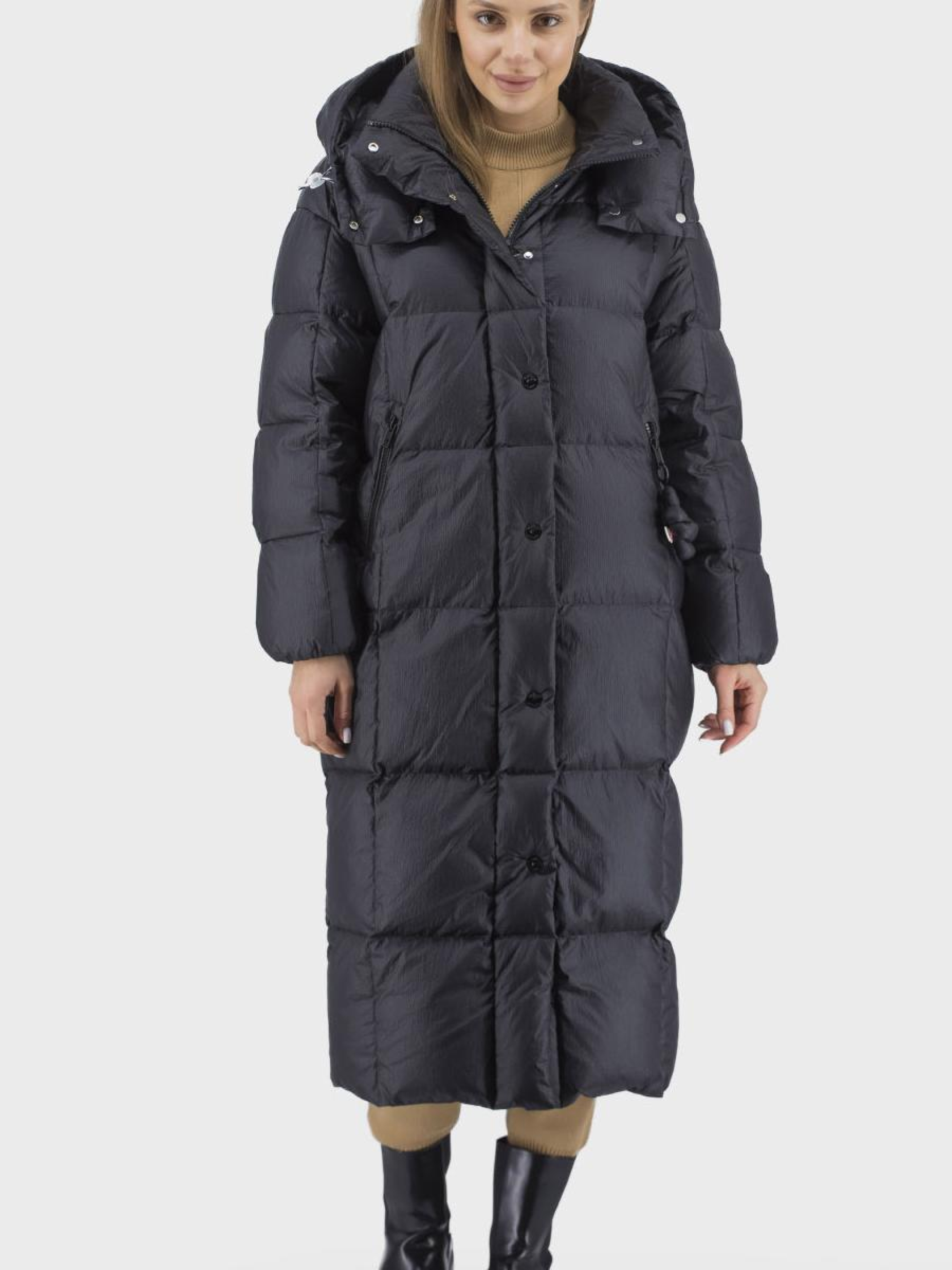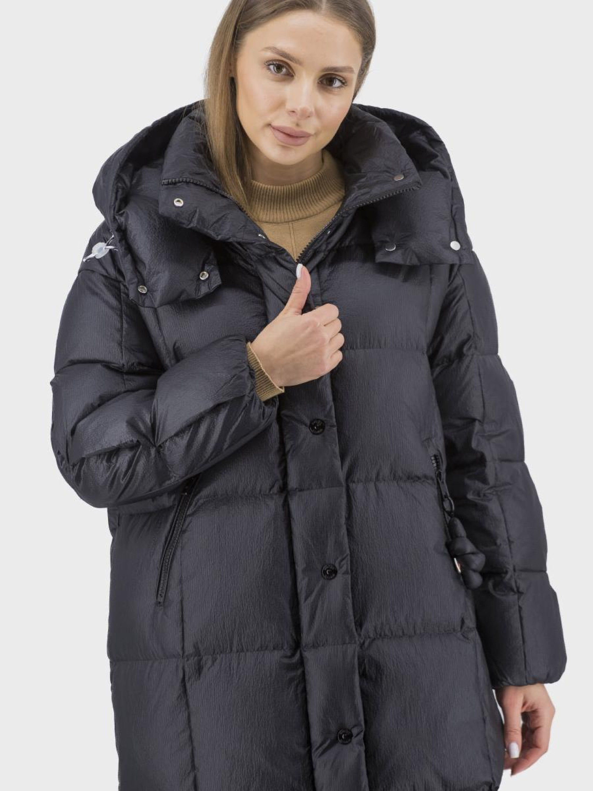 Предлагаем вашему вниманию стильный женский пуховик, идеален для зимних прогулок и активного отдыха. Этот пуховик в черном однотонном дизайне представляет собой элегантность и функциональность. Изготовлен из высококачественного наполнителя из гусиного пера и пуха, гарантируя отличное теплоизоляционное хранение в самые сильные морозы. Подкладка из полиэстера обеспечивает комфорт и легкость в уходе. Спортивный и casual стиль отлично сочетается с прямым силуэтом, придающим свободу движениям. Втачные спущенные длинные рукава, удобный снимаемый капюшон и удобные втачные карманы делают этот пуховик практичным выбором для современной женщины. Застежка на молнию и кнопках обеспечивает надежность, а воротник-стойка придает стильный акцент. Оцените зимний комфорт в сочетании с модным дизайном.