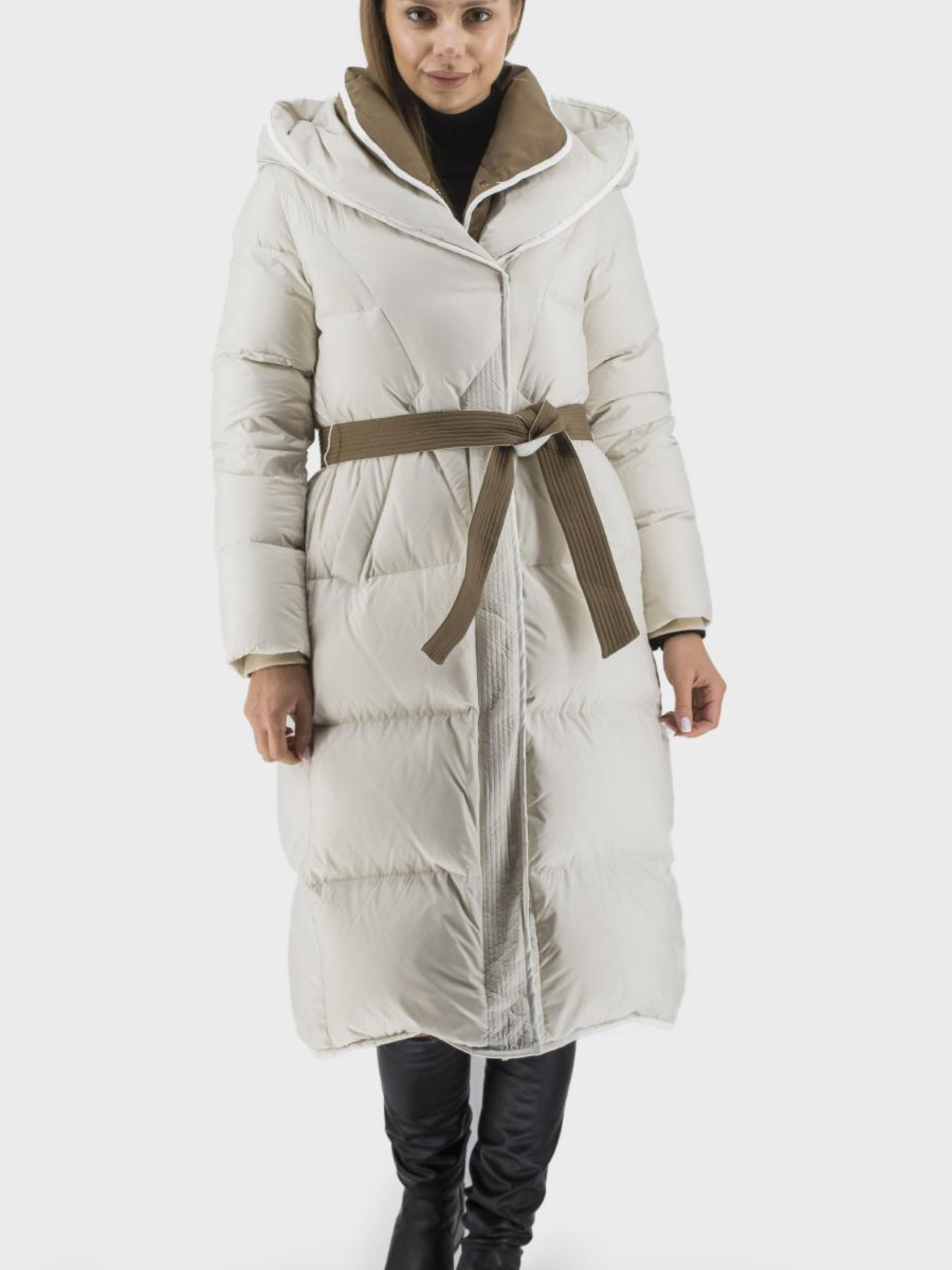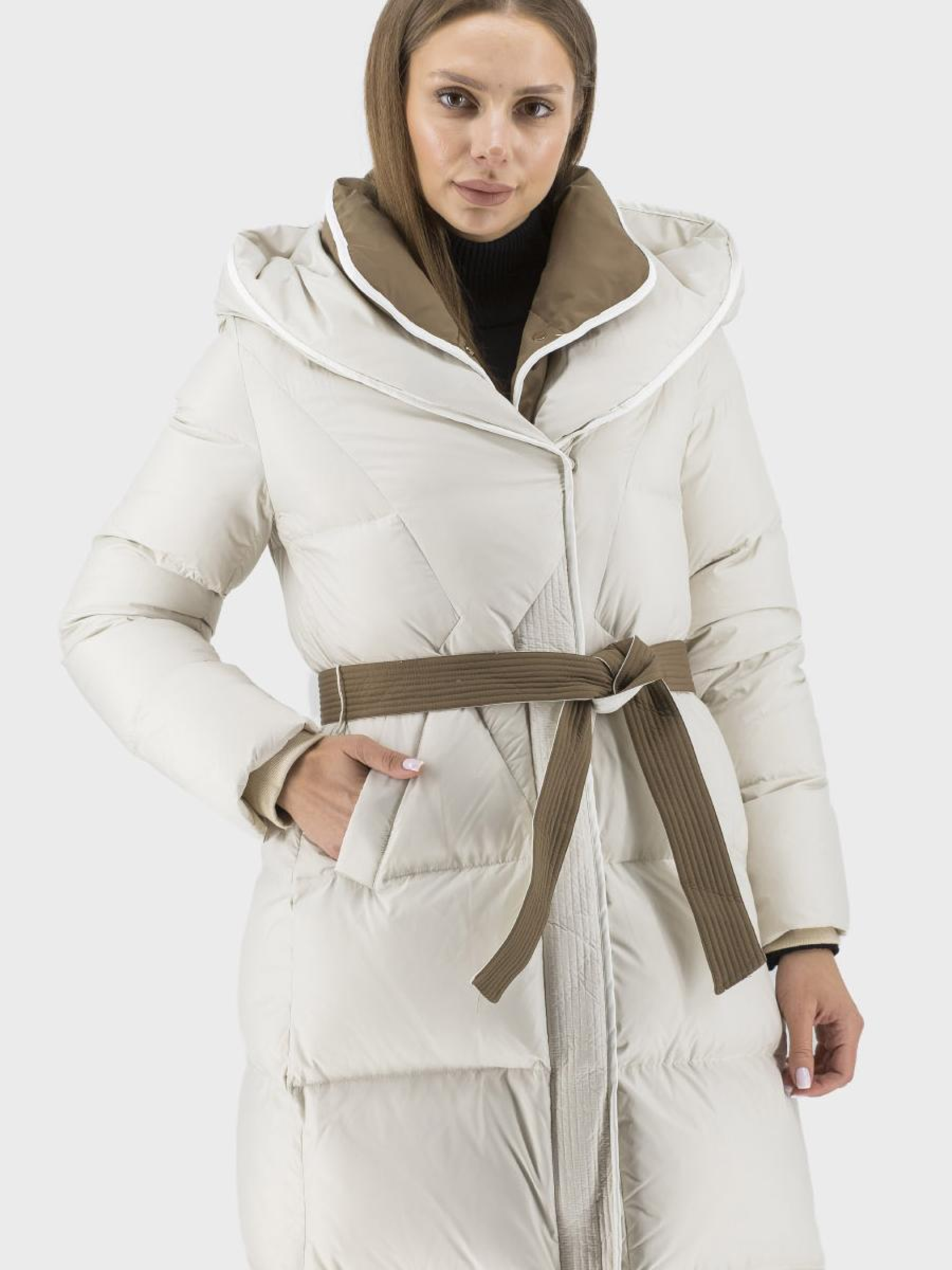 Наслаждайтесь комфортом и стилем этой зимы с нашим женским пуховиком, сочетающим классический и casual стиль. Изготовлен из качественного полиэстера, этот пуховик утеплен гусиным пером и пухом, что обеспечивает максимальное тепло даже в самые сильные морозы. Двухцветный дизайн придает элегантности, а приталенный силуэт подчеркивает вашу фигуру. Пуховик оснащен втачными длинными рукавами, удобным несъемным капюшоном со стойкой и застежкой на молнию с кнопками. Кожаная отделка и пояс придают изысканные акценты. Доступен в молочном, песочном и черном цветах. Идеальный выбор для современной женщины, ценящей стиль и функциональность.