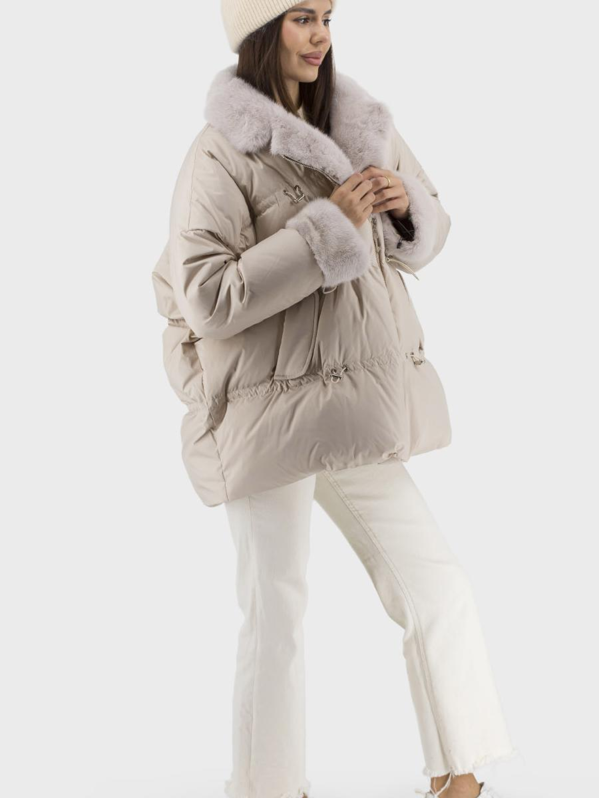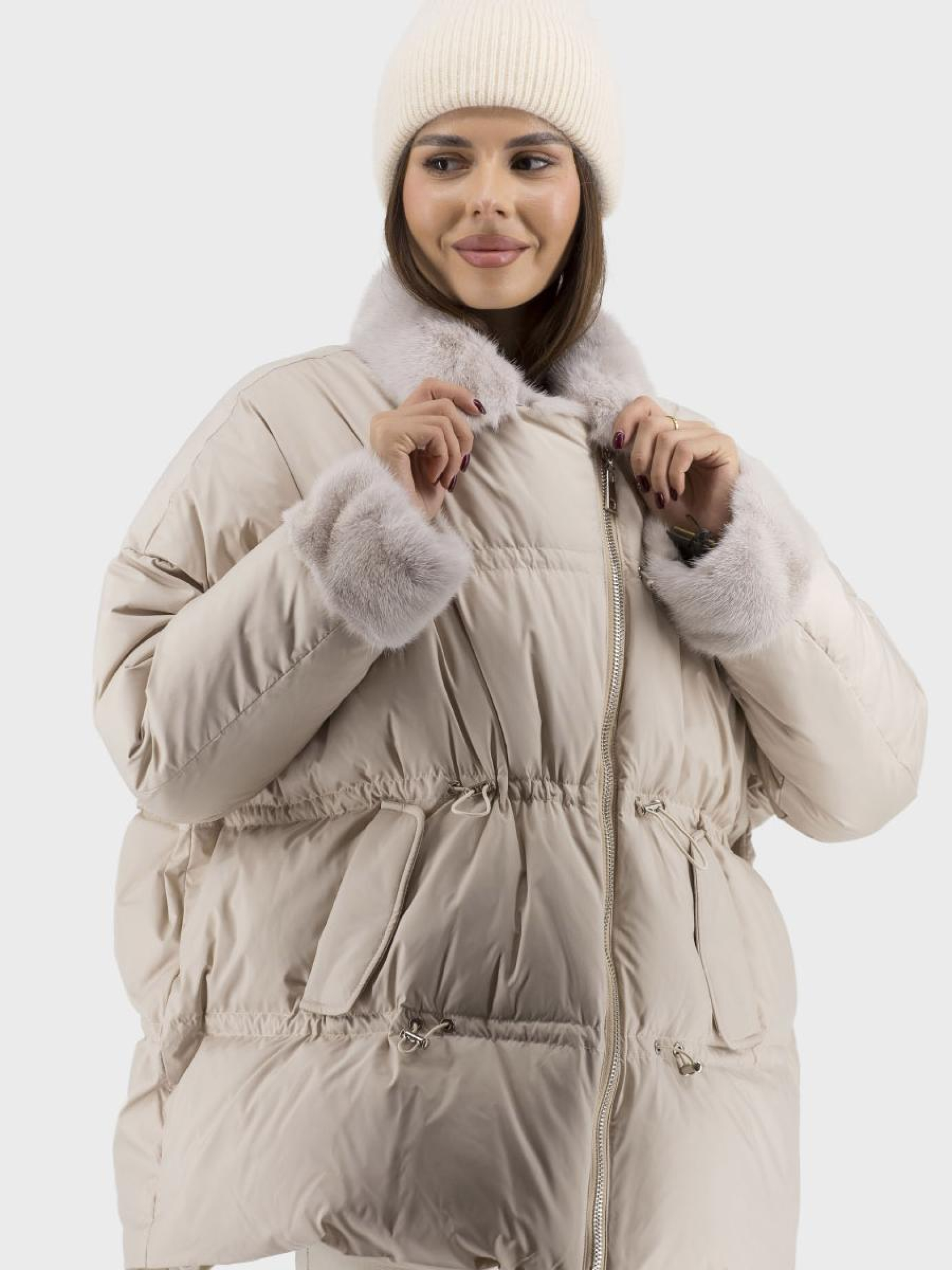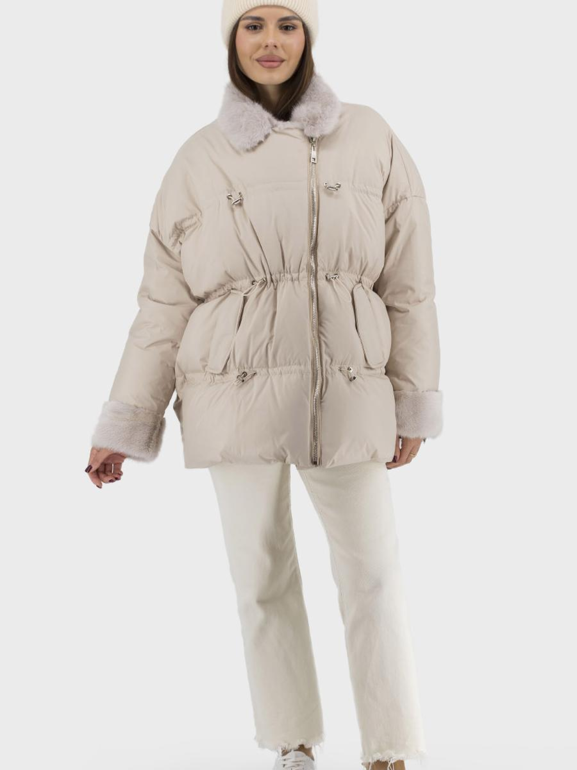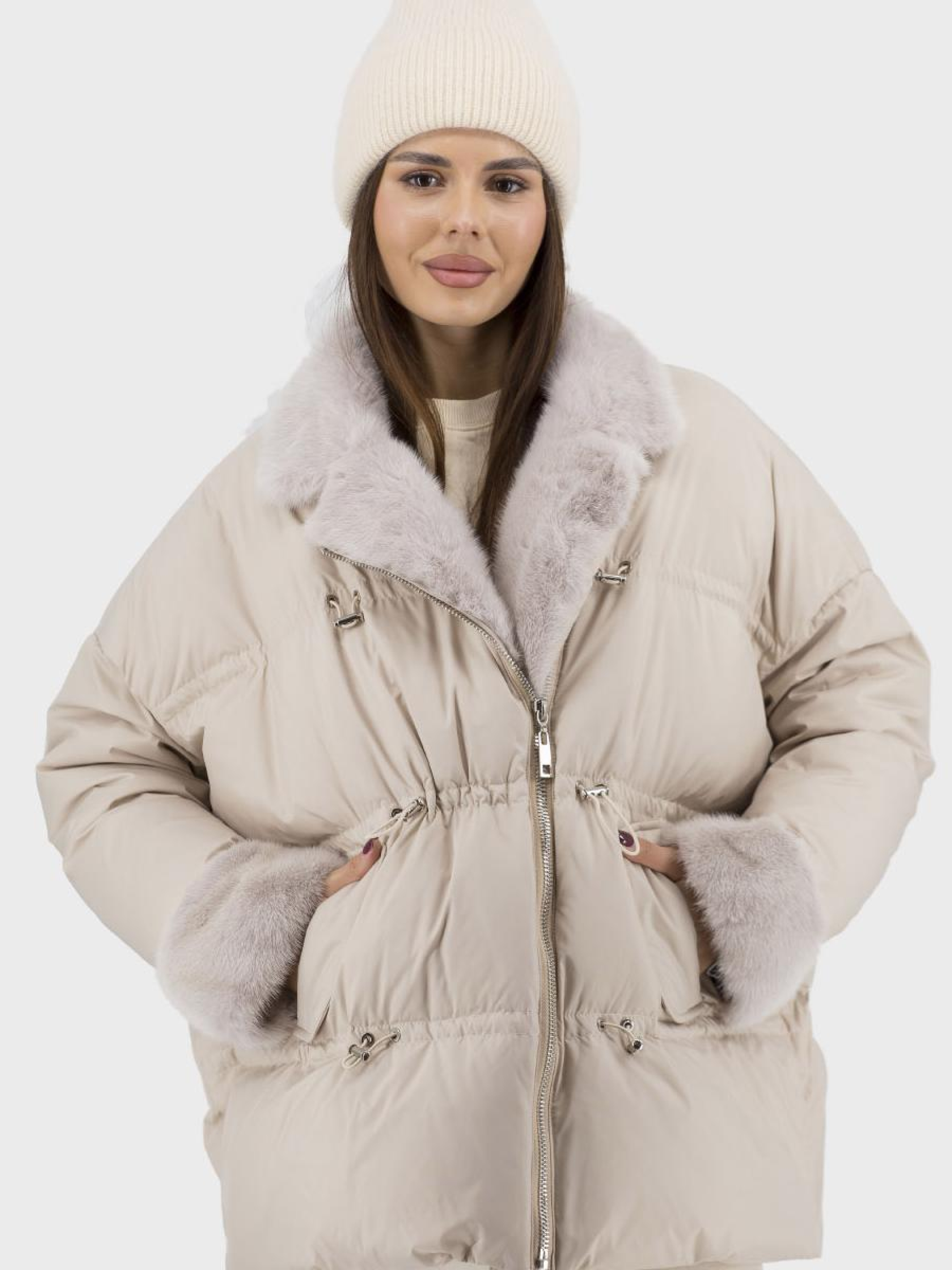 Представляем стильный пуховик, идеальный выбор для зимних месяцев. Изготовленный из высококачественных материалов, этот пуховик имеет полиэстерную подложку, что обеспечивает комфорт и дополнительное тепло благодаря утеплителю из натурального гусиного пуха и пера. Благодаря несъемному меху из норки, модель имеет роскошную меховую отделку. Длинные рукава реглан и английский воротник придают элегантности, а однотонный дизайн гарантирует универсальность стиля casual. Пуховик оснащен молнией, удобными стяжками и кулисой, позволяющими регулировать силуэт оверсайза. В наличии бежевый и чёрный цвета. Удобные втачные карманы придают практичности, делая эту модель незаменимой для вашего зимнего гардероба.