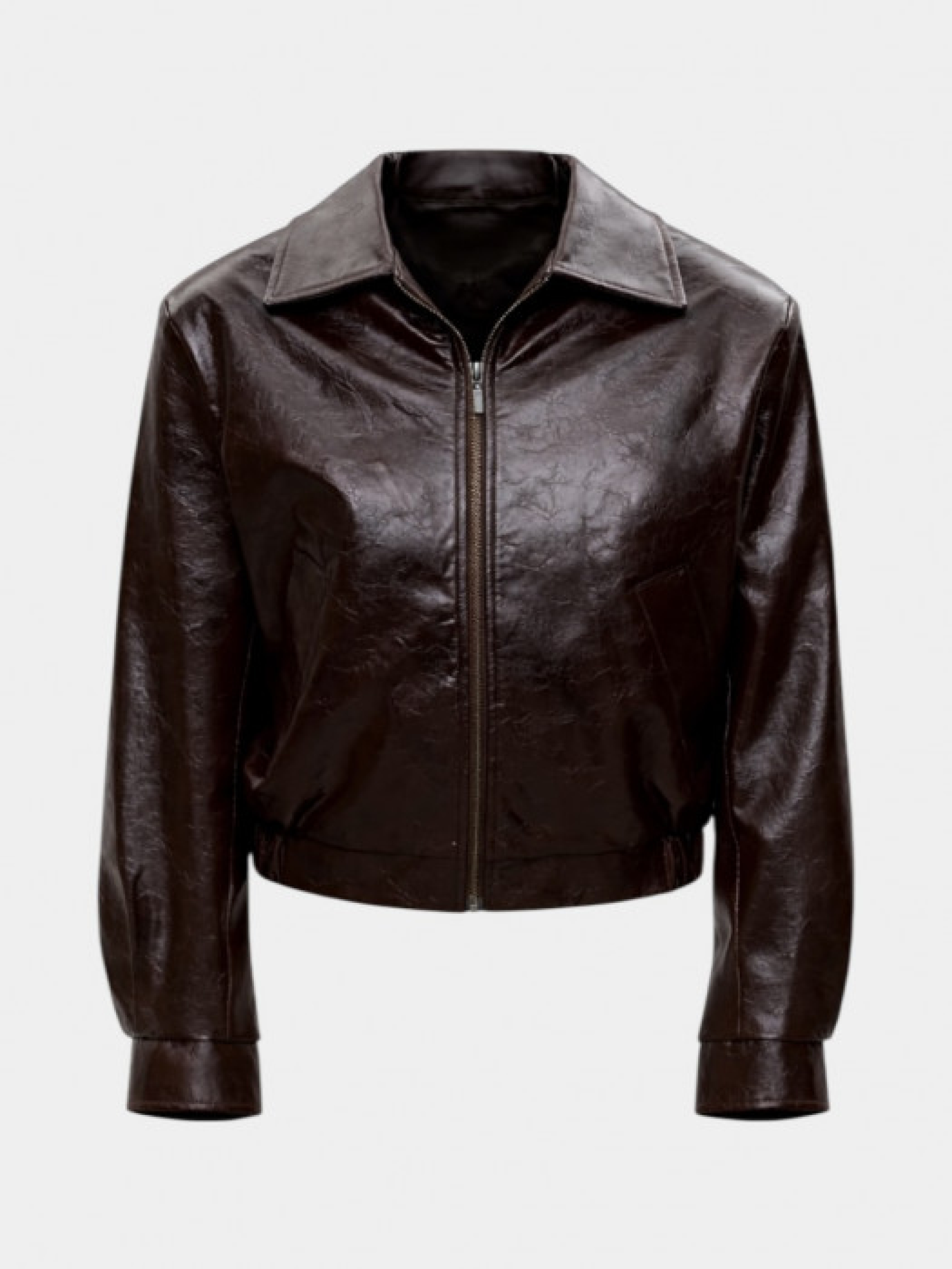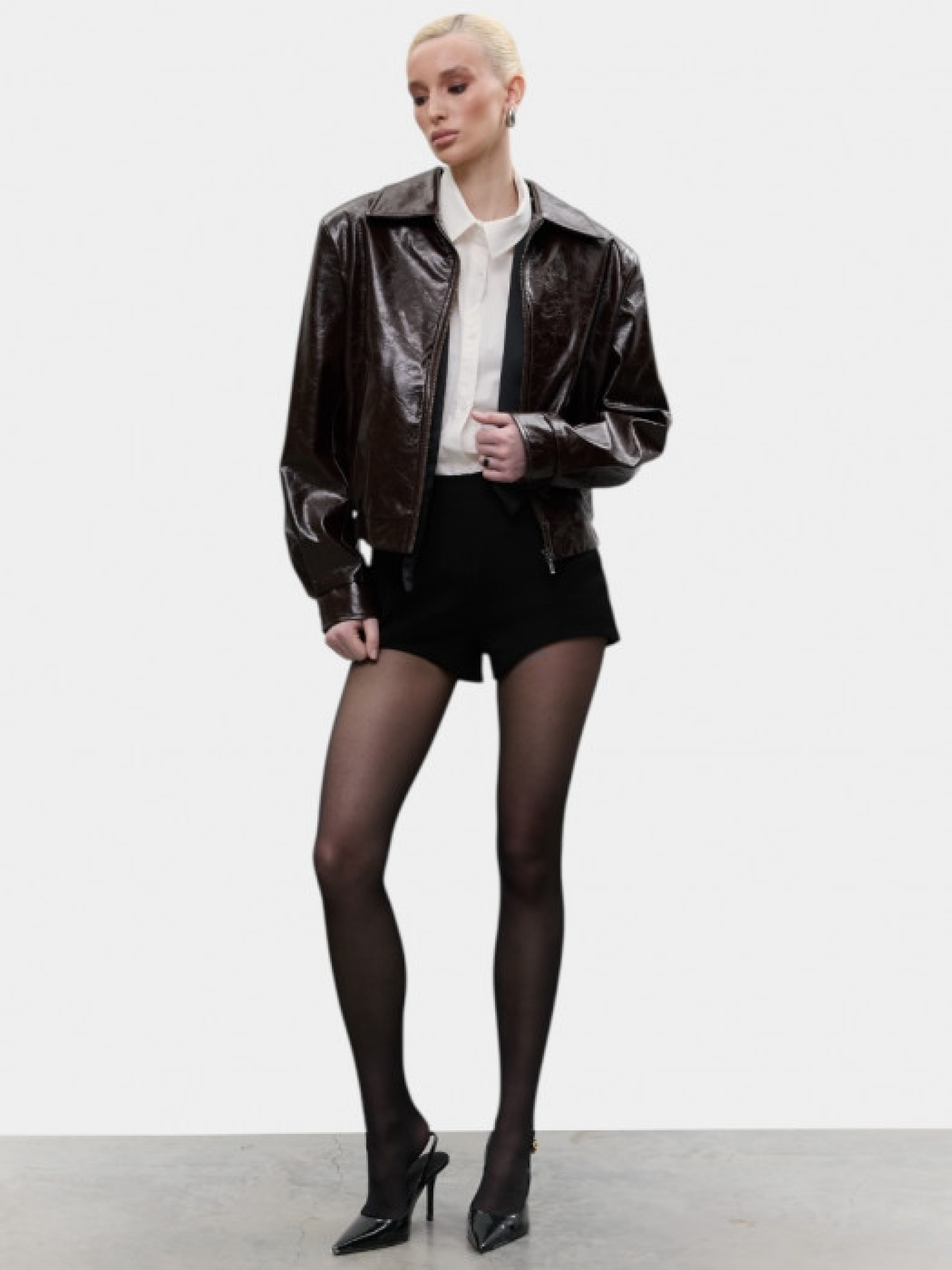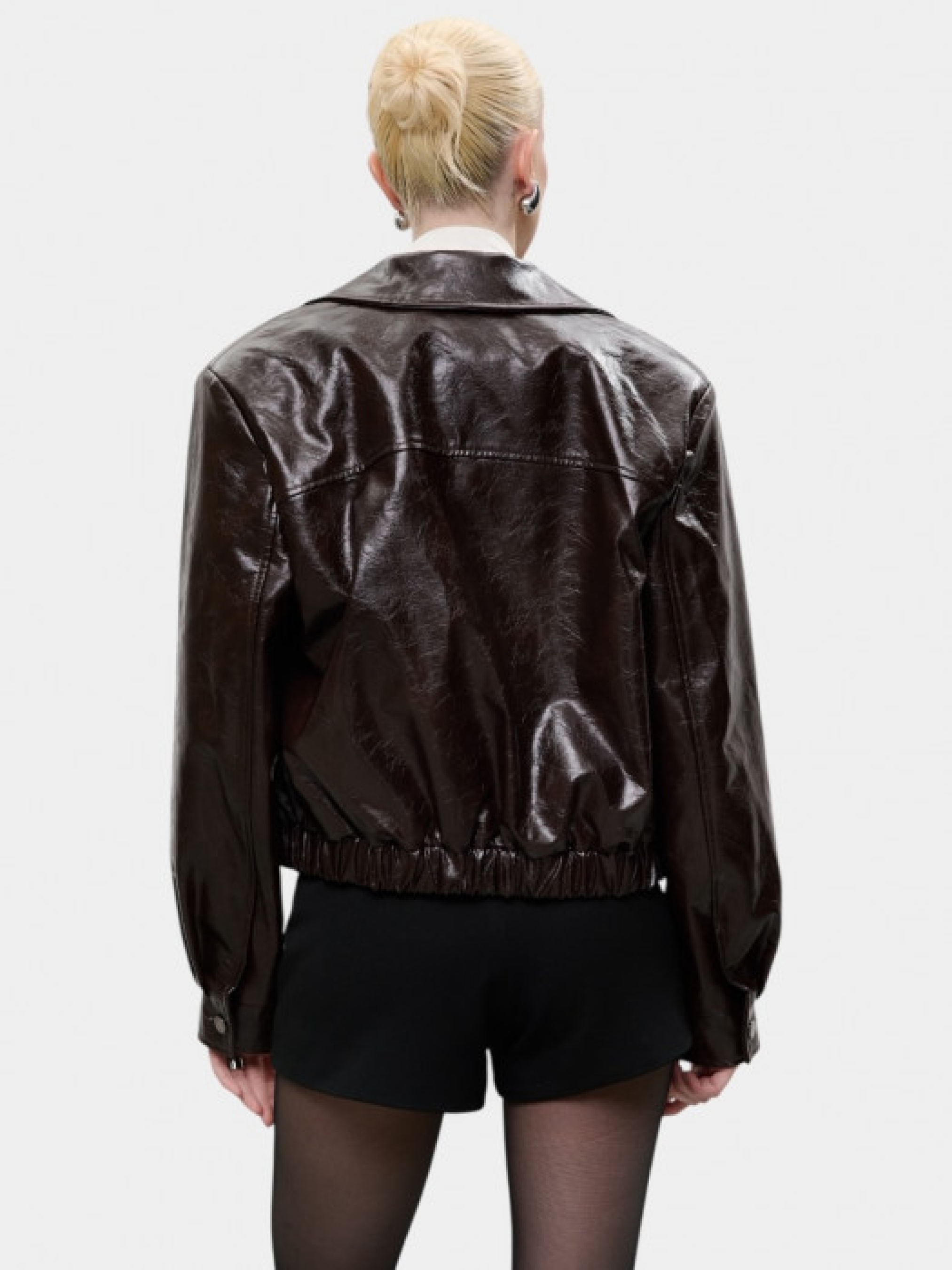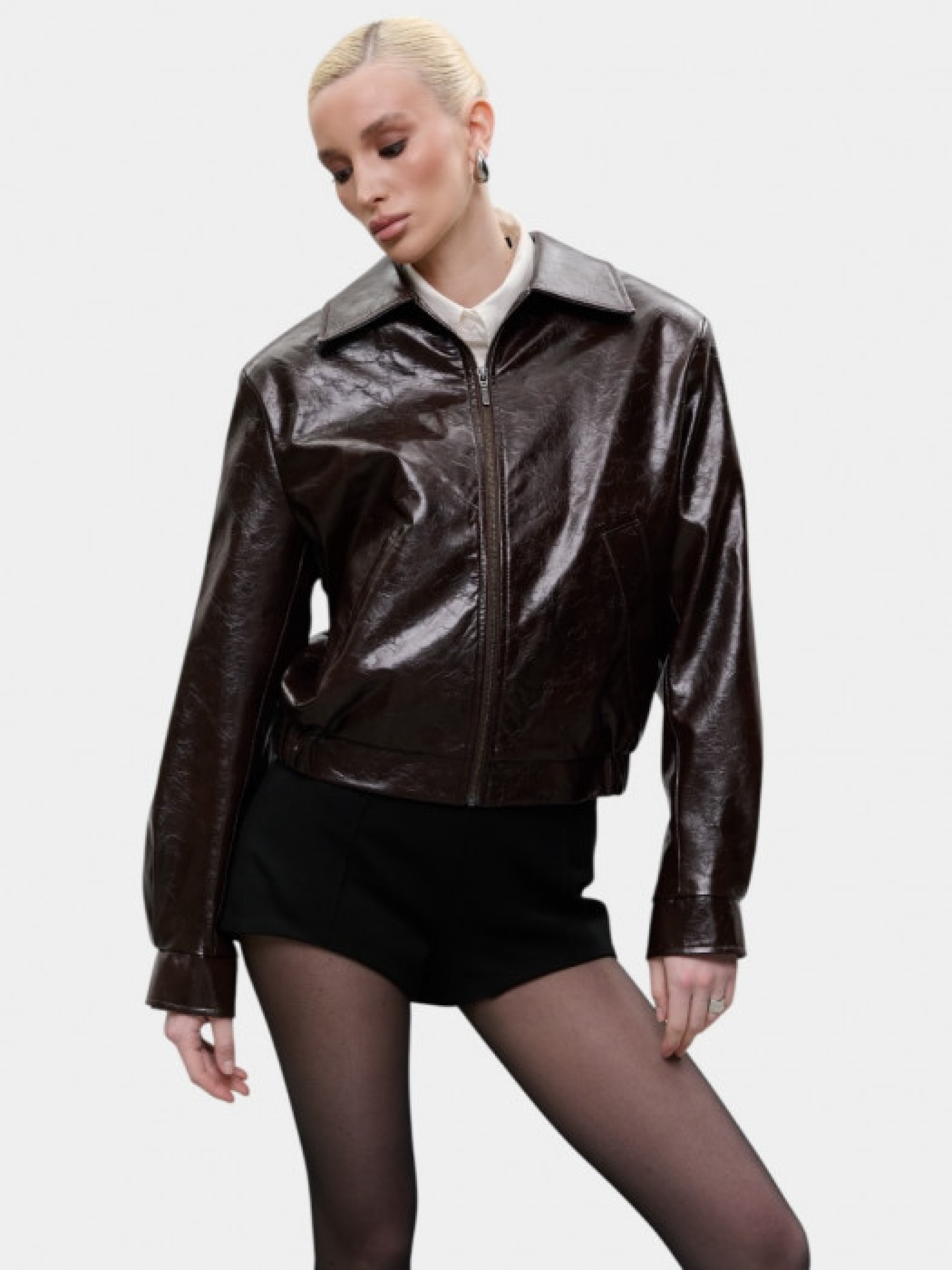 Шоколадная куртка из лакированной экокожи модель 12080