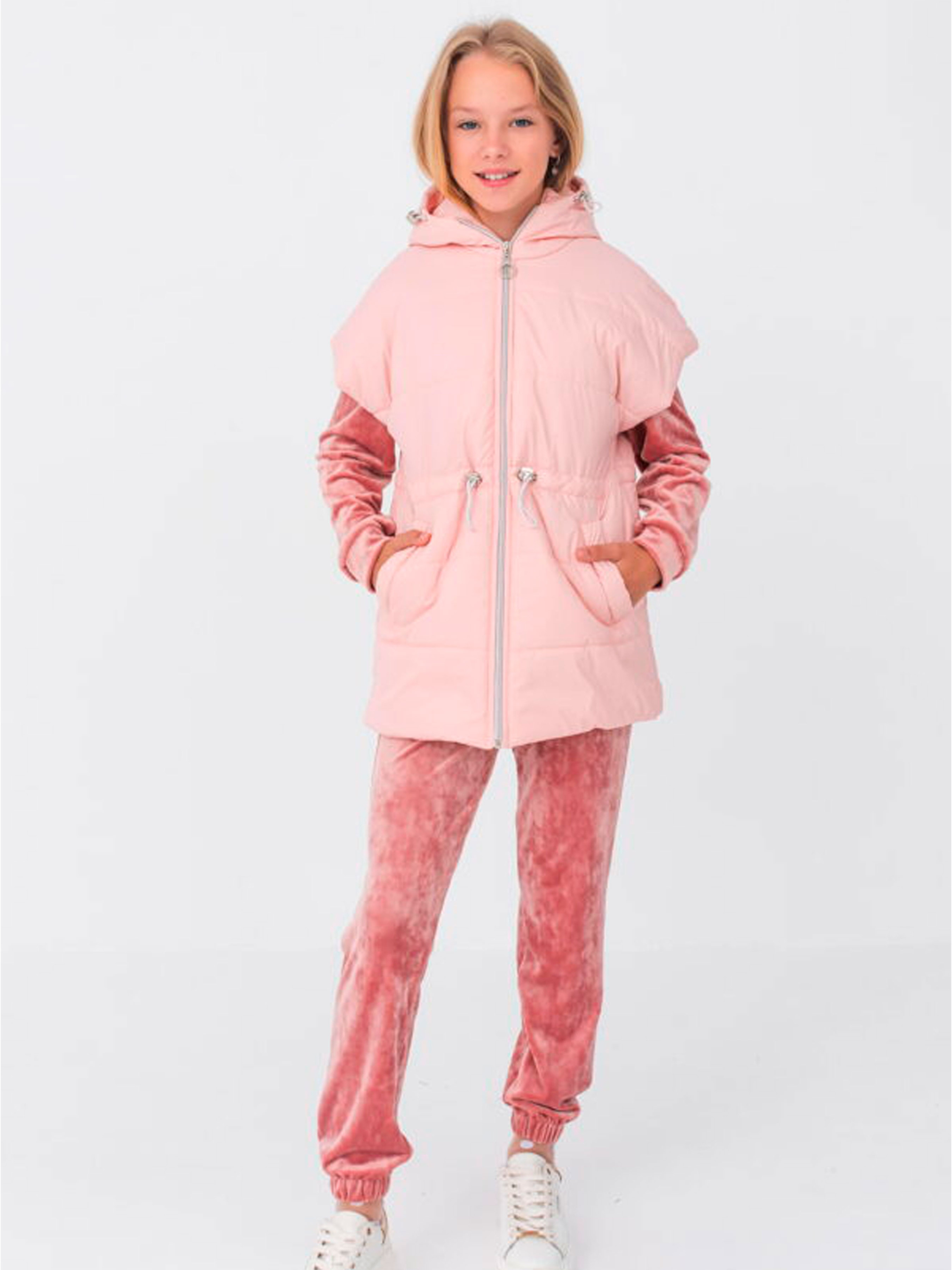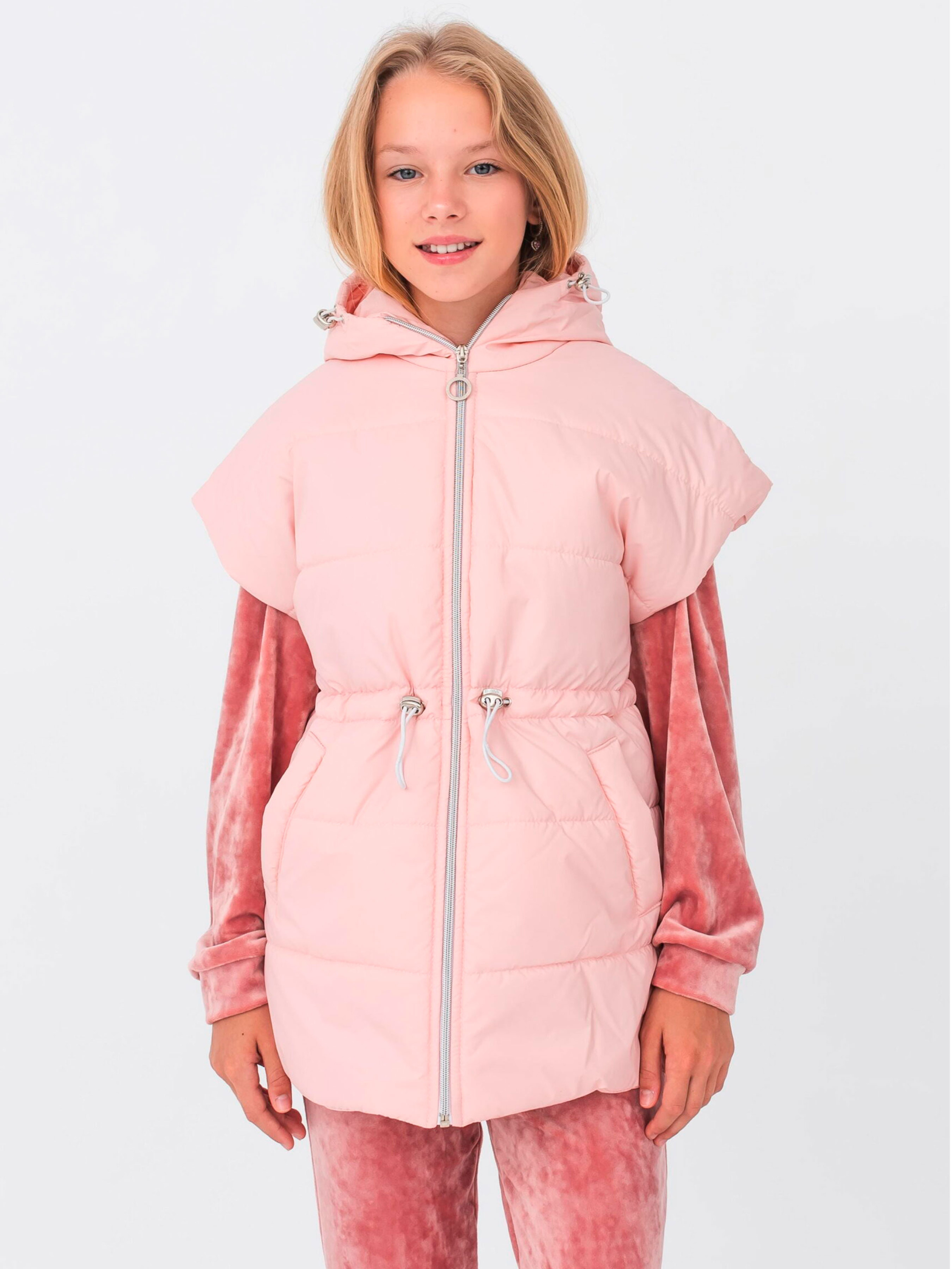 Дитяча жилетка для дівчинки «Каріша» — це стильне та практичне рішення для міжсезоння, що поєднує в собі легкість, тепло та сучасний дизайн. Завдяки продуманому крою з капюшоном та зручними кишенями, вона стане незамінною частиною гардероба юної модниці, забезпечуючи надійний захист від вітру та прохолоди під час активних прогулянок або походів до школи. Характеристики Модель: «Каріша» Тип: Жилетка з капюшоном Утеплювач: Синтепон силіконізований 150 г/м² (оптимально для весни та осені) Підкладка: Нейлон (міцний, гладкий, зносостійкий) Особливості: Глибокий функціональний капюшон, зручні бічні кишені Стиль: Sport-chic, casual, повсякденний Головні переваги моделі Ефективна терморегуляція: Силіконізований синтепон щільністю 150 г/м² відмінно утримує тепло, при цьому жилетка залишається невагомою та не сковує рухів дитини. Захист від негоди: Наявність капюшона дозволяє швидко захистити голову та шию від раптового вітру чи легкого дощу, що особливо важливо в мінливу погоду міжсезоння. Практичні кишені: Місткі бічні кишені дозволяють гріти руки або зберігати необхідні дрібниці (телефон, ключі), що додає моделі функціональності. Довговічність та легкий догляд: Використання нейлонової підкладки та якісного утеплювача гарантує, що жилетка збереже свою форму та об'єм навіть після багаторазового прання. Універсальність стилізації: Модель «Каріша» гармонійно поєднується з худі, світшотами, джинсами або спортивними костюмами, створюючи сучасний багатошаровий образ. Рекомендації з догляду Аби жилетка зберігала свій первісний вигляд та теплоізоляційні властивості: Прання при температурі не більше 30–40°C у делікатному режимі (рекомендується використовувати рідкі засоби для прання). Використовувати спеціальні кульки для прання, щоб запобігти збиванню синтепону. Делікатне віджимання на низьких обертах. Сушіння у розправленому вигляді на плічках природним шляхом (уникати сушіння на гарячих батареях). Прасування зазвичай не потрібне, за необхідності — легке відпарювання на низькій температурі.