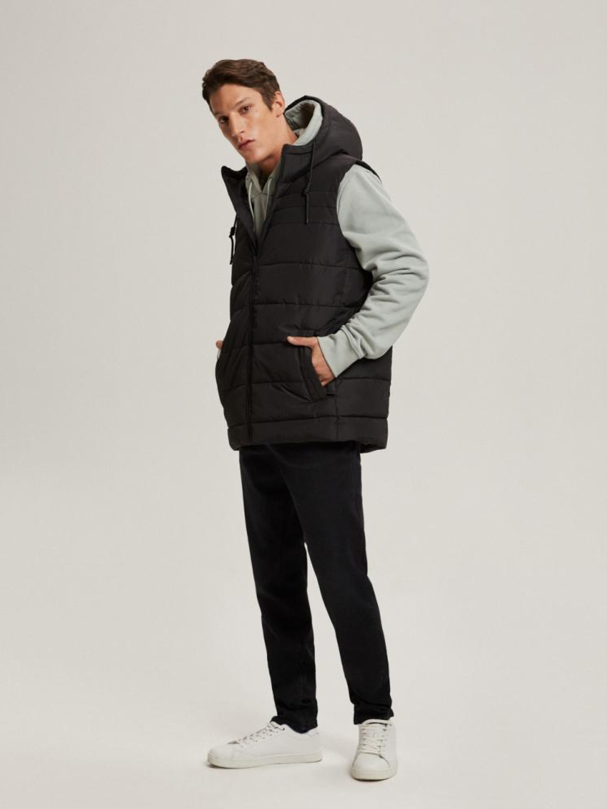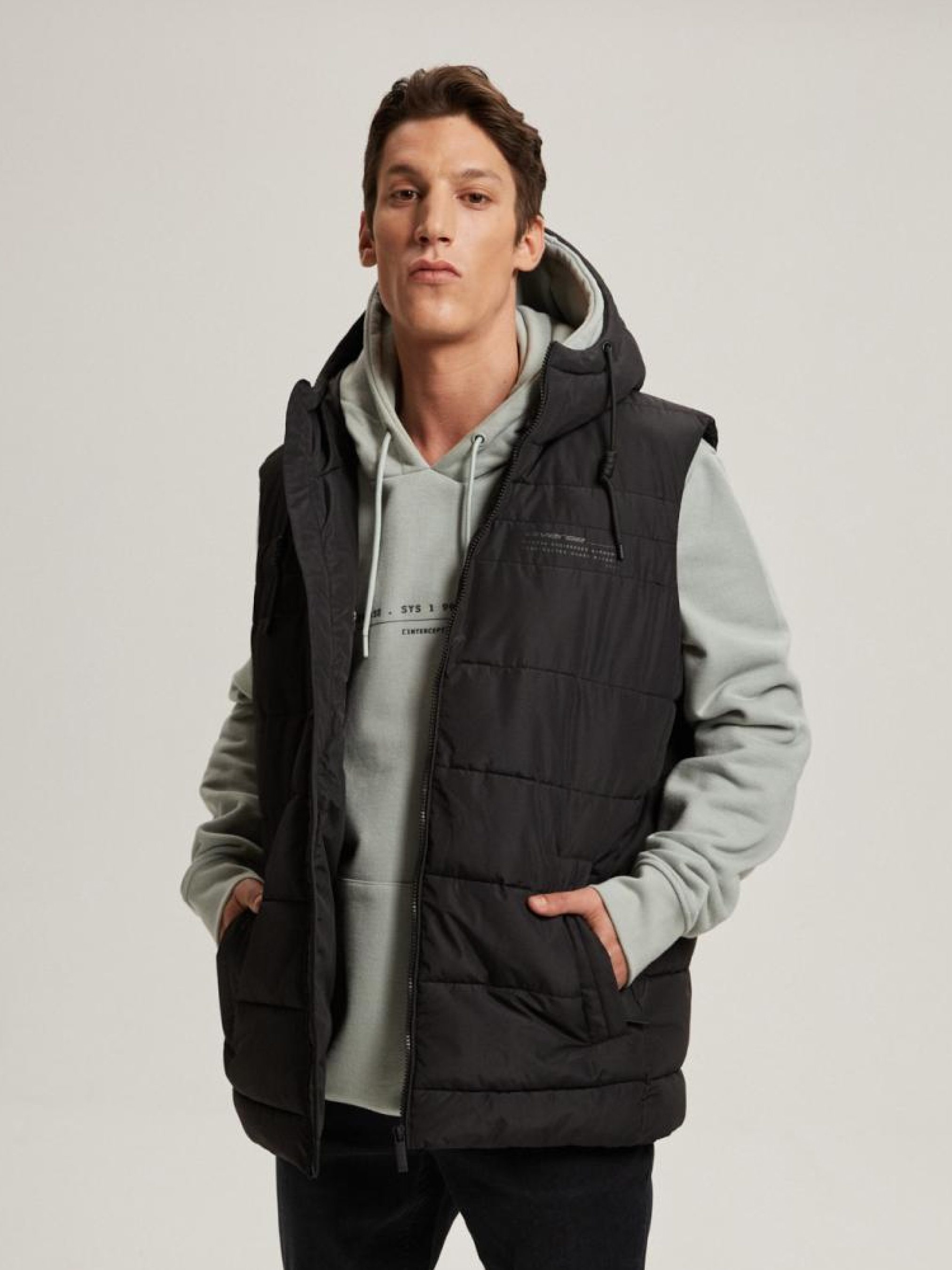Мужской жилет ERVESTOM 10042687 Мужской утепленный осенне-зимний жилет. Изготовлен из высококачественной ткани черного матового цвета. Жилетка имеет цельный капюшон с высоким воротником-стойкой, который эффективно защищает от дождя и ветра - утеплитель с синтетическим наполнителем, - два внешних кармана, - горизонтальная стежка, - регулируемая ширина капюшона, - подкладка с тисненым узором, - минималистичное брендирование, - матовая ткань снаружи. Сезон: осень/зима 2023 Состав: 100% полиэстер Уход: - стирка при максимум 30 °С - не отбеливать - не сушить в сушильной машине - не гладить - не химчистка Размер на модели - XL Рост модели - 185 см