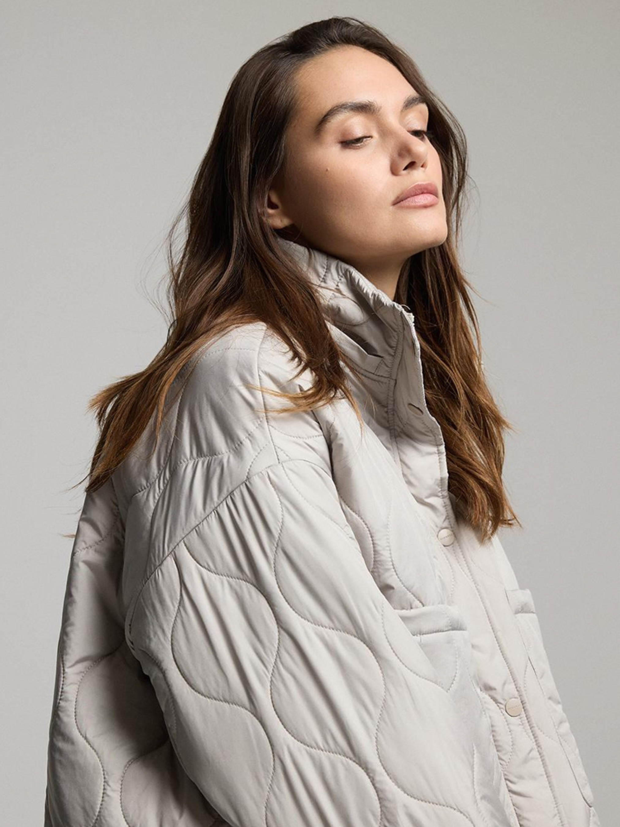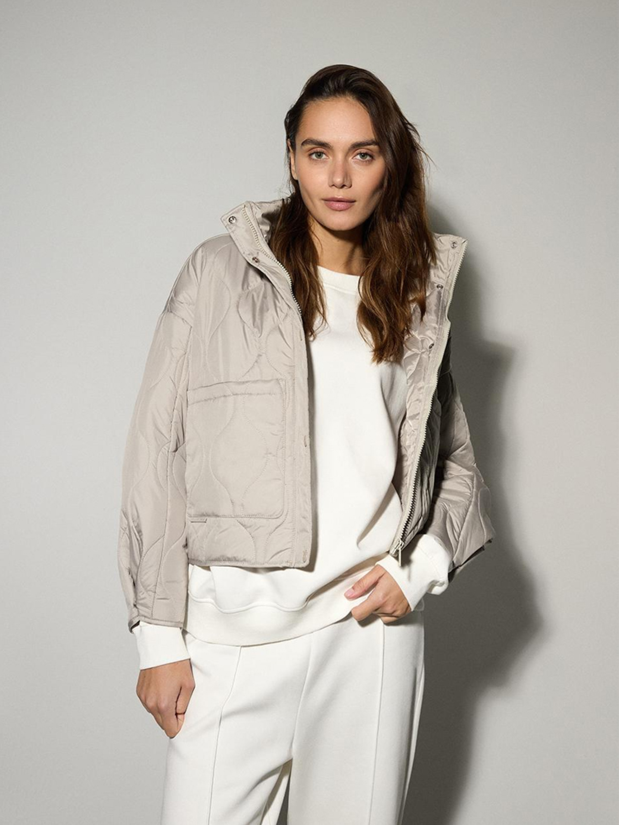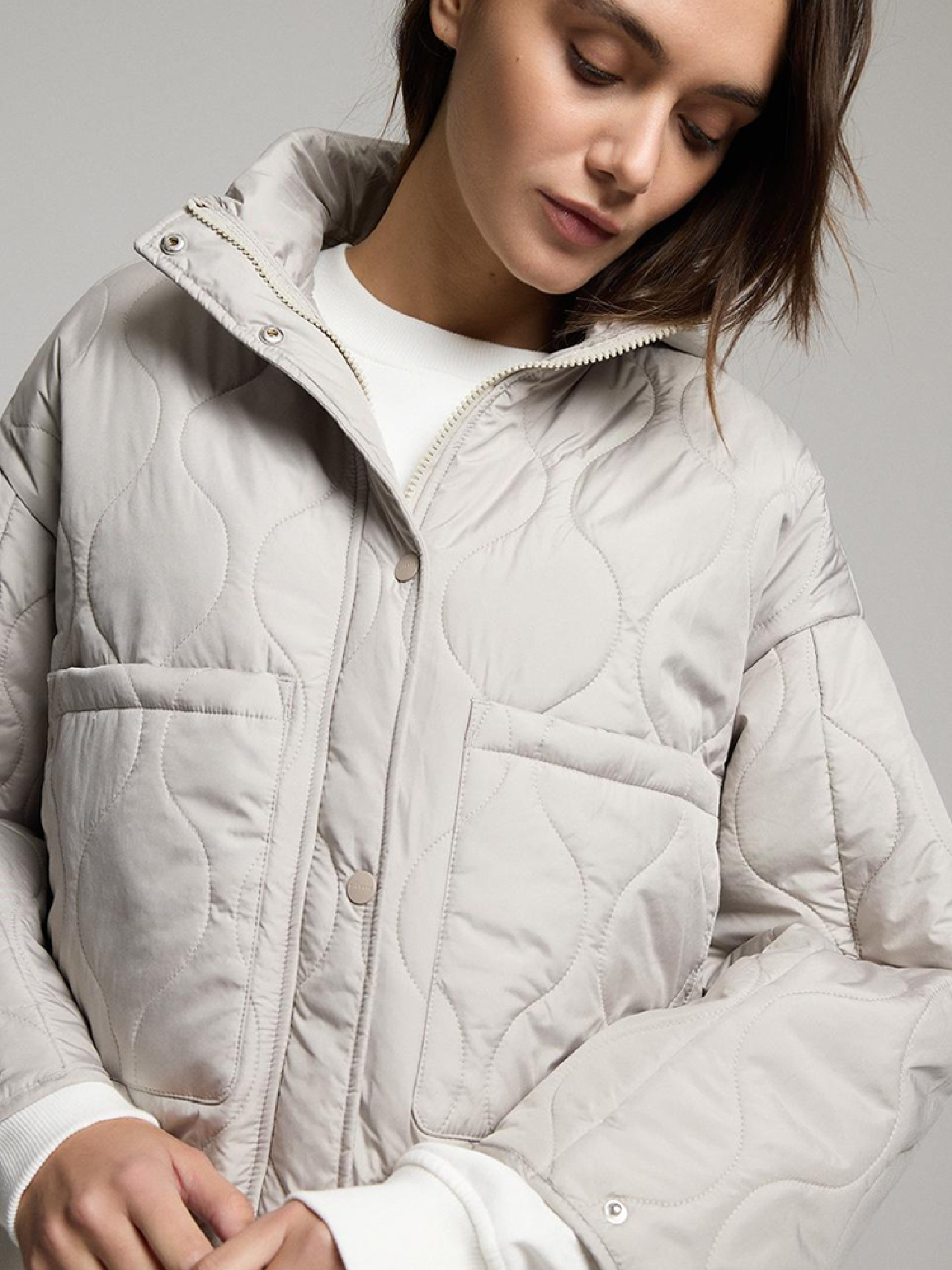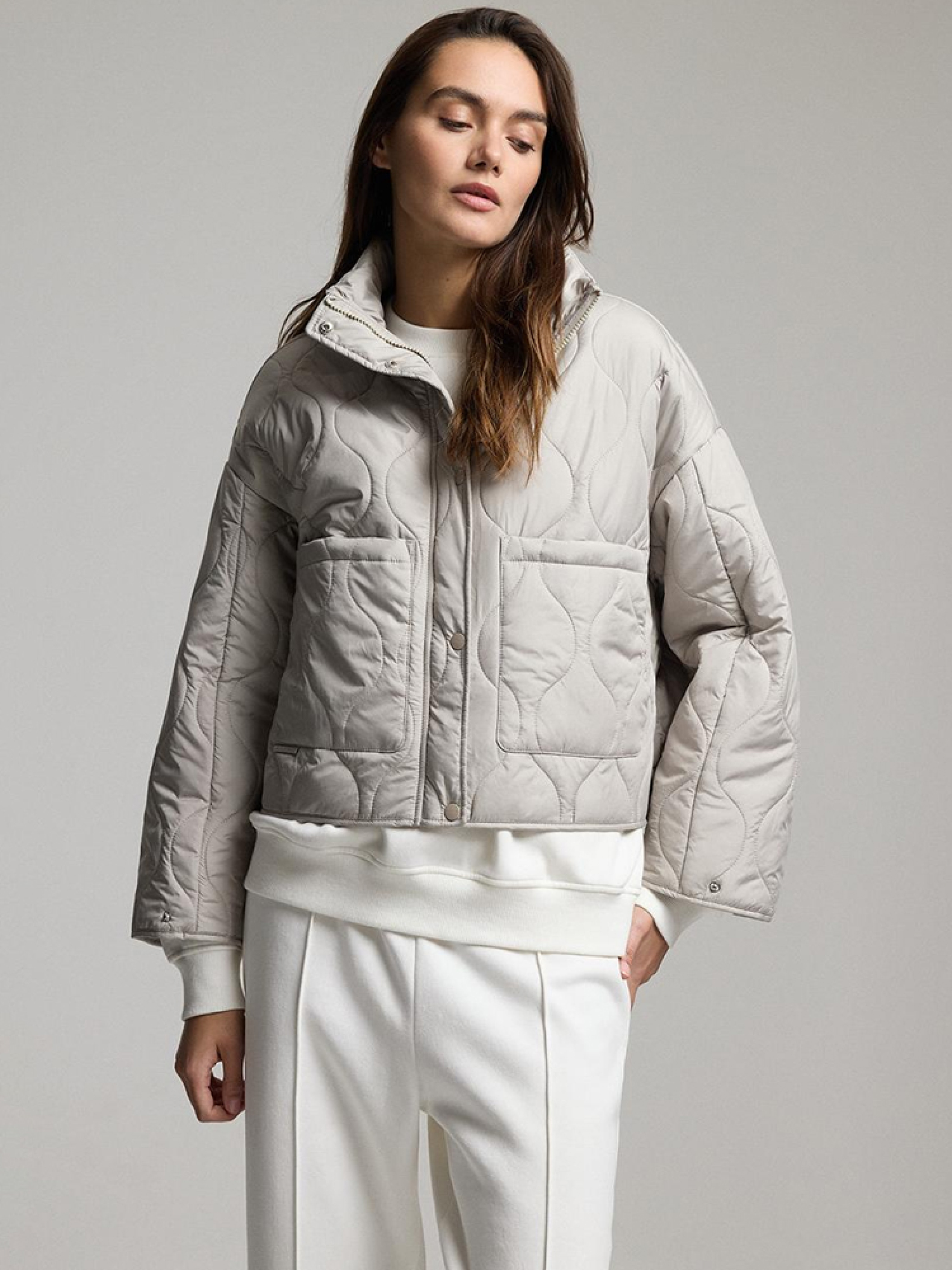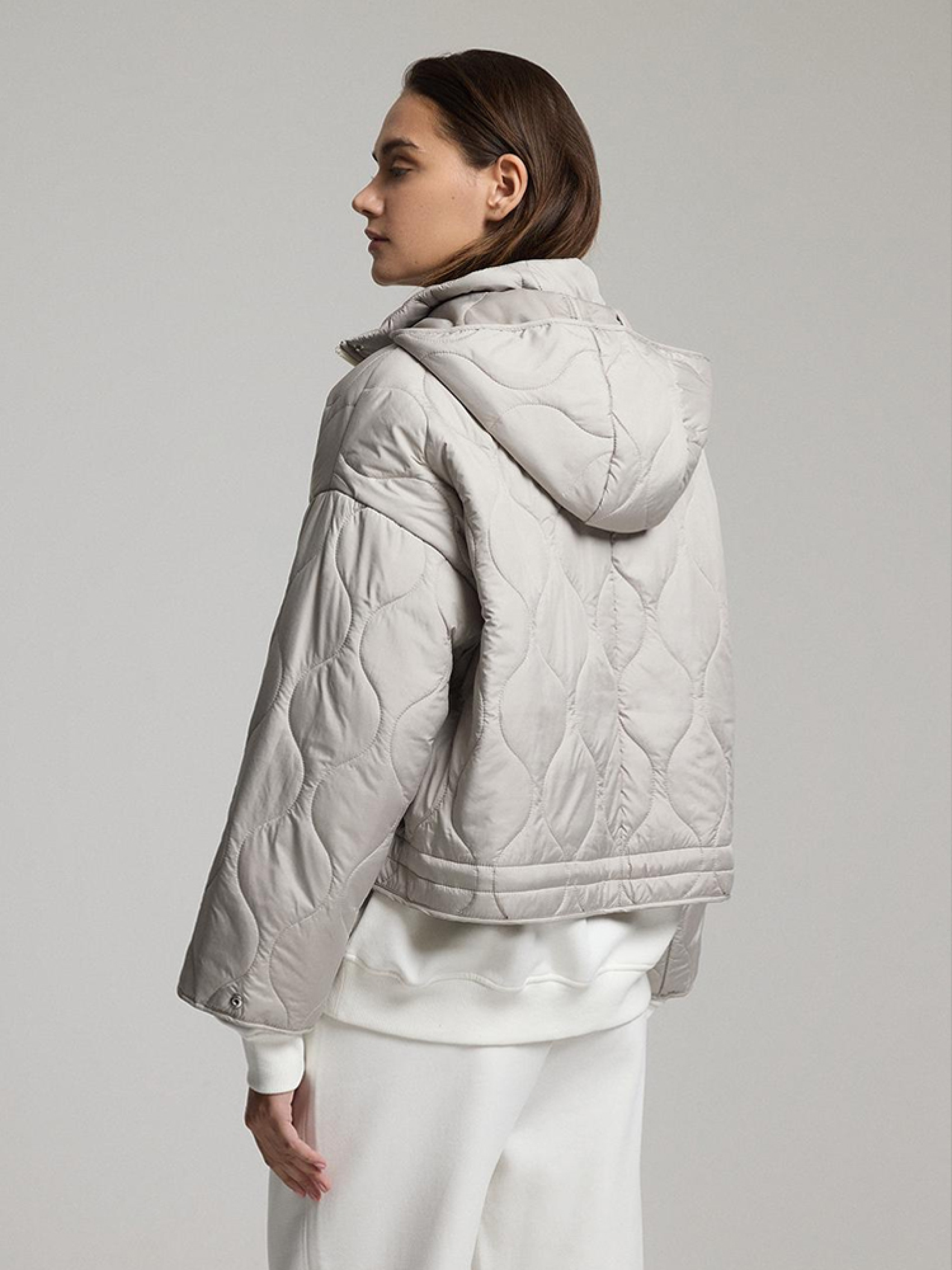 QUILI Женская переходная куртка слегка оверсайз кроя, слегка скругленной и спущенной линией плеча. - капюшон и воротник-стойка, прикрывающая горловину, - легкий утеплитель с синтепоном, - застежка на молнию и кнопки, - регулировка ширины рукавов на кнопках, - два внешних накладных кармана, - возможность регулировки ширины куртки сзади, что позволяет стилизовать куртку разными способами. Сезон: Весна/Лето Состав: 100% полиэстер Уход: - стирка при максимум 30 °С - не отбеливать - не сушить в сушильной машине - не гладить - не химчистка Размер на модели – S Рост модели – 180 см