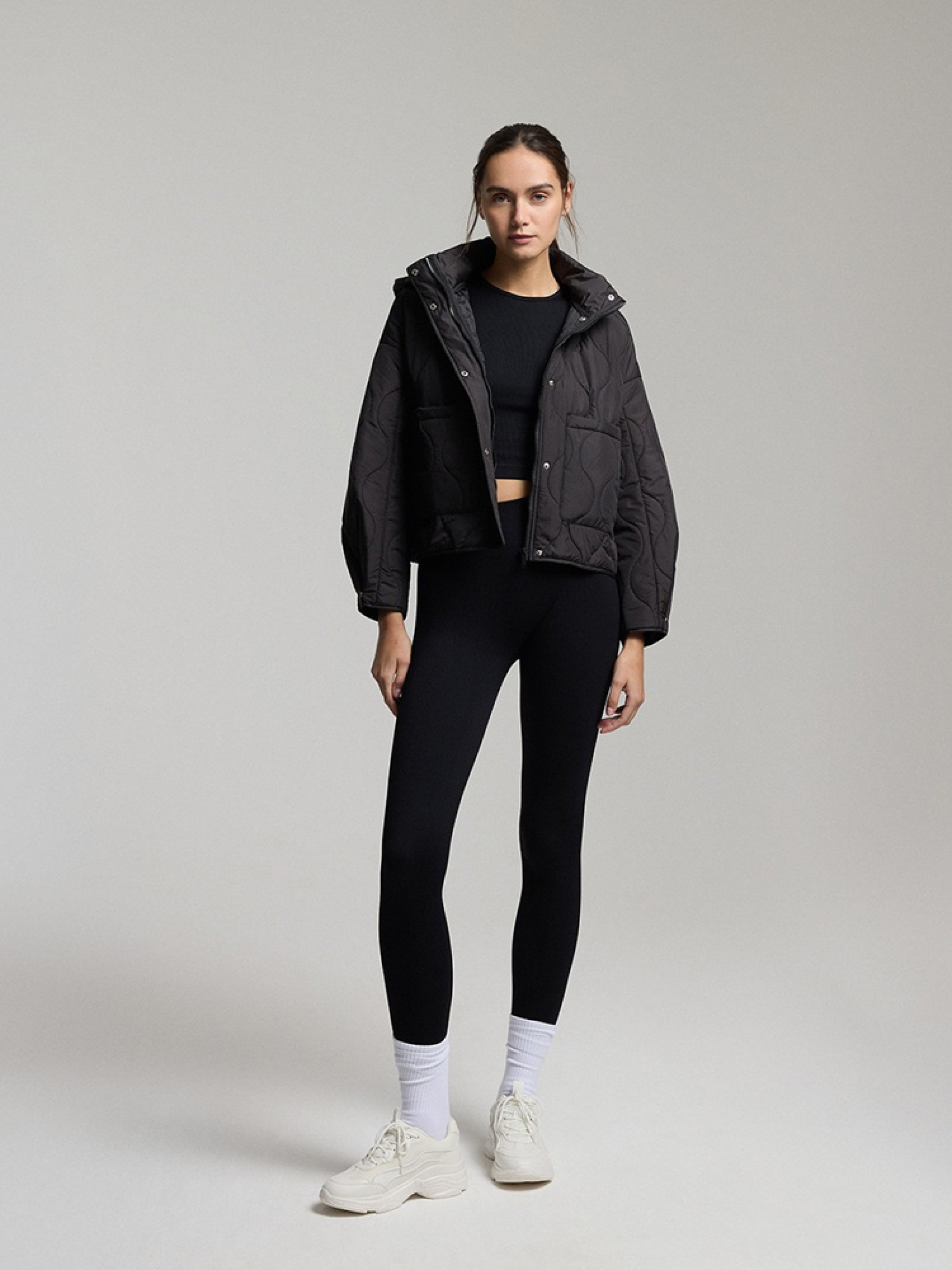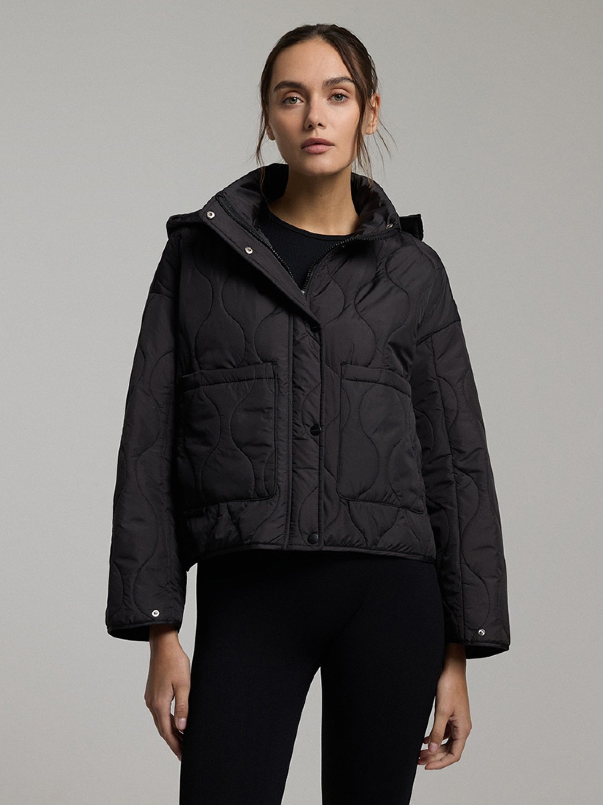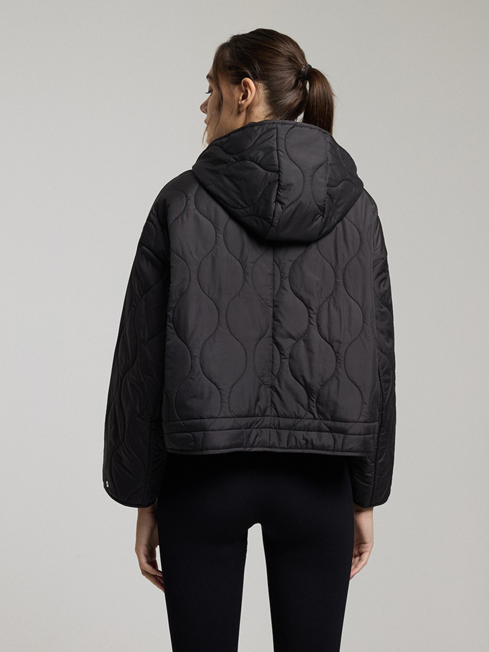QUILI Женская переходная куртка слегка оверсайз кроя, слегка скругленной и спущенной линией плеча. - капюшон и воротник-стойка, прикрывающая горловину, - легкий утеплитель с синтепоном, - застежка на молнию и кнопки, - регулировка ширины рукавов на кнопках, - два внешних накладных кармана, - возможность регулировки ширины куртки сзади, что позволяет стилизовать куртку разными способами. Сезон: Весна/Лето Состав: 100% полиэстер Уход: - стирка при максимум 30 °С - не отбеливать - не сушить в сушильной машине - не гладить - не химчистка Размер на модели – S Рост модели – 180 см