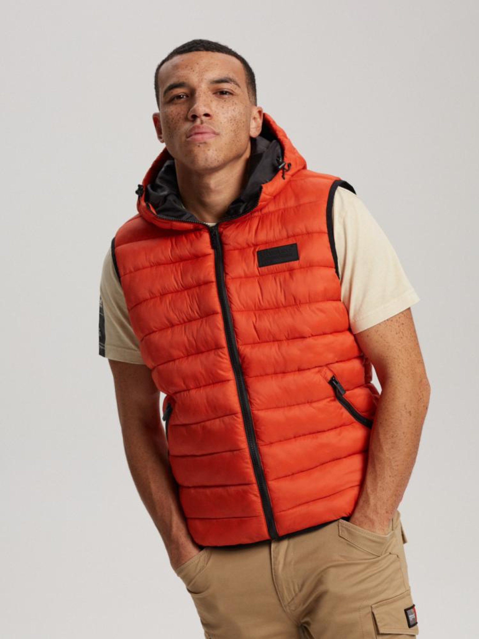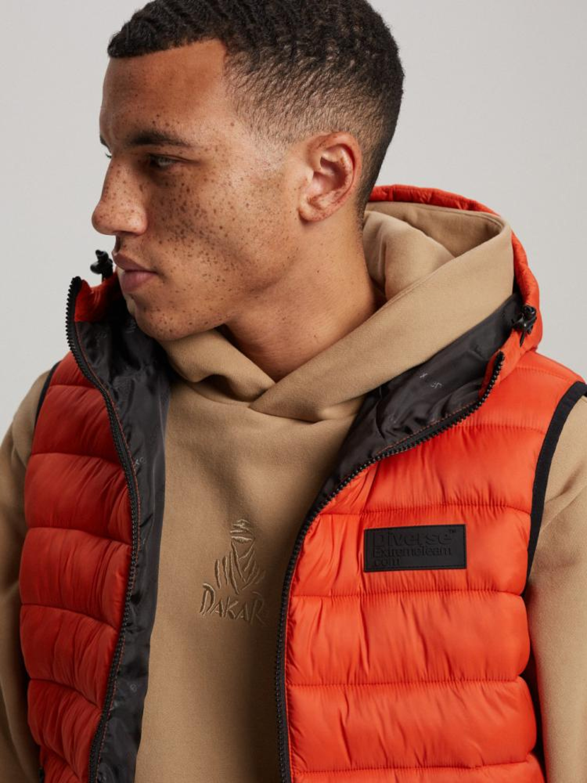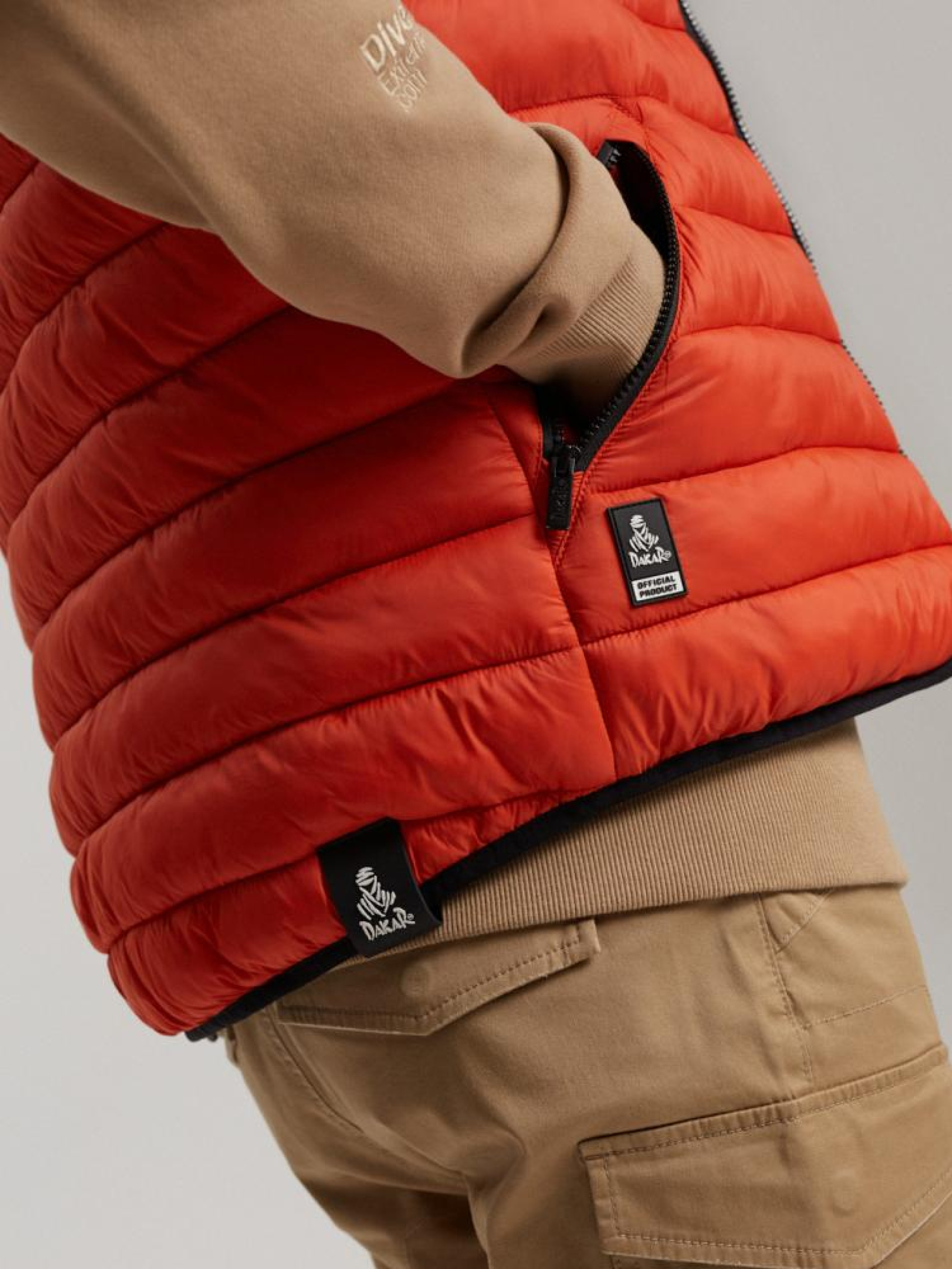 Высококачественный стеганый жилет с капюшоном из линии Diverse Extreme Team/Dakar Official Product. ОСНОВНЫЕ ХАРАКТЕРИСТИКИ: - интегрированный капюшон, - манжеты с эластичной лентой толщиной 1 см, - синтетический пуховой наполнитель, - стёгание по всей куртке, - молнии наивысшего качества, - светоотражающие принты на внешней стороне куртки, защищающей человека, передвигающегося в сумерках в пробках. Сезон: осень/зима. Наружный состав: 100% нейлон. Внутренний состав: 100% полиэстер. Уход: - стирка при максимуме 30 °С - не отбеливать - не сушить в сушильной машине - не гладить - не химчистка Размер на модели – L Рост модели – 187 см