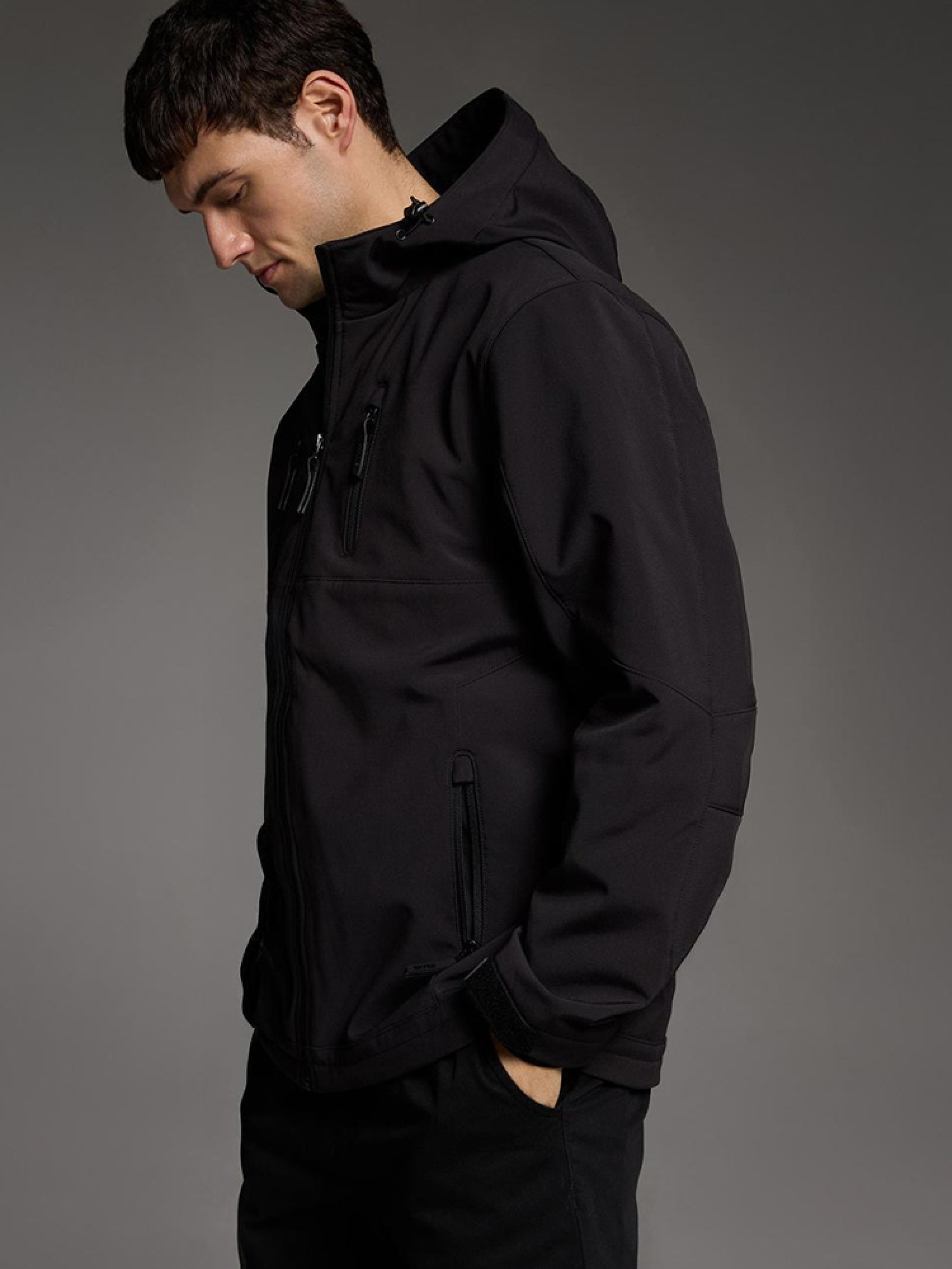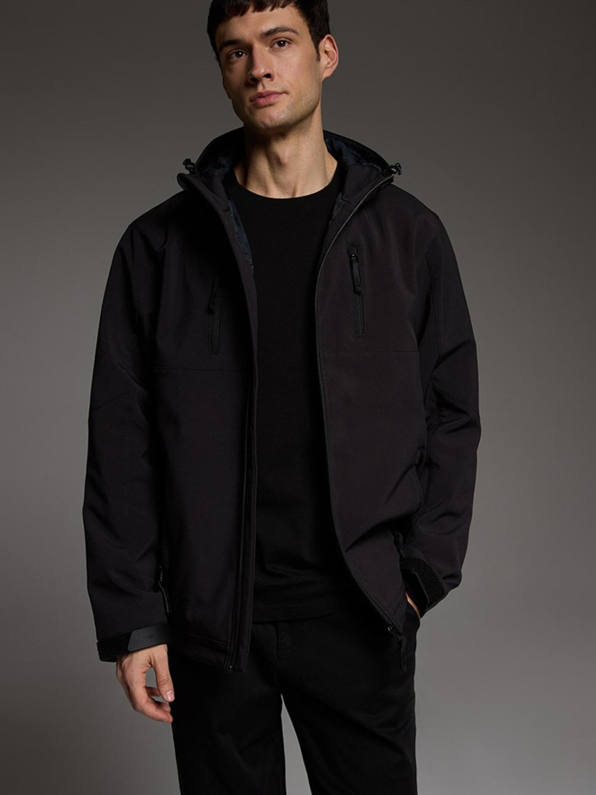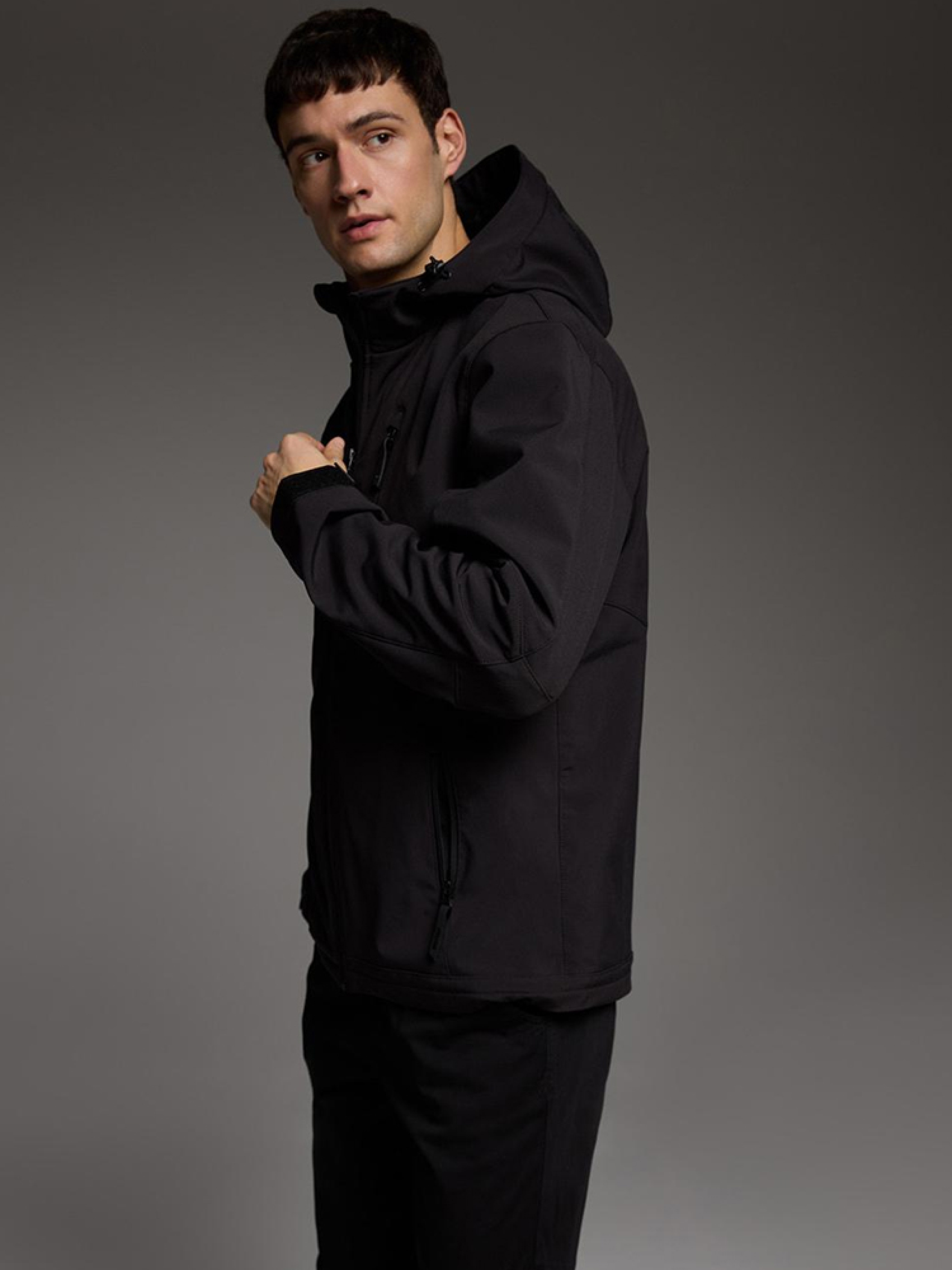 EVO SOFT 5025 Мужская куртка софтшелл EVOLUTION Diverse с капюшоном. Модель изготовлена из современной технической водонепроницаемой ткани. - встроенный капюшон, - регулируемые манжеты, - подкладка, - внутренние карманы, - наружный материал с параметром водонепроницаемости 8000 мм, являющийся внешним защитным слоем от неблагоприятных погодных условий, - молнии наивысшего качества, - четыре внешних кармана на молниях. Куртка доступна в цветах: черный. Параметры: водостойкий 8000 мм. Сезон: Весна/Лето Внутренний состав: 100% полиэстер Наружный состав: 94% полиэстер 6% эластан Уход: - стирка при максимум 30 °С - не отбеливать - не сушить в сушильной машине - не гладить - не химчистка Размер на модели – XL Рост модели – 187 см