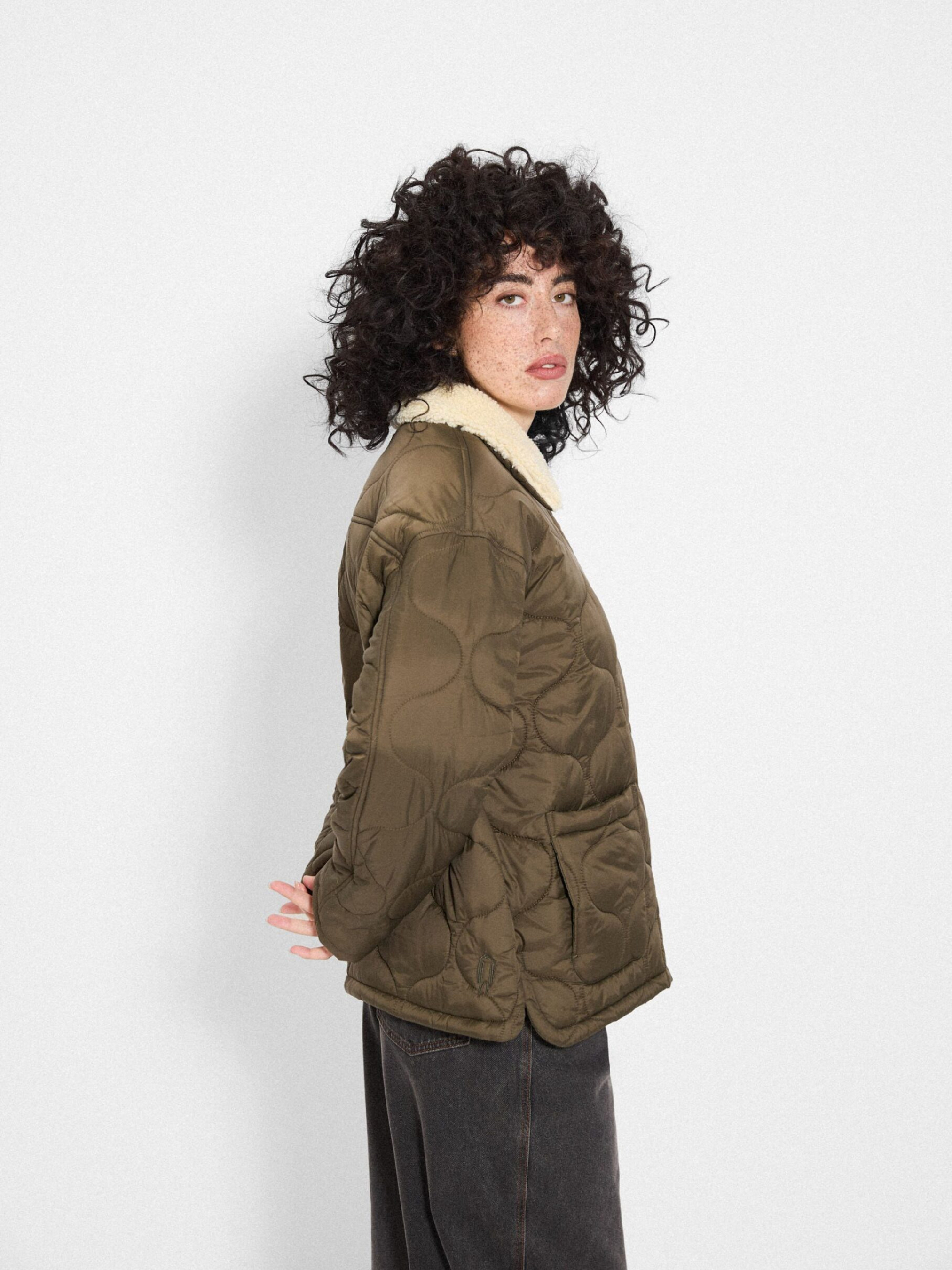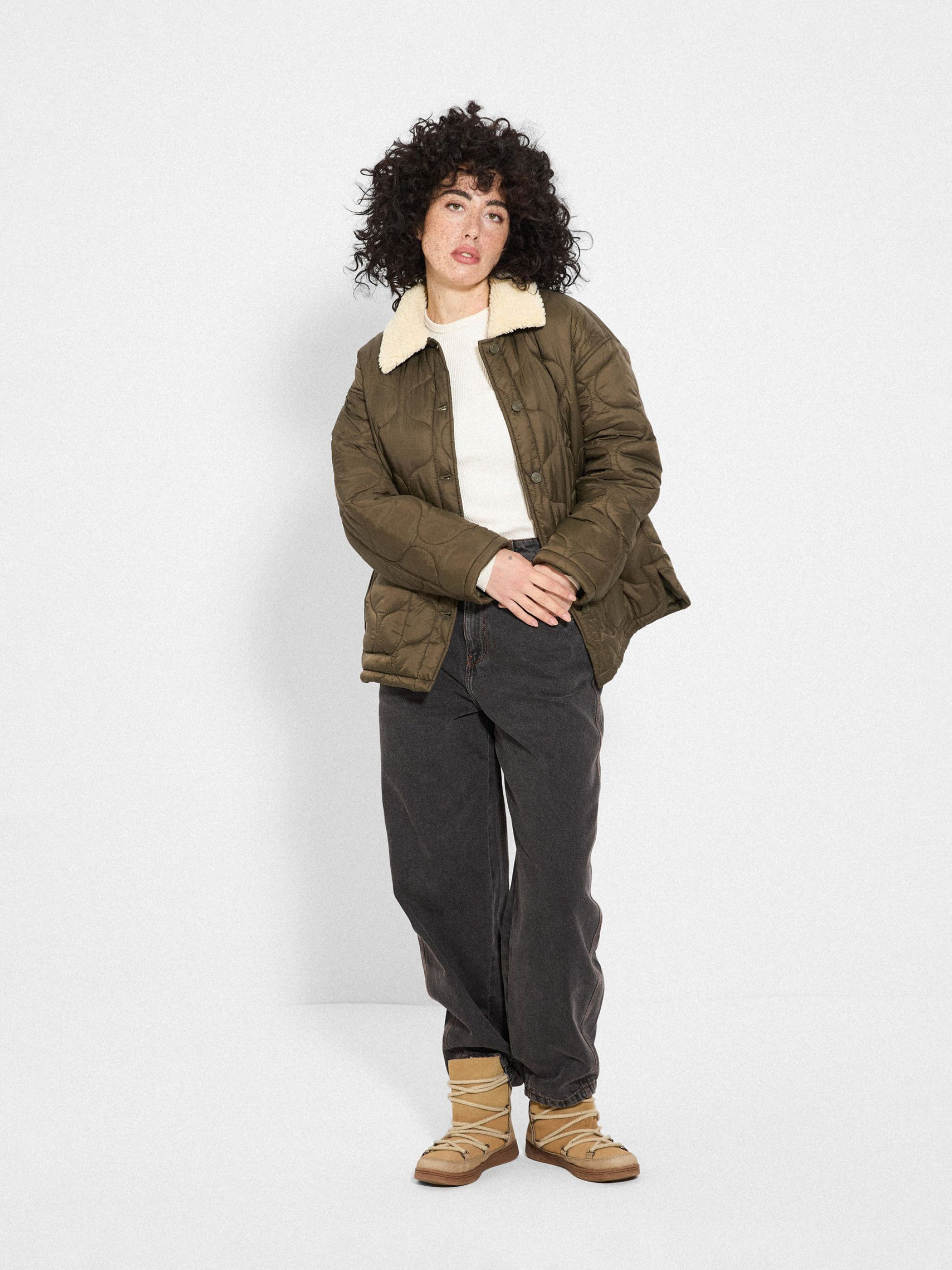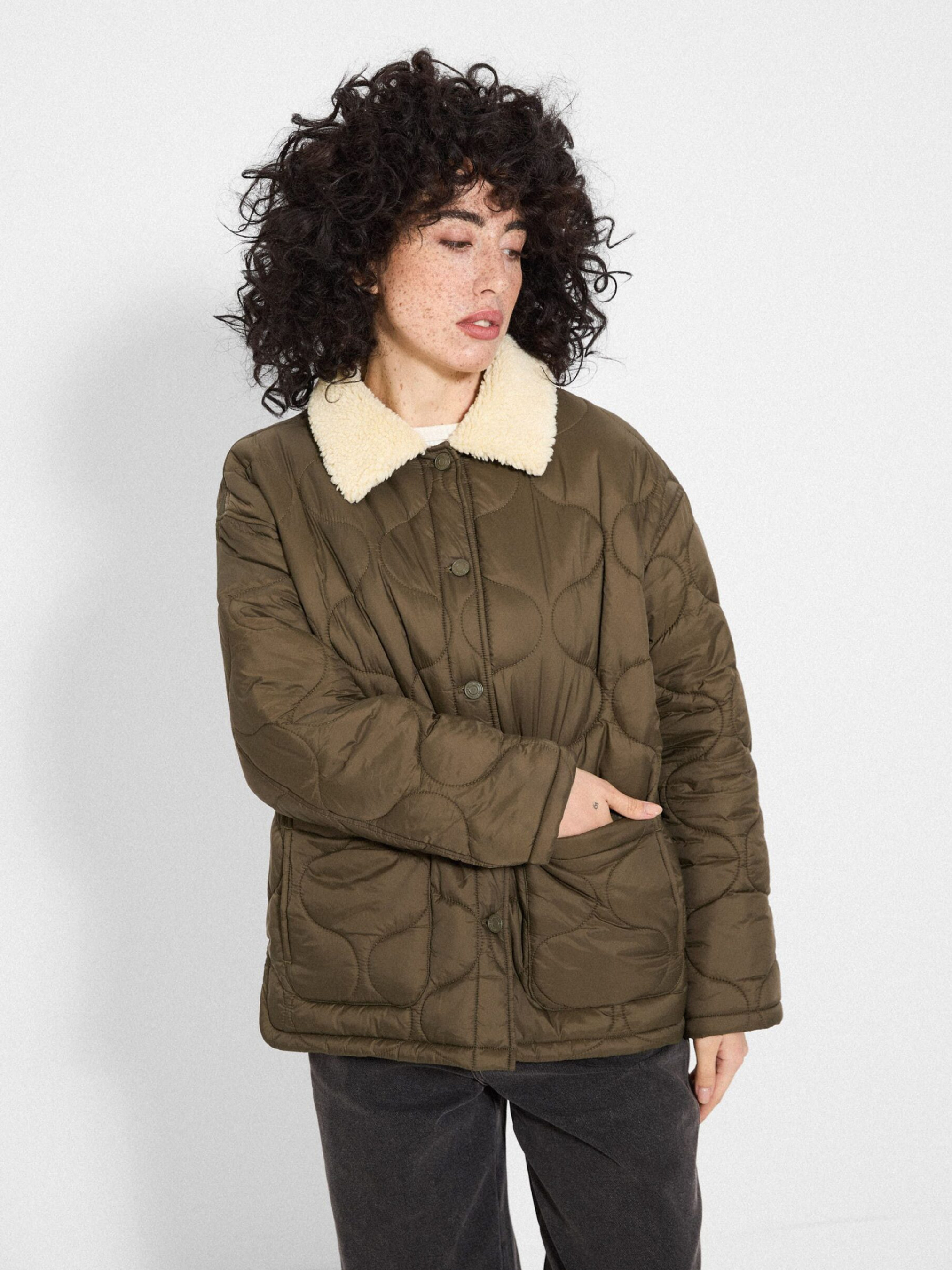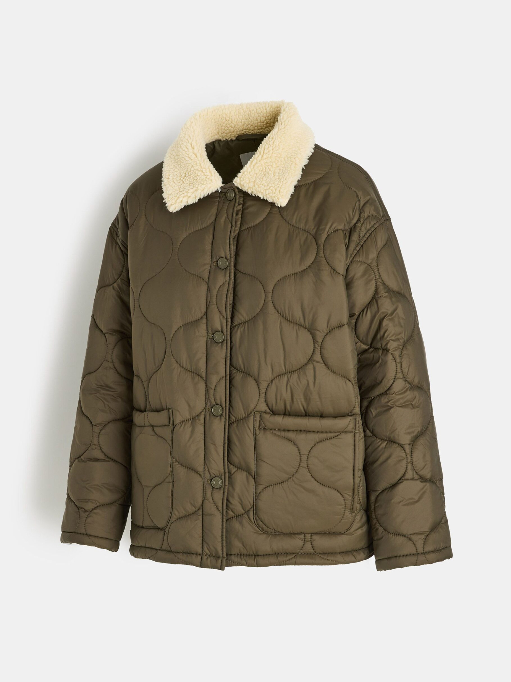 Куртка CLTN GUTTA / ID: 10048173 Рост модели: 172 см Размер товара: S Куртка цвета хаки: - свободный, удобный крой, - мягкий воротник из искусственного меха, - застежка на пуговицах, - практичные боковые карманы. Внутренний состав 100% полиэстер Внешний состав 100% нейлон Наполнитель 100% полиэстер Уход: - стирка при максимум 30 °С - не отбеливать - не сушить в сушильной машине - не гладить - не подвергать химчистке Размер: XS S М L Длина по центру спинки: 68 68 70 72 Ширина снизу: 59 61,5 64 66,5 Ширина подмышками: 60,5 63 65,5 68 Длина рукава: 54 54 55,5 57