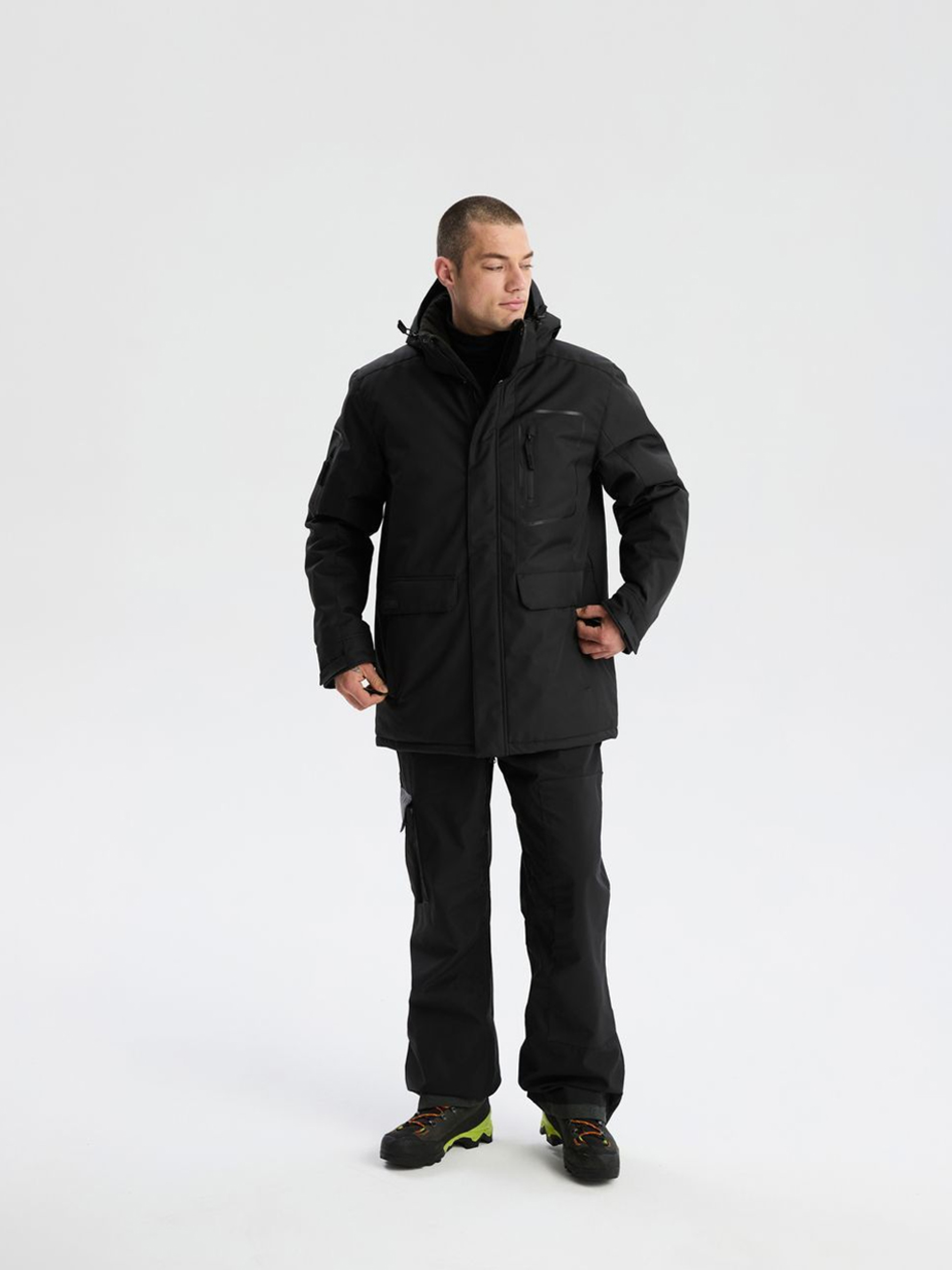Куртка EVO 05 255 / ID: 10047673 Рост модели: 185 см Размер товара: XL Мужская осенне-зимняя куртка спортивного характера: - отстегивающийся капюшон с высоким воротником, - слегка удлиненная форма, - водонепроницаемые застежки, - в местах, часто подвергающихся износу, материал покрыт резиной для защиты от истирания, - регулируемый размер манжеты (резиновый и декоративный элемент на липучке), - наполнение из синтетического пуха, - внутренние карманы, - шесть наружных карманов, в том числе один на плече - застегивается на водонепроницаемую молнию, - наружный материал с параметрами, обеспечивающими защиту от неблагоприятных погодных условий - застежка-молния - двухполярная, - серебристый материал с внутренней стороны спинки помогает удерживать и отбивать тепло. Настройки 10000 мм/5000 mvp. Внутренний состав 100% полиэстер Наружный состав 100% полиэстер Наполнитель 100% полиэстер Уход: - стирка при максимум 30 °С - не отбеливать - не сушить в сушильной машине - не гладить - не подвергать химчистке Размер: М L XL XXL Общая длина спинки: 81 83 85 87 Ширина снизу: 59 61 63,5 66 Ширина груди: 61 63 65,5 68 Внешняя длина рукава: 68 70 71,5 73