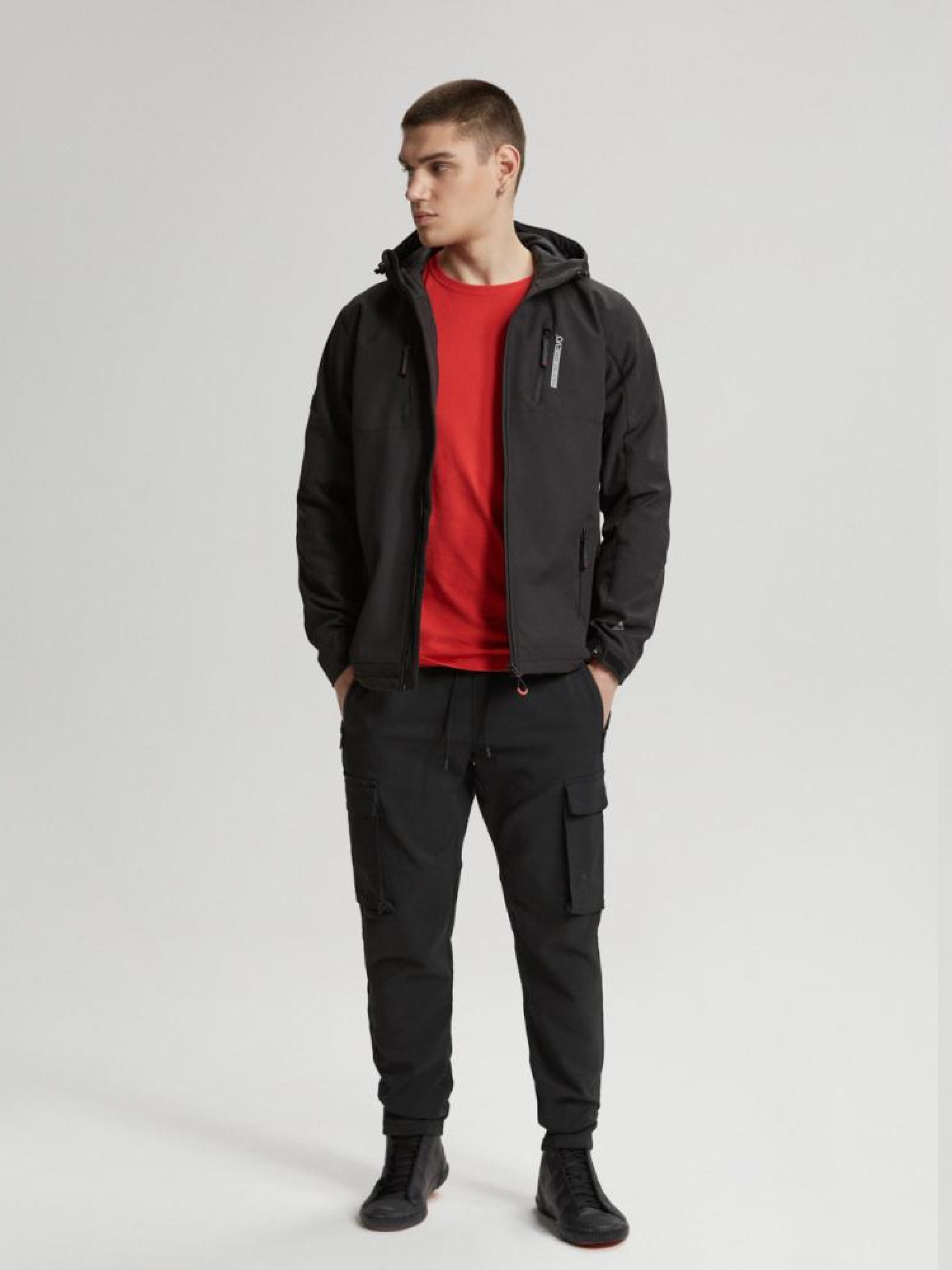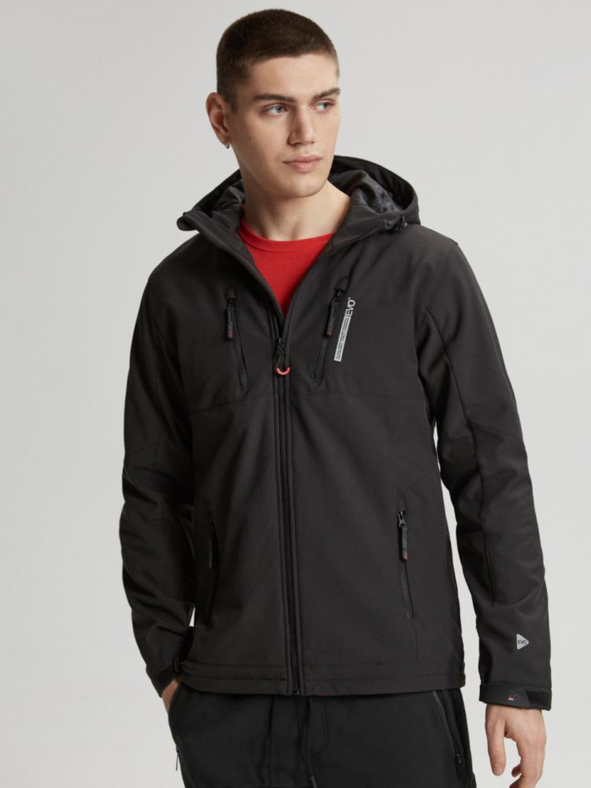 Куртка EVO SOFT 0523 10041349 Мужская куртка софтшел EVOLUTION Diverse с капюшоном. Модель изготовлена из современной технической водонепроницаемой ткани. ОСНОВНЫЕ ХАРАКТЕРИСТИКИ: - встроенный капюшон, - регулируемые манжеты, - подкладка, - внутренние карманы, - внешняя ткань с параметром водонепроницаемости 10 000 мм, которая является внешним слоем защиты от неблагоприятных погодных условий, - молнии высочайшего качества, - четыре внешних кармана с застежками. Водонепроницаемая ткань серебристого цвета на внутренней стороне спинки помогает удерживать и отражать тепло. Куртка доступна в цветах: черный Параметры: Влагостойкость 10000мм (подходит для дождя от среднего до сильного) Сезон: Весна/Лето Внешний состав: 94% полиэстер, 6% эластан. Внутренний состав: 100% полиэстер. Уход: - стирка при максимум 30 °С - не отбеливать - не сушить в сушильной машине - не гладить - не химчистка Размер на модели - XL Рост модели - 188 см
