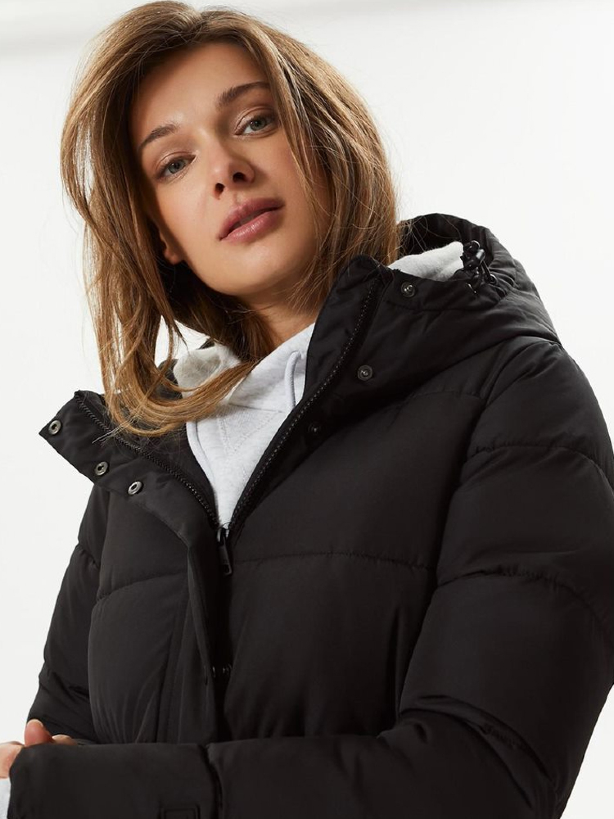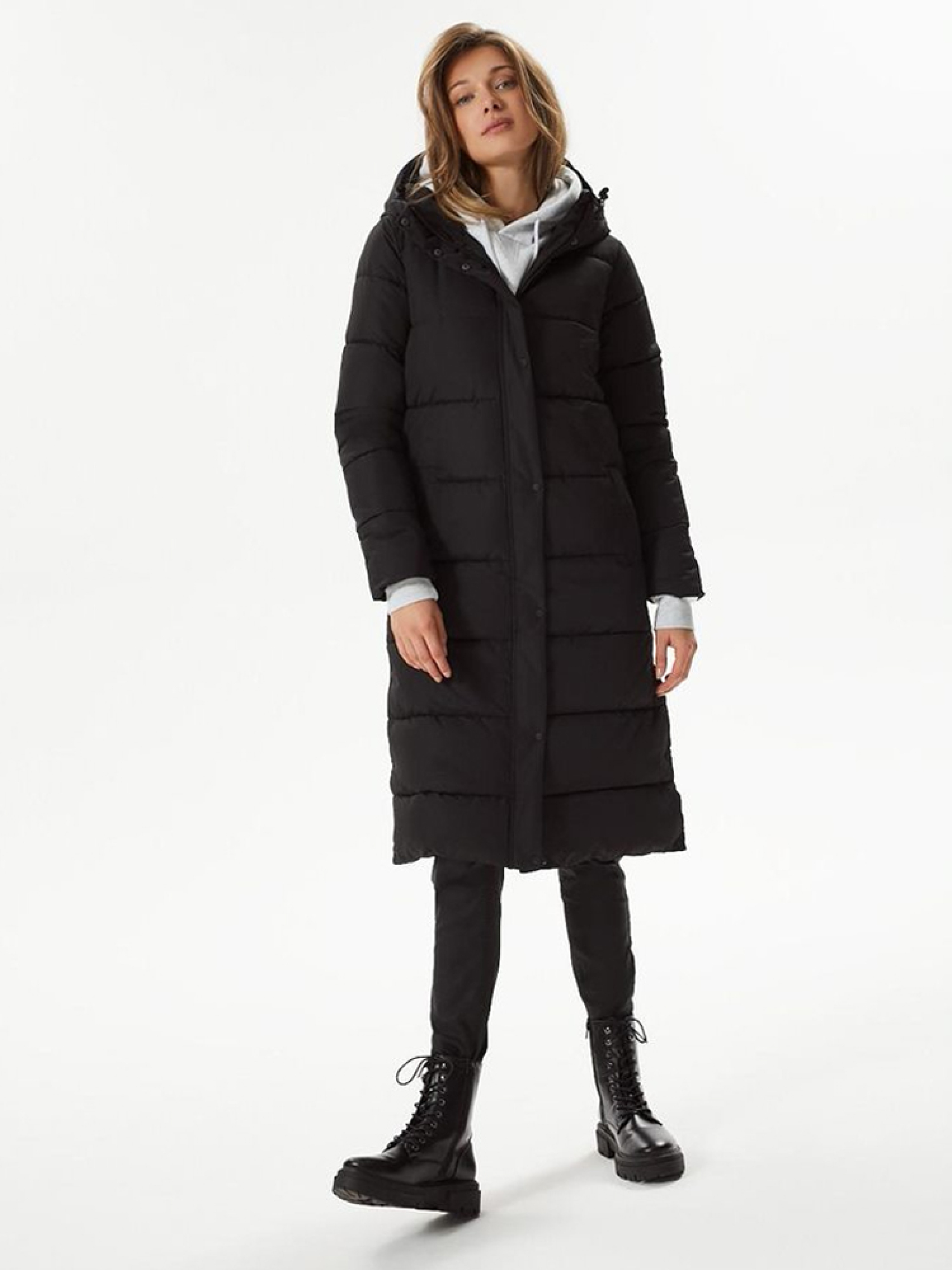 Утепленная куртка YELA длинного кроя с наполнителем из синтетического пуха. Возможность отстегнуть куртку по бокам. Капюшон и высокий воротник-стойка эффективно защищают от ветра и дождя. Два внешних кармана. Модель застегивается на молнию и кнопки. Поставляется в черном цвете и сером меланже. ОСНОВНЫЕ ОСОБЕННОСТИ: - верхняя ткань матовая, - утеплитель синтетический пух, - прямой удлиненный крой, - широкая, горизонтальная простежка, - высокий воротник-стойка, переходящий в капюшон, - капюшон с регулировкой по окружности, - основная пластиковая застежка-молния и полоса с кнопками, - боковые прорези, застегиваемые на кнопки, - два боковых кармана в виде диагональных планок, - модель доступна в двух цветах: черном и сером меланже. Сезон: осень / зима.
