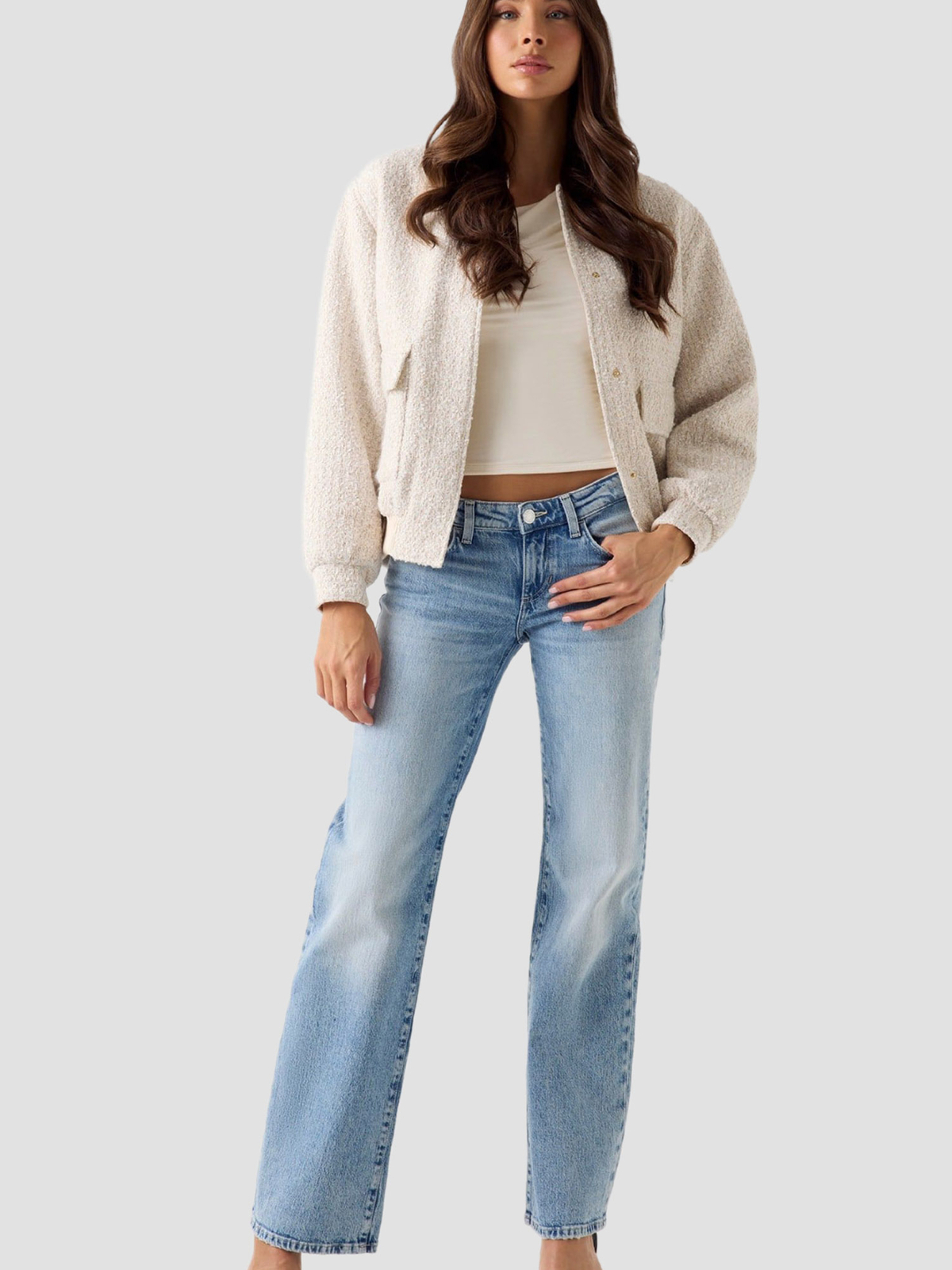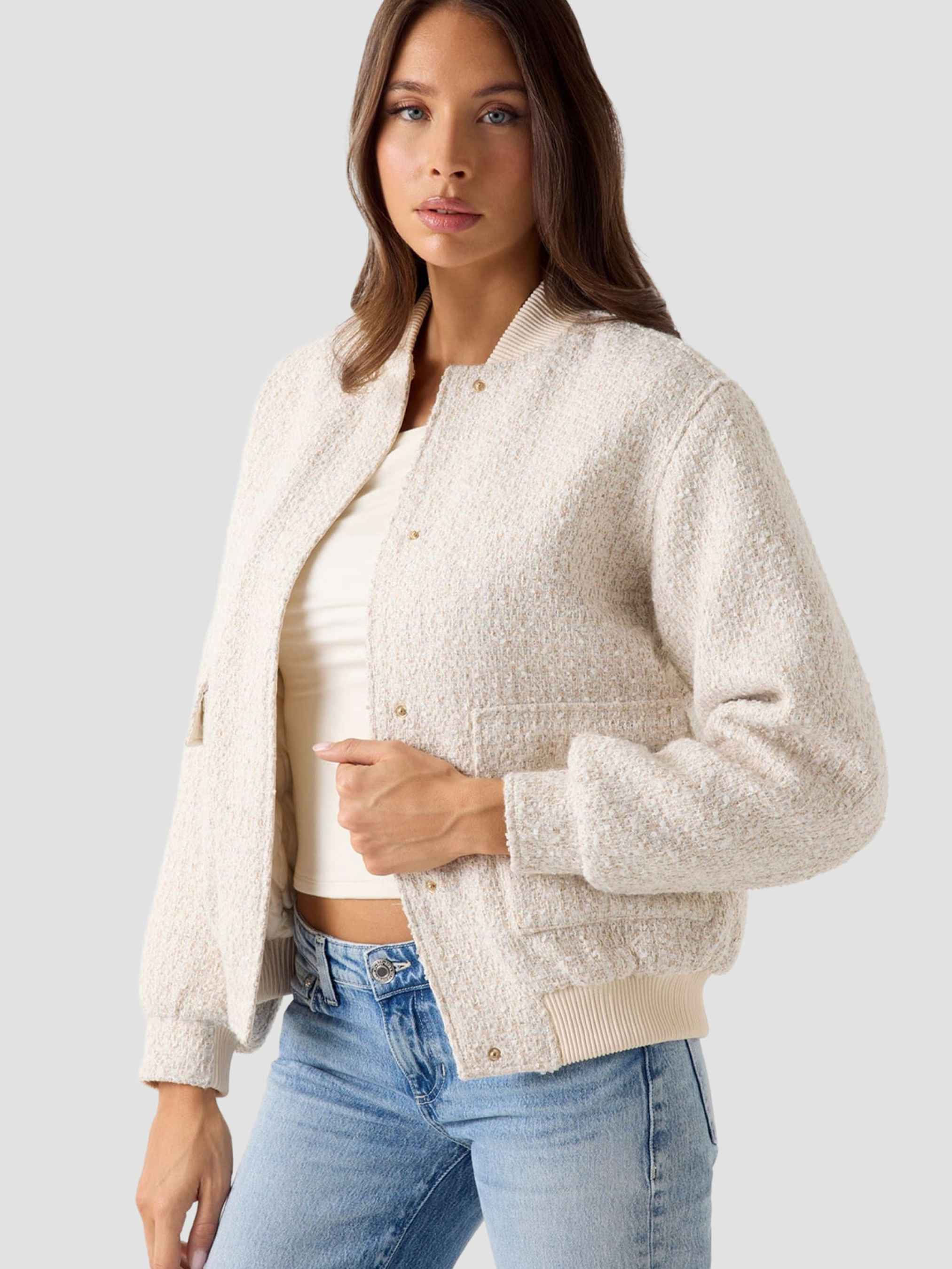 Женский бежевый твидовый бомбер модель W6RL38.WJ572;F0D9