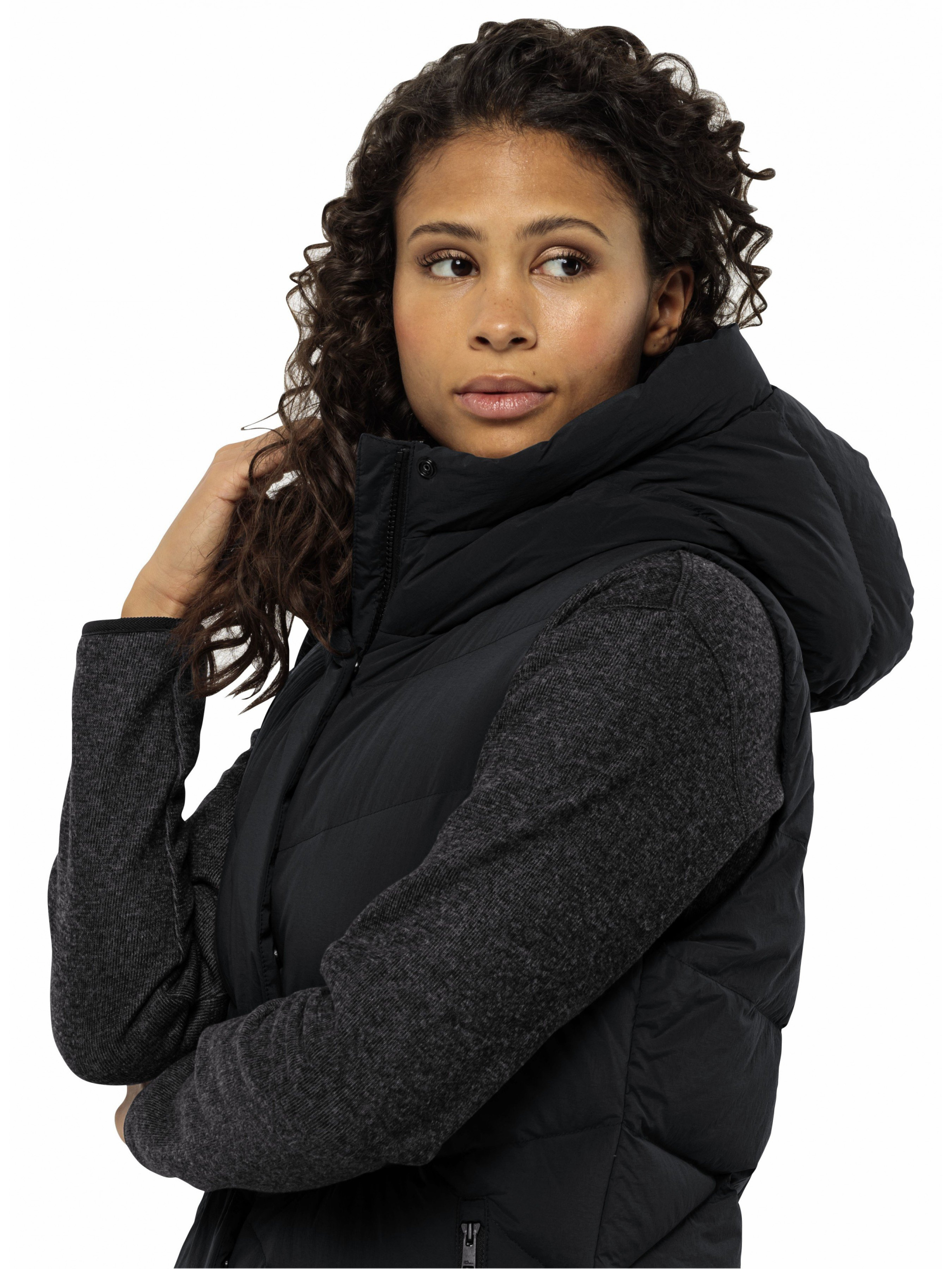Жилет MARIENPLATZ VEST W от Jack Wolfskin – идеален для межсезонья, он дарит комфорт и подчеркивает вашу индивидуальность. Имеет прямой, свободный крой, что обеспечивает высокое удобство, а также длину, сохраняющую тепло для большей части тела. Инновационный материал TEXASHIELD PRO делает жилет водо- и ветронепроницаемым, при этом позволяя коже дышать, что гарантирует комфорт в течение целого дня. Наполнитель из Grey Duck Down – пух стандарта RDS (90% пуха и 10% пера) – обеспечивает тепло и уют, не причиняя вреда животным. Специальная конструкция пуховых камер способствует максимально эффективному сохранению тепла и его равномерному распределению по всему жилету. Также он оснащен надежными карманами для удобного хранения мелочей и глубоким капюшоном для дополнительной защиты.