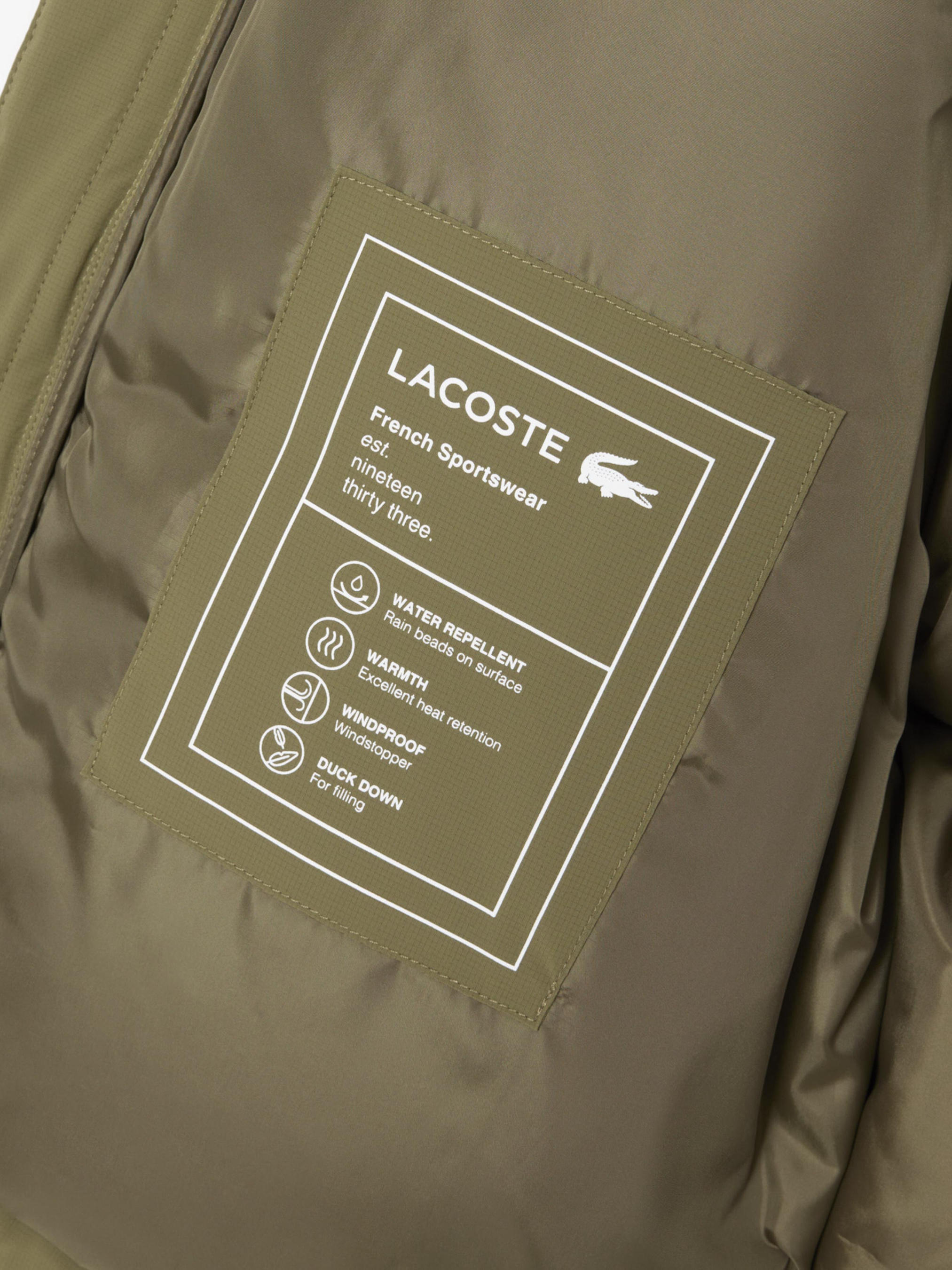 Эта пуховая куртка сочетает в себе элегантность Lacoste и техническое совершенство. Изготовлена из водоотталкивающей нейлоновой ткани, защищающей от ветра, с наполнением из сертифицированного пуха RDS. Мягкие флисовые карманы, съемный капюшон и регулируемый поясом шнурком обеспечивают максимальный комфорт. Идеальный баланс тепла, воздушности и стиля, дополненный фирменным вышитым логотипом крокодила. Материал: 100% нейлон Пуховое наполнение (сертифицированный RDS пух) Водонепроницаемая и ветропрочная ткань Капюшон, прячущаяся в воротнике Два флисовых кармана на молнии и один внутренний Регулируемый пояс со шнурком Вышитый логотип крокодила