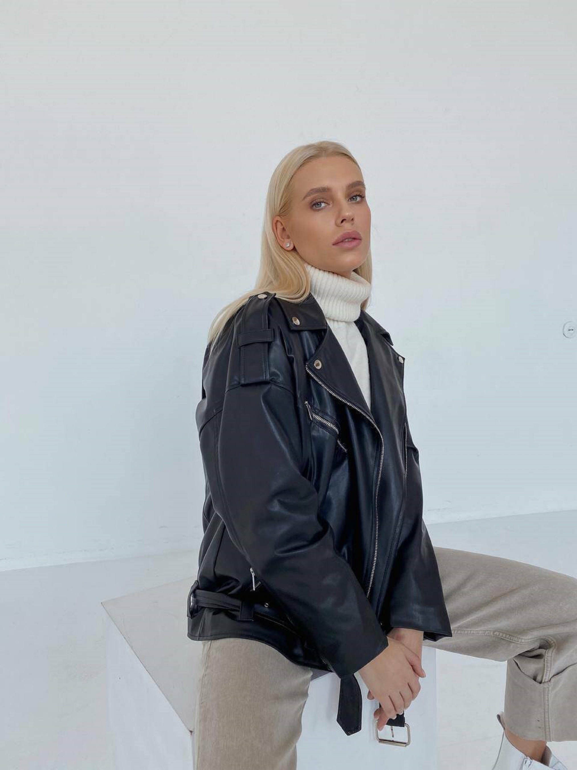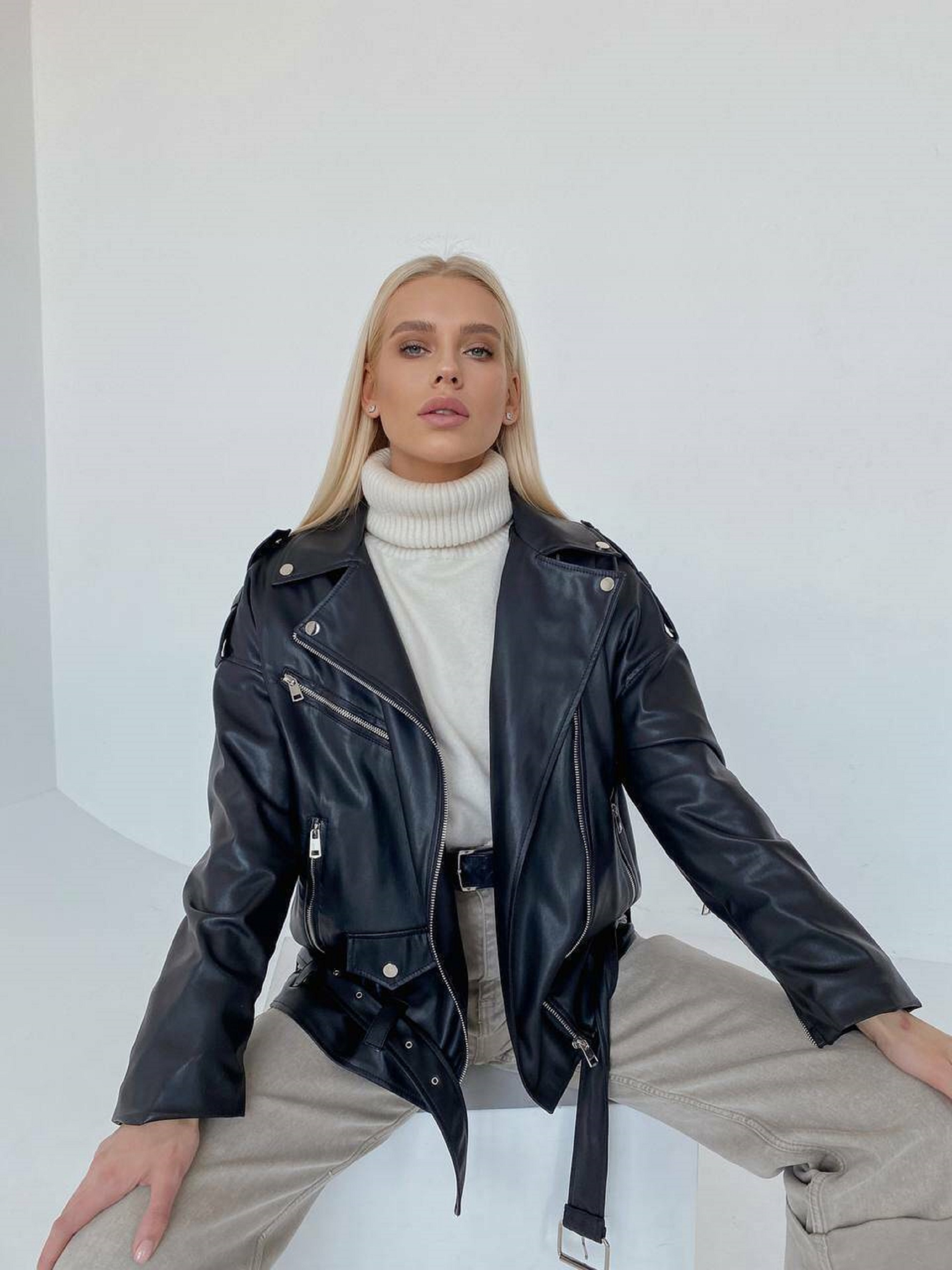 Характеристики: Силует: оверсайз, подовжена Тканина: екошкіра з замші Підкладка: нейлон Фурнітура: металічна, колір нікель Кишені: робочі, функціональні Пояс: в колір виробу, йде у комплекті Розмір: S/L (42-46) Кольори: малина, оливка, білий, рудий, св.беж, чорний, рептилія чорна Особливості та догляд: Модель стильна й універсальна, підходить для повсякденного носіння Завдяки подовженому крою та оверсайз силуету забезпечує комфорт і свободу рухів Для догляду: протирати вологою тканиною без агресивних миючих засобів; уникати тривалого контакту з водою; зберігати в сухому та провітрюваному приміщенні Оверсайз подовжена куртка, виконана з люксової екошкіри з принтом “пітон” і відзначається високою якістю пошиття. Модель поєднує сучасний стиль і практичність завдяки містким кишеням та зручному поясу в комплекті.