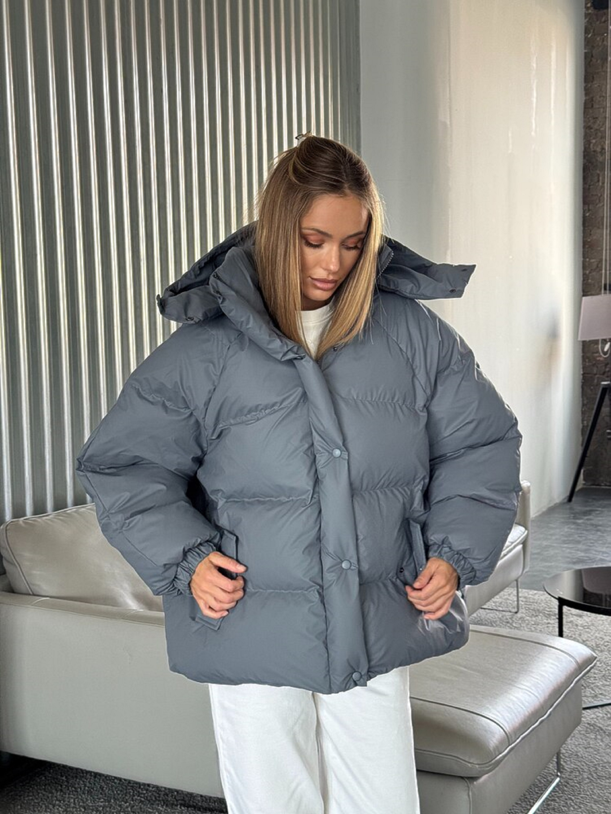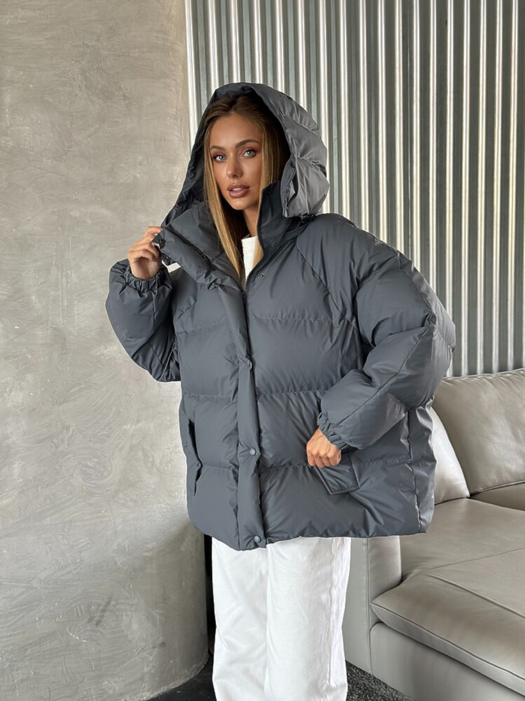 Характеристики: Тип виробу: зимова куртка-пуховик Силует: вільний (oversize) Колір: чорний Матеріал верху: плащівка на мембрані Підкладка: поліестер Наповнювач: ЕКО-ПУХ Капюшон: знімний Кишені: 2 діючі Розмір: one size (L) Догляд: машинне прання “делікатне” при температурі до 30 °C не використовувати відбілювачі сушити у горизонтальному положенні, подалі від нагрівальних приладів прасувати при низькій температурі з виворітного боку хімічна чистка заборонена Жіноча зимова куртка-пуховик IRISH Особливості та переваги: виконана з плащової мембранної тканини, яка непродувається і не пропускає вологу, забезпечуючи надійний захист від вітру та снігу; наповнювач ЕКО-ПУХ зберігає тепло навіть за низьких температур і водночас залишається легким, не створює об’ємності; знімний капюшон додає функціональності — можна легко змінювати стиль залежно від погоди; зручні кишені для рук або дрібних речей роблять модель практичною у щоденному використанні; по низу виробу розташовані куліски, що дозволяють регулювати об’єм і підкреслити силует; універсальний фасон one size комфортно сідає на фігури різного типу, не обмежуючи рухів. Куртка IRISH — це стильне поєднання тепла, легкості й міського шику. Ідеальний вибір для зими: комфортна, практична й актуальна в будь-якому образі — від спортивного до повсякденного.