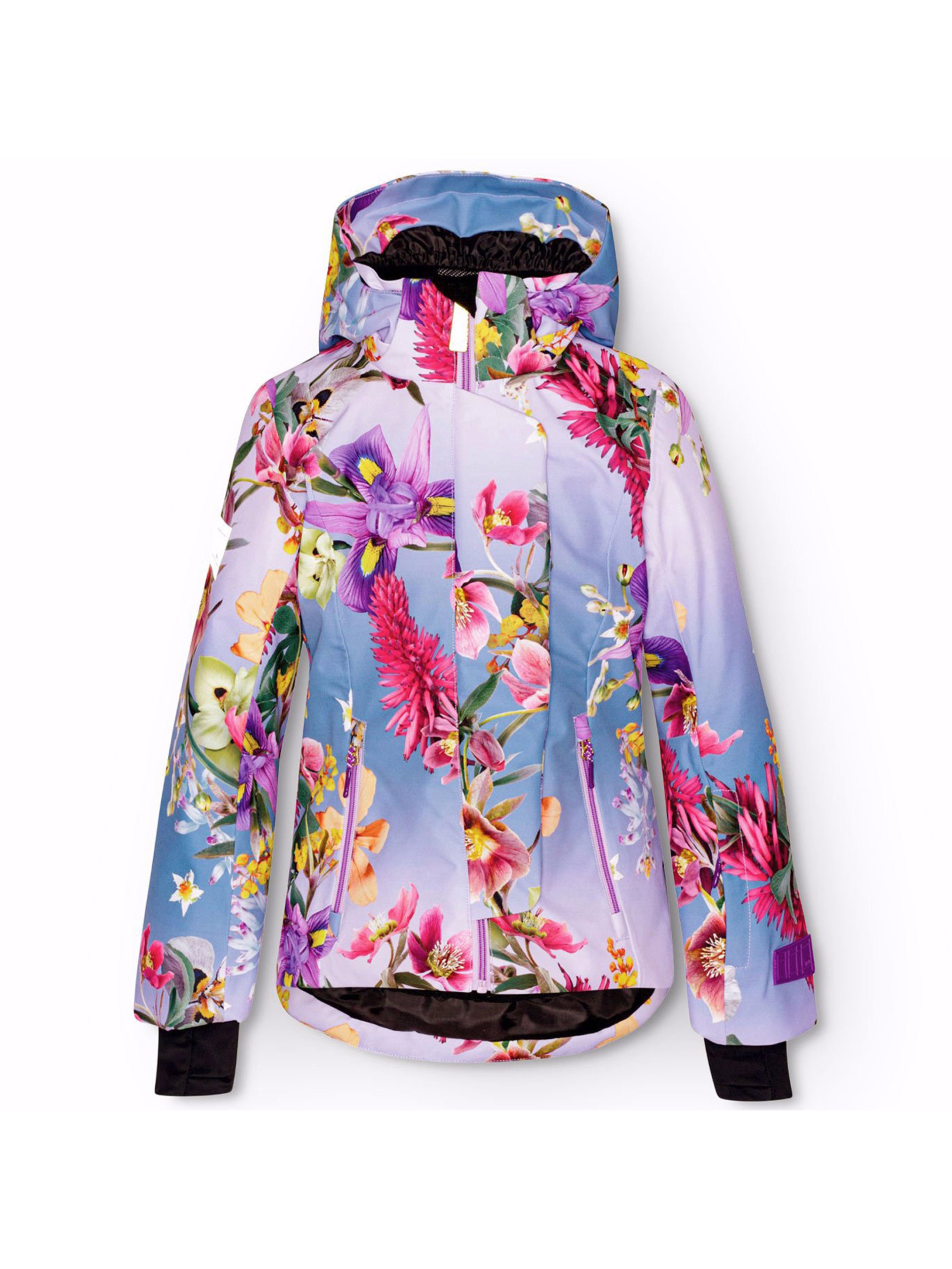 Горнолыжная термокуртка Molo "Pearson Gradient Bloom" с ярким флористическим принтом на синем и фиолетовом фоне. Особенности: водонепроницаемость – 20 000 мм; паропроницаемость – 20 000 г/м2/24ч; утеплитель – 3M™ Thinsulate™ Type EP (Elite) сохраняет тепло в зимнюю погоду до -25°C; основные швы дополнительно проклеены; HEIQ eco dry – швейцарская высокотехнологичная водостойкая пропитка (PFC-free); содержит не менее 50% полиэстера из переработанных материалов, сертифицированного GRS (Global Recycled Standard)*; подкладка из высококачественного мягкого флиса; спереди застежка "молния" с защитой подбородка и асимметричной ветрозащитной планкой на кнопках; боковые функциональные карманы на застежке "молния", внутренний карман для мобильного телефона и карман для ski-pass на одном рукаве; съемный капюшон; фирменные световозвращатели на плече и спинке; эластичные манжеты на рукавах с отверстием для большого пальца; рекомендуемый сезон – зима.