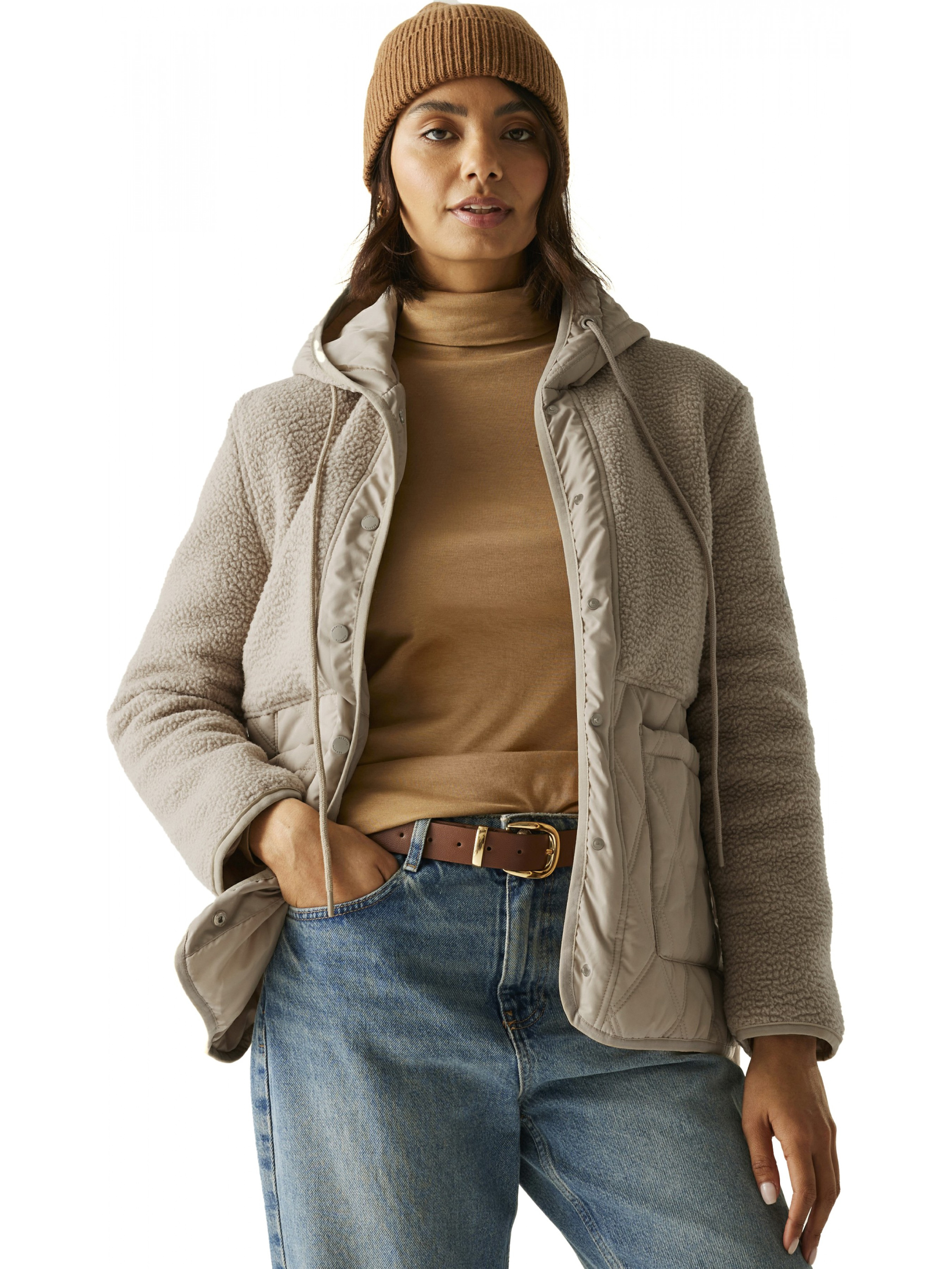 Жакет Mikayla – это сочетание домашнего уюта и практической защиты, созданное специально для тех, кто хочет оставаться в тепле и комфорте даже в прохладные дни. Его универсальный дизайн делает модель идеальной для ежедневных прогулок, загородных поездок или просто теплых моментов в городе, когда хочется чувствовать себя уверенно и стильно. Верхняя часть жакета выполнена из прочной ткани таслан плотностью 85 г/м2, которая обеспечивает надежность и износостойкость, а нижняя часть и внутренняя сторона изготовлены из мягкого флиса плотностью 270 г/м2. Такая комбинация материалов гарантирует тепло, мягкость и приятную текстуру, окутывающую тело, словно одеяло. Благодаря водоотталкивающему покрытию капли дождя просто скатываются с поверхности, не проникая внутрь, поэтому Mikayla защищает от лёгкой непогоды. Внутри жакета – утеплитель Thermoguard из переработанных материалов плотностью 230 г/м2, обеспечивающий стабильное тепло без лишнего веса. Мягкая полиэстеровая подкладка из тафты усиливает комфорт, а вшитый капюшон с регулировочными шнурками создает дополнительную защиту от ветра. Застежка с удобными кнопками и два накладных кармана придают изделию завершенный вид, сочетая функциональность с непринужденным стилем. Жакет Mikayla – это теплый, легкий и стильный выбор для осенне-зимнего сезона. Благодаря качественным материалам, практичным деталям и продуманному крою он дарит ощущение уюта и уверенности в любую прохладную погоду, оставаясь при этом женственным и современным.