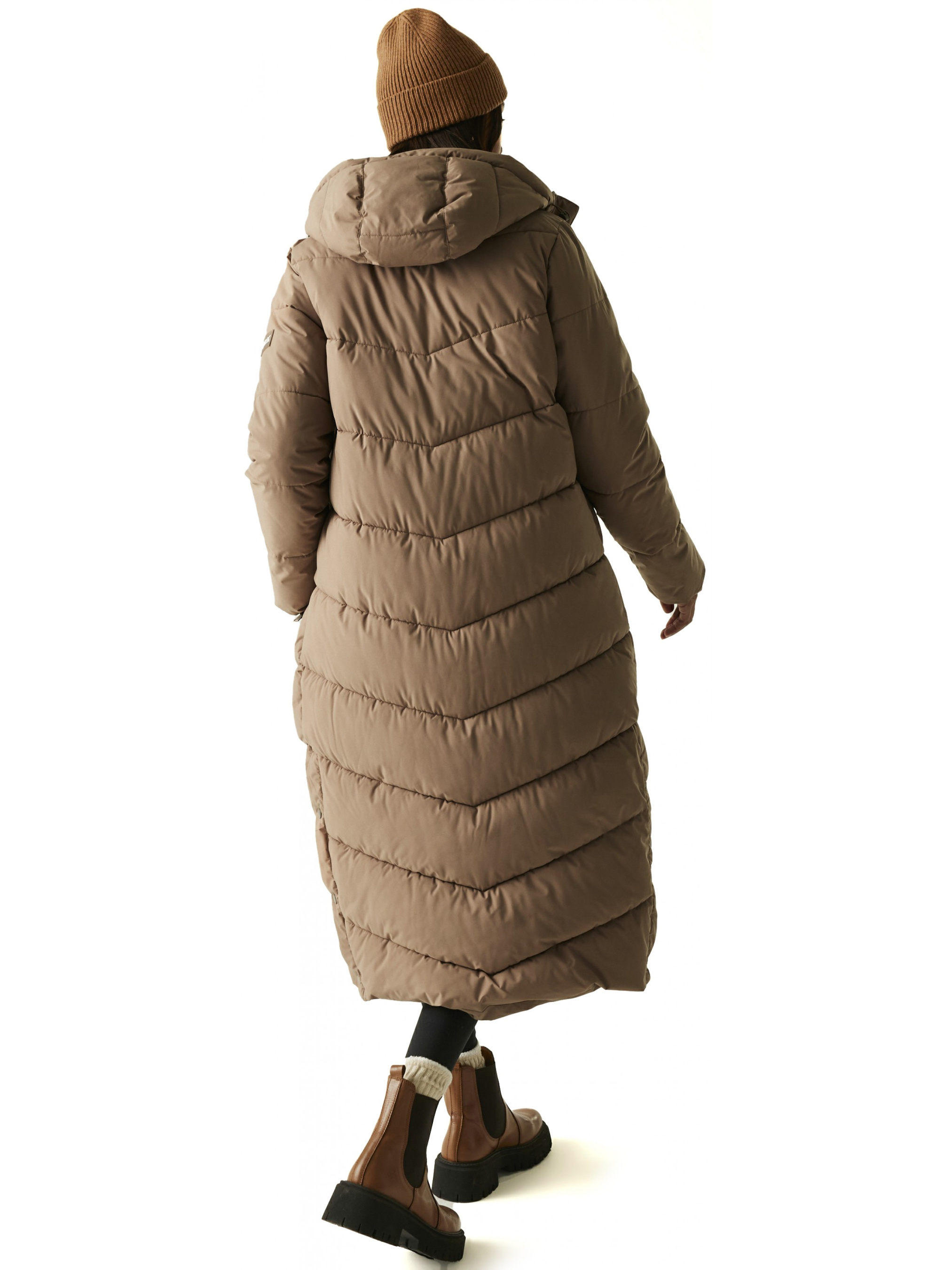 Полупальто Eloria – это современное сочетание элегантности, функциональности и комфорта, созданное специально для женщин, ценящих практичность без компромиссов в стиле. Модель имеет удлиненный силуэт, визуально вытягивает фигуру и придает изящества, делая ее идеальным выбором для городских прогулок, ежедневных дел или поездок на работу. Изготовлено из 100% полиэстера с эластичным эффектом, пальто обеспечивает свободу движений и отлично адаптируется к фигуре. Благодаря крепкому водоотталкивающему покрытию поверхность не впитывает влагу — капли дождя просто скатываются вниз, оставляя ткань сухой даже во время легкого ливня. Внутри – утеплитель из премиального переработанного синтетического пуха весом 280 г/м2, обеспечивающий надежное тепло, не отягощая силуэт. Это технология, не содержащая перья, что гарантирует этичность и заботу об окружающей среде. Подкладка из мягкого полиэстера и внутренние манжеты создают дополнительный барьер от холода, а вшитый капюшон с регулировкой защищает от ветра. Два нижних кармана со скрытыми молниями удобно размещены для рук и мелочей, а внутренний карман на молнии надежно сохранит самое ценное. Кнопки по бокам не только придают изысканные акценты, но и позволяют регулировать свободу движений во время активных прогулок. Полупальто Eloria – это идеальный баланс между изящным внешним видом и функциональностью. Оно дарит тепло, защиту и уверенность в любую погоду, оставаясь одновременно легким, стильным и сознательным выбором для современной женщины.
