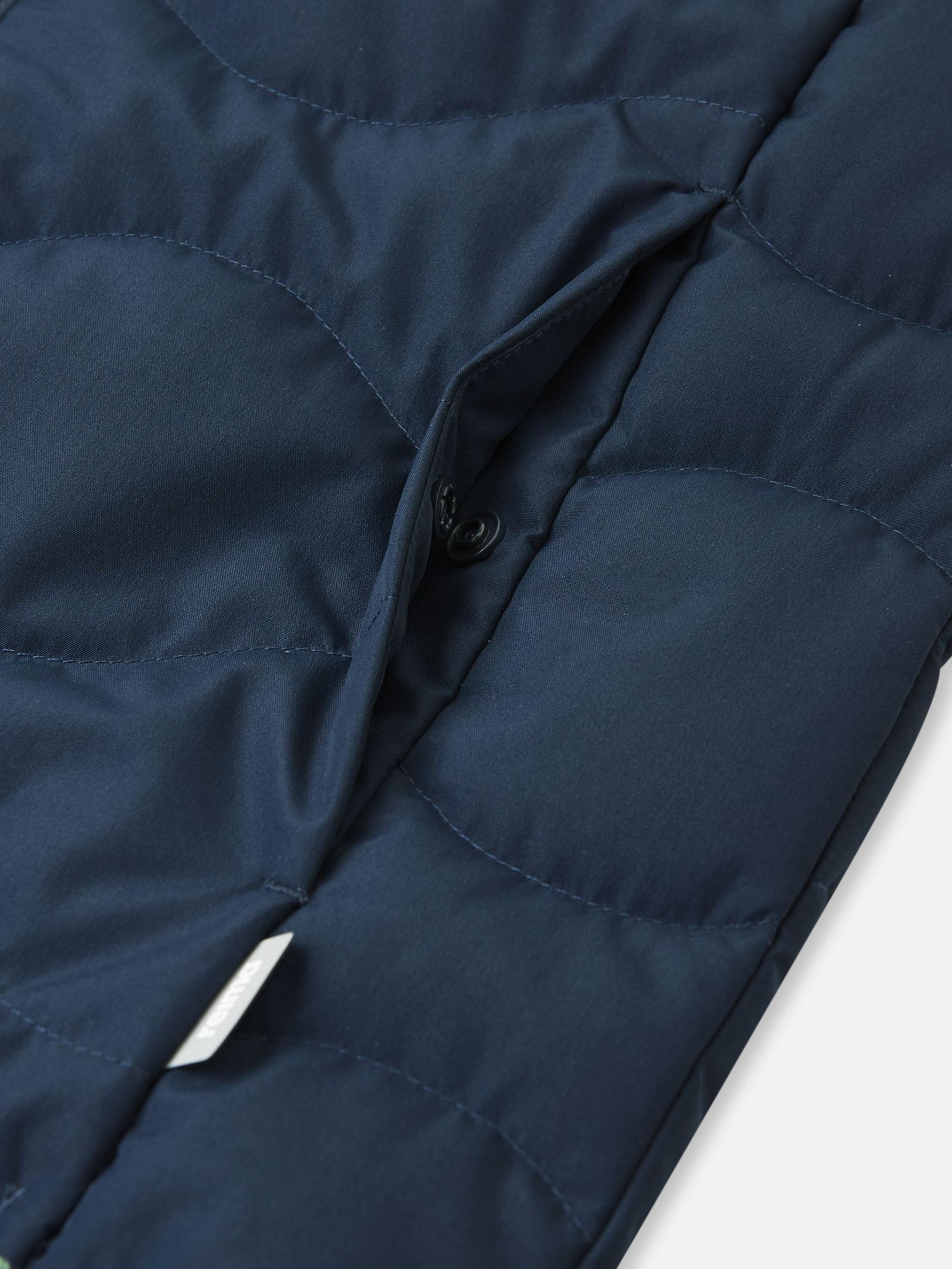 Состав: Reimatec ultra light BS GRS: 100% переработанный полиэстер, полиуретановое ламинирование Температурный режим: +5°...-10°C Водонепроницаемость основного материала: >10 000 Воздухопроводимость основного материала: >7 000 Материал:ReimaTec ultra light BS GRS Ветронепроницаемый материал Водо- и грязеотталкивающий материал Утеплитель пух/перо: Разрешена сушка в стиральной машине/сушильном шкафу Не содержит фторуглероды Переработанный материал Утеплитель пух/перо (80%/20%), Fill Power 650|Передние карманы с кнопками|Основной материал и подкладка одобрены bluesign®|Водо- и грязеотталкивающее покрытие без фторуглеродов BIONIC-FINISH®ECO|Сертифицированно Control Union CU872203 в соответствии со стандартом Responsible Down Standard|Содержит сертифицированные переработанные волокна Уход: Стирать по отдельности, вывернув наизнанку. Застегнуть молнии и липучки. Стирать моющим средством, не содержащим отбеливающие вещества. Полоскать без специального средства. Во избежание изменения цвета изделие необходимо вынуть из стиральной машинки незамедлительно после окончания программы стирки. Барабанное сушение при низкой температуре с 3 теннисными мячиками. Выверните изделие наизнанку в середине сушки. Эту теплую и уютную пуховую жилетку Reima, изготовленную из экологичного материала, одобренного по стандарту bluesign®, можно носить отдельно или сочетать с моделями других слоев для большего тепла в зимние дни. Демисезонная модель, рекомендуем носить как верхнюю одежду до 0°C, в зависимости от остальных слоев одежды. Она очень простая в уходе благодаря экологичной пропитке BIONIC-FINISH®ECO без фторуглеродов, обеспечивающей превосходные водонепроницаемые и грязеотталкивающие свойства. Абсолютно незаменимая вещь для любого зимнего гардероба! Этот жилет с великолепным утеплителем из перьев и пуха, сертифицированных по стандарту ответственного производства, выполнен с двумя удобными передними карманами, уютно согревающими руки.