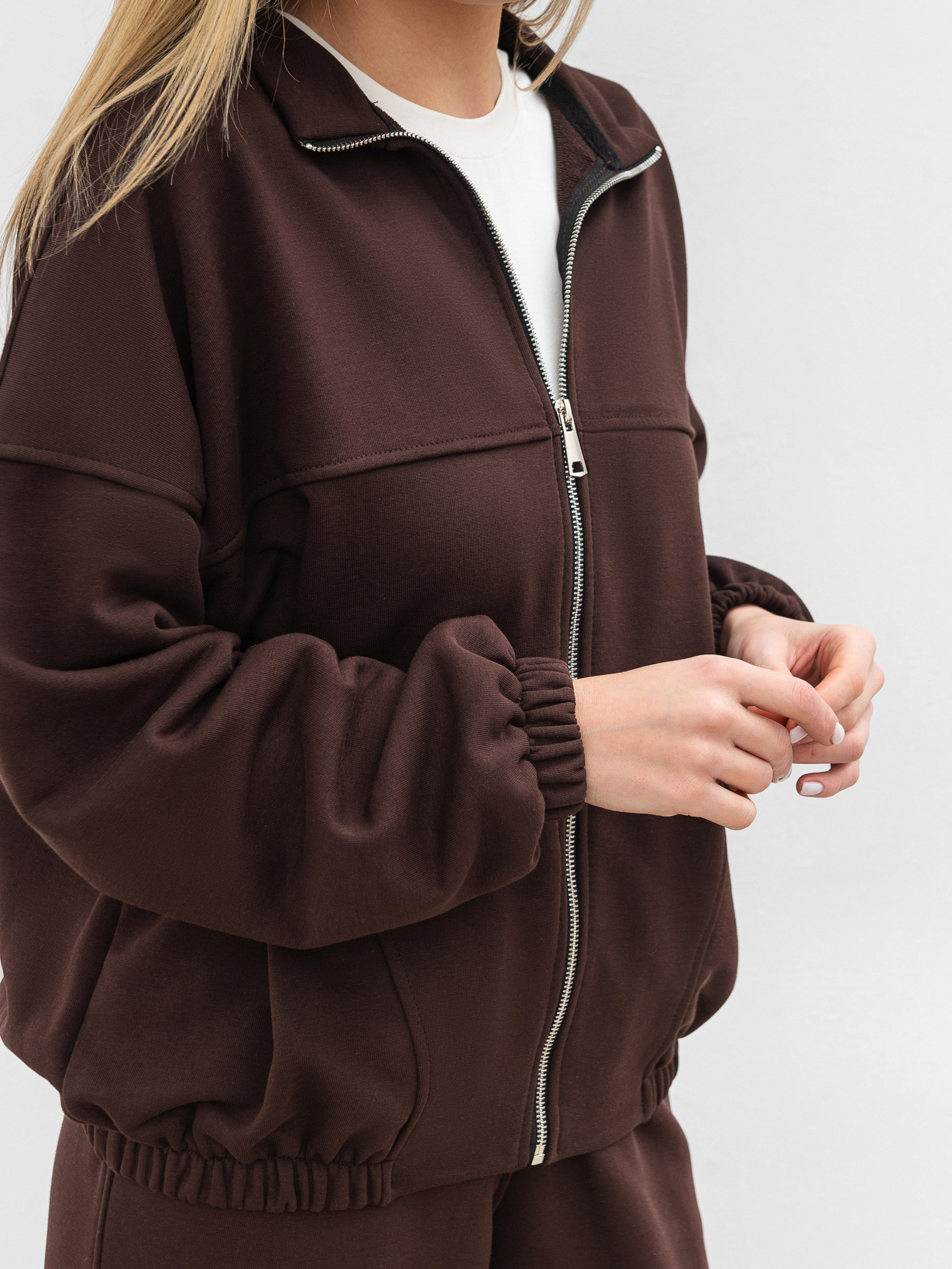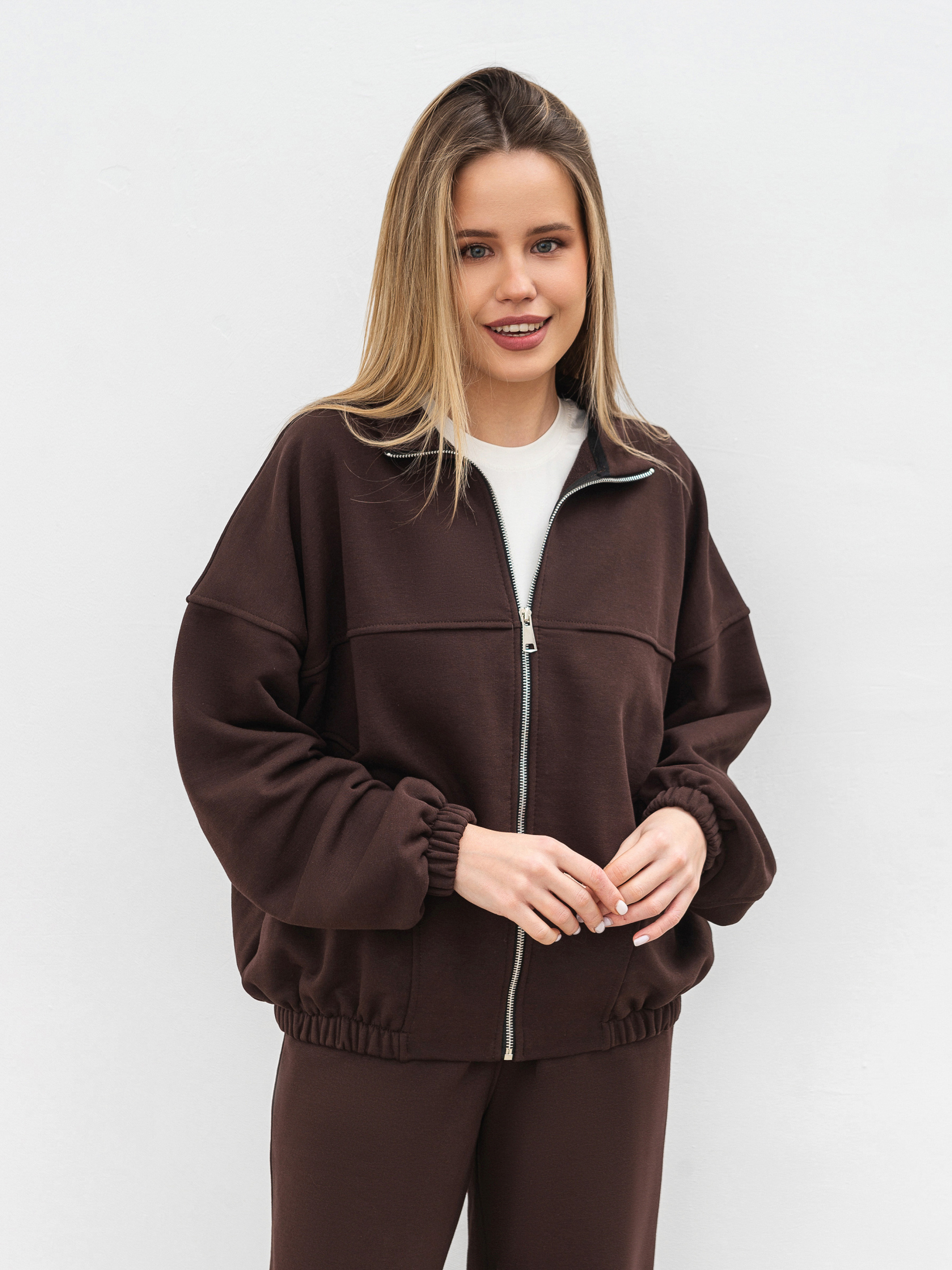 Бомбер Бабл - это стильная и универсальная вещь для любого сезона. Его прямой силуэт обеспечивает комфортную посадку, а мягкий трикотаж трехнитка приятен к телу и хорошо держит форму. Благодаря содержанию хлопка в составе ткани бомбер дышит , а полиэстер обеспечивает износостойкость. Переднюю часть модели украшают декоративные рельефы. Застежка на металлическую молнию цвета светлого никеля добавляет акцента и практичности. Рукава и низ изделия оформлены широкой резинкой, что подчеркивает силуэт и создает гармоничный вид. Этот бомбер прекрасно сочетается с джинсами, спортивными штанами или трикотажными платьями. Идеальный вариант для тех, кто ищет комфортную и одновременно акцентную вещь в свой гардероб. XS-S Длина по спине: 57 см Длина рукава: 46 см Полуобхват груди: 63 см Плечи: 69 см Полуобхват талии: 61 см S-M Длина по спине: 58 см Длина рукава: 46 см Полуобхват груди: 65 см Плечи: 72 см Полуобхват талии: 61 см M-L Длина по спине: 61 см Длина рукава: 46 см Полуобхват груди: 69 см Плечи: 73 см Полуобхват талии: 64 см L-XL Длина по спине: 61 см Длина рукава: 47 см Полуобхват груди: 70 см Плечи: 73 см Полуобхват талии: 66 см
