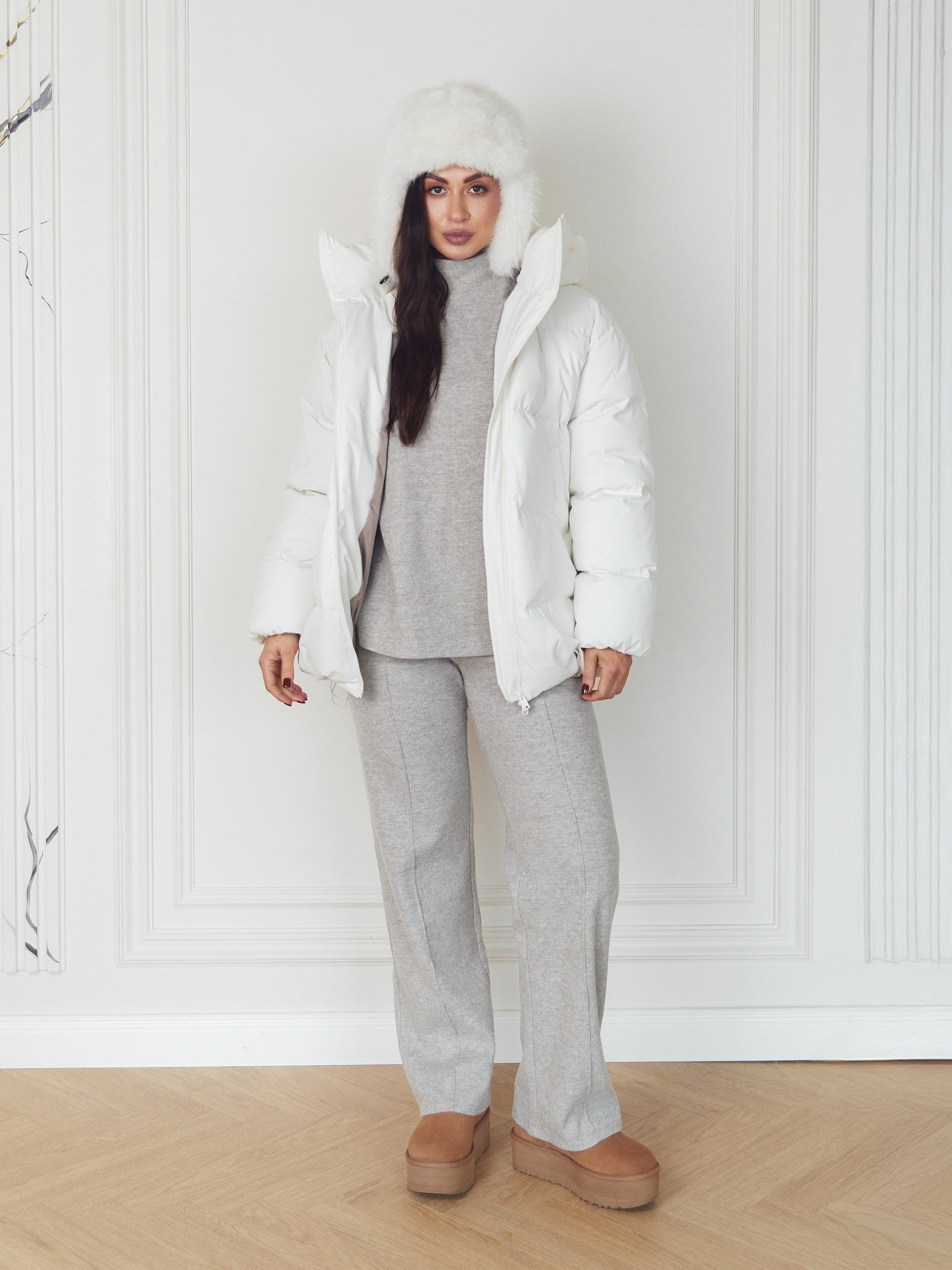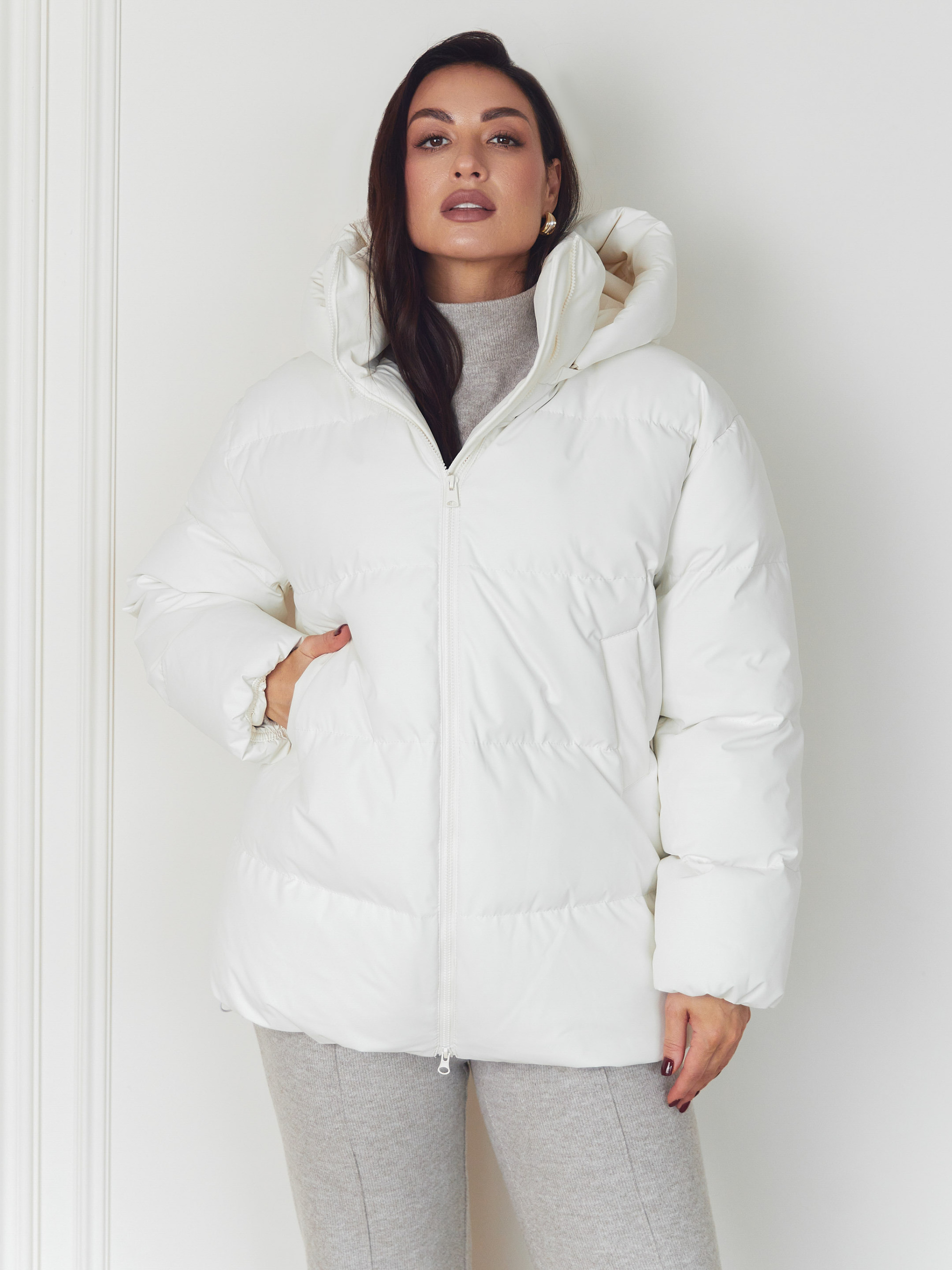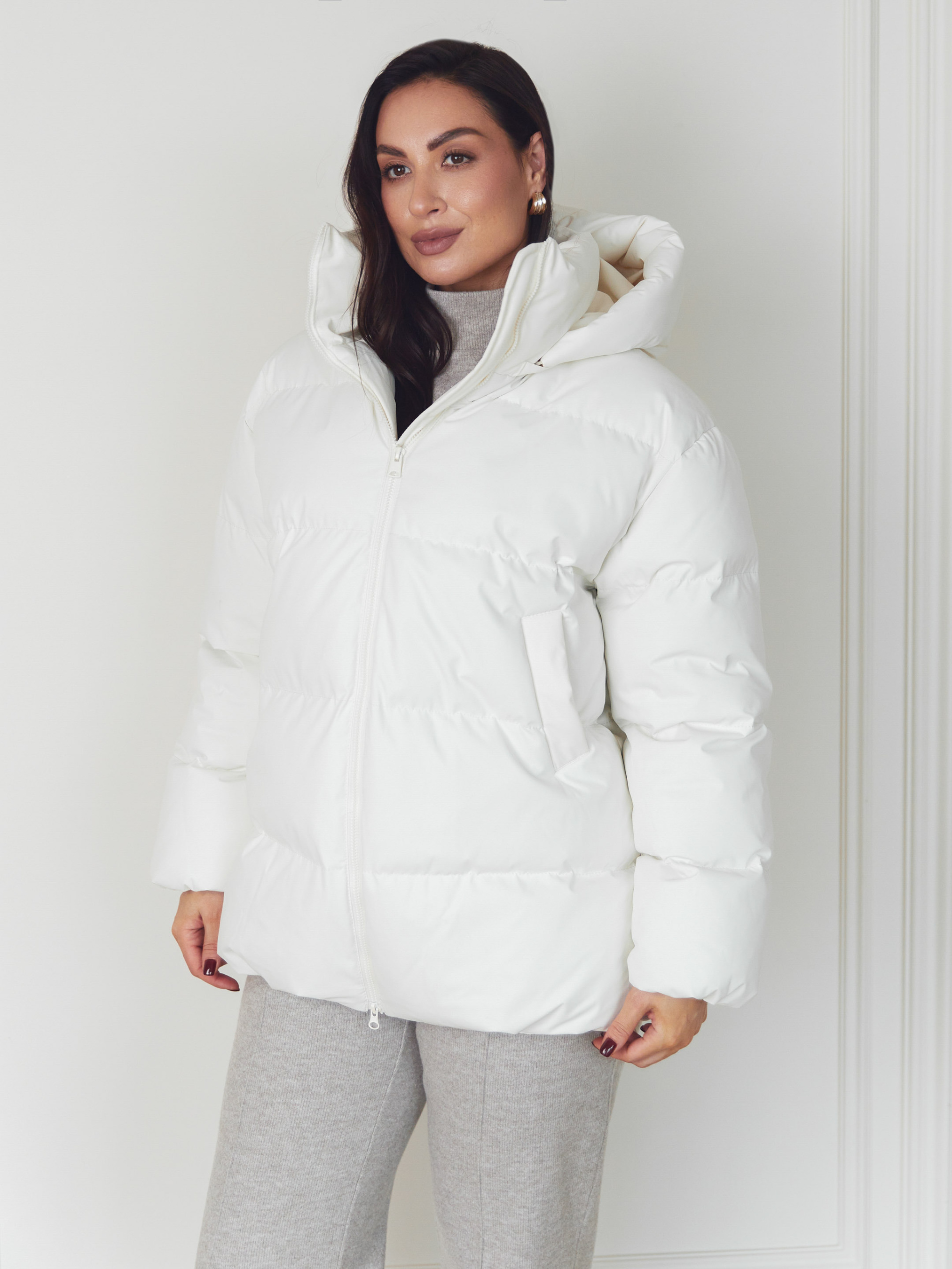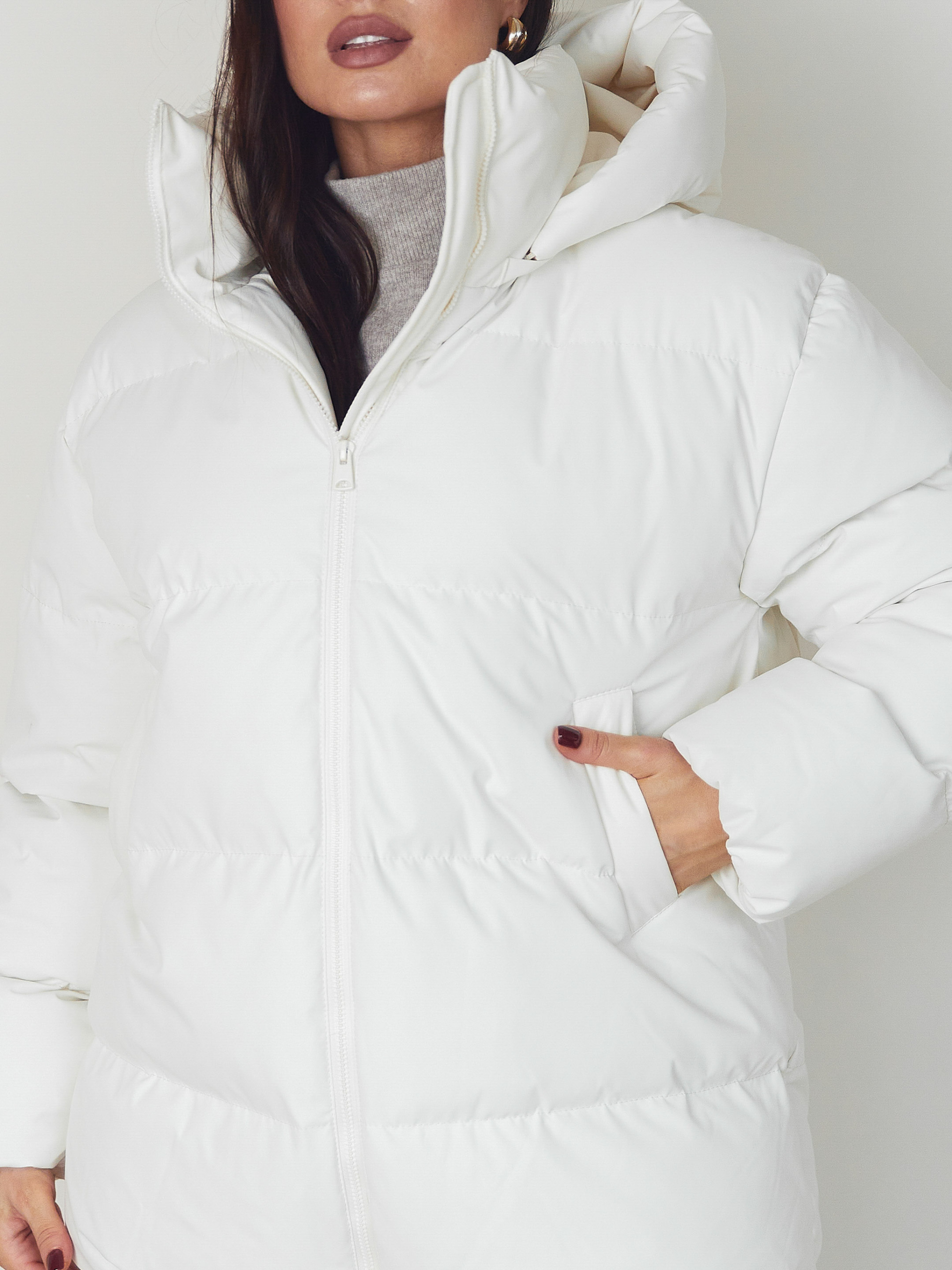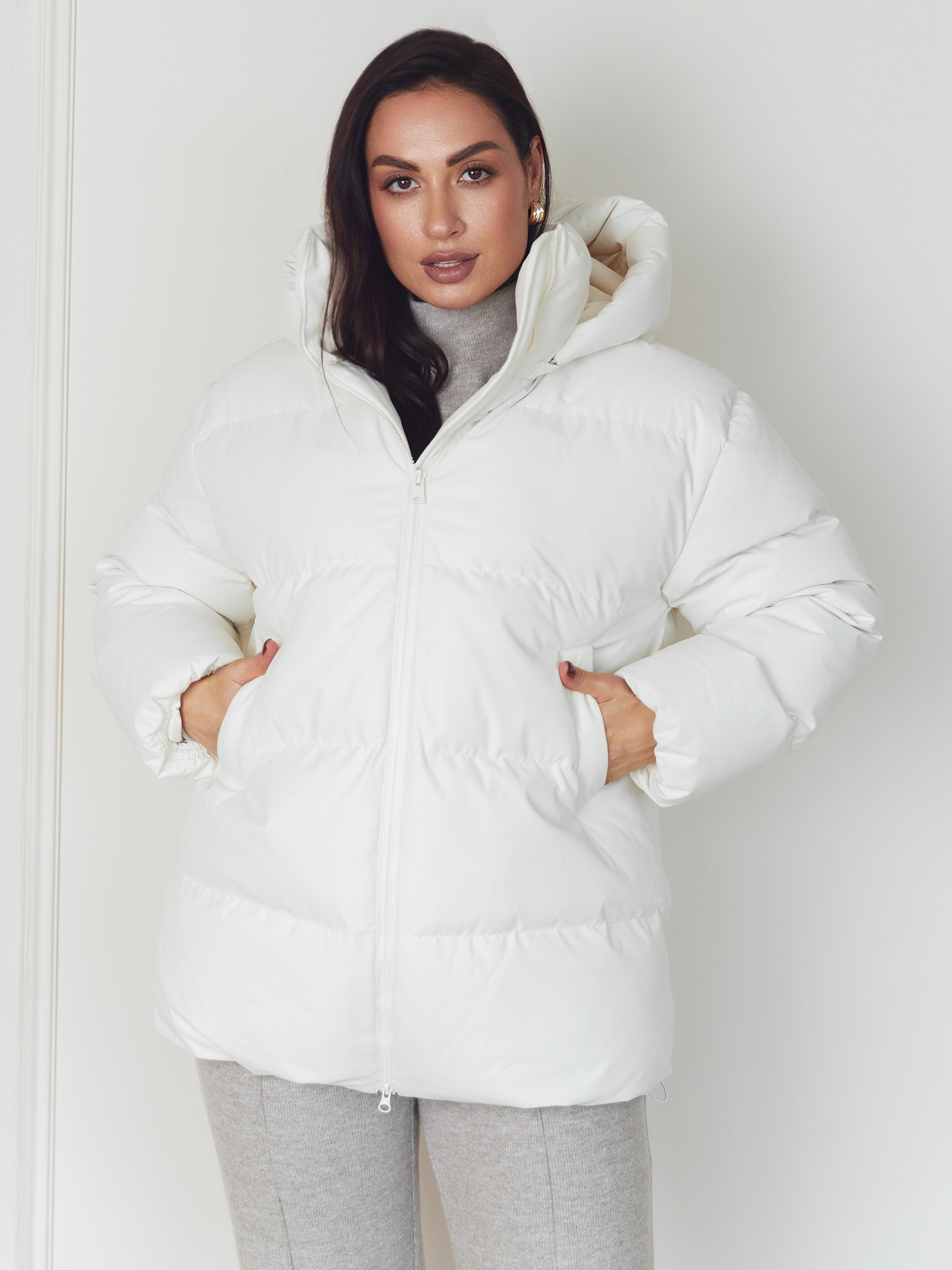 Куртка Seventeen 2347. | Winter 25 part 2 Зимняя куртка в белом цвете – как тихая сила холодного сезона. Она окутывает простор вокруг фигуры, даря ощущение защищенности, тепла и свободы движения. Модель создана для зимы, где комфорт должен быть бескомпромиссным, а силуэт – современным и уверенным. Фасон Свободный крой с приспущенной линией рукава формирует расслабленный, актуальный объем. Куртка легко вписывается в многослойные образы, не ограничивает движений и хорошо садится на разные типы фигур. Съемный капюшон придает универсальности – вы сами выбираете настроение образа. Затяжка понизу позволяет регулировать посадку и защищает от холодного воздуха. Материал Верх выполнен из плащевки Вента – прочной, износостойкой и практичной ткани, рассчитанной на зимние условия. Наполнитель — набивной синтепух 250, хорошо удерживающий тепло, сохраняя легкость изделия и комфорт при ежедневной носке. Подробности Декоративная отсрочка подчеркивает форму модели, фурнитура (молния, резинка, зажим) выполняет не только функциональную, но и стилистическую роль. Капюшон добавляет защиты от ветра и снега, оставляя образ цельным и продуманным. S–M: обхват груди 84–88 см, талии 68–72 см, бедер 92–96 см, длина изделия – 75 см, длина рукава – 61 см L–XL: обхват груди 92–96 см, талии 76–81 см, бедер 100–105 см, длина изделия – 76 см, длина рукава – 61 см 2XL–3XL: обхват груди 100–105 см, талии 86–91 см, бедер 110–115 см, длина изделия – 77 см, длина рукава – 61 см