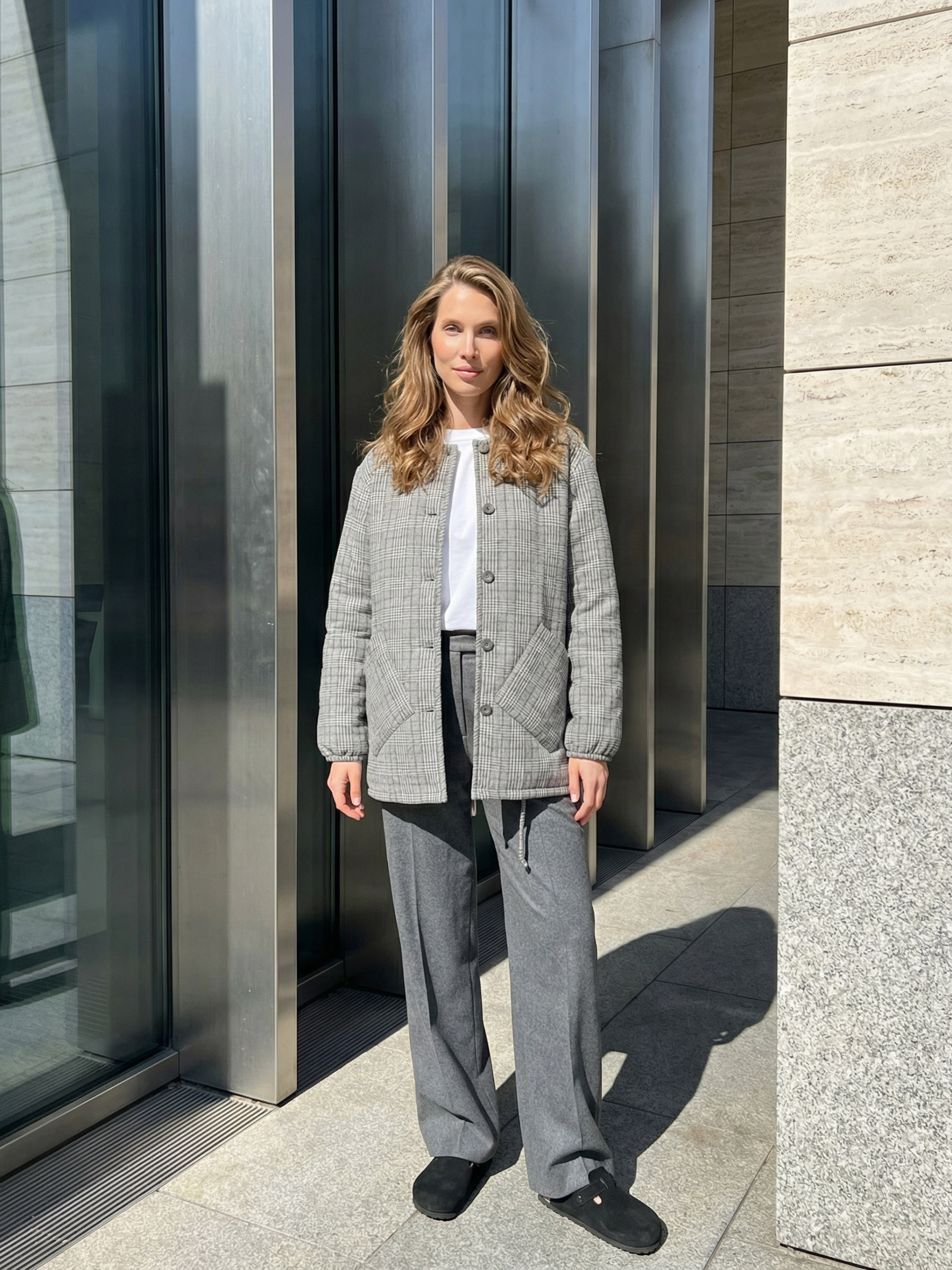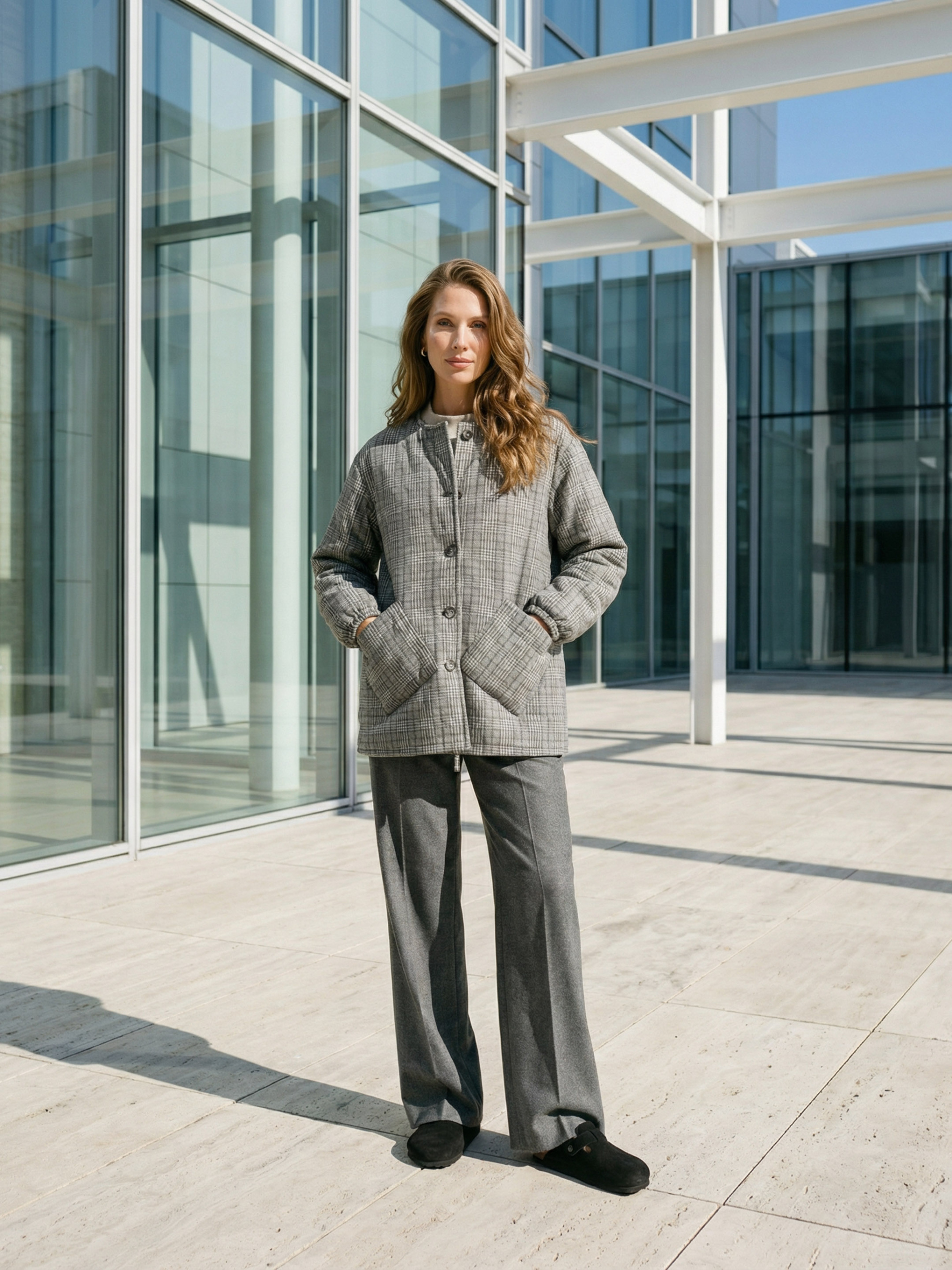 Куртка Seventeen 2369.6638 из коллекции Pre‑spring 26 — стильная демисезонная модель, созданная для современного повседневного образа с лёгкостью и практичностью. Фасон — прямой, свободный, обеспечивает свободу движений и формирует актуальный relaxed‑силуэт. Свободные рукава и спущенная линия плеч создают непринуждённый настрой, а отсутствие воротника делает модель лёгкой и универсальной для демисезонных ансамблей. Центральная застёжка на пуговицах добавляет функциональности, а накладные карманы и аккуратная отстрочка по всему изделию придают практичность и текстурный характер. Материал — кашемир с наполнителем синтепух 100 г, сочетает мягкость, тепло и комфорт, не стесняя движений в прохладные дни. Ткань приятна к телу, хорошо держит форму и сохраняет привлекательный вид при правильном уходе. Размерная сетка двойная: S–M: Обхват груди: 84–88 см; Обхват талии: 68–72 см; Обхват бёдер: 92–96 см. L–XL: Обхват груди: 92–96 см; Обхват талии: 76–81 см; Обхват бёдер: 100–105 см. 2XL–3XL: Обхват груди: 100–105 см; Обхват талии: 86–91 см; Обхват бёдер: 110–115 см. Длина изделия: S-M: 75см; L-XL: 76см; 2XL–3XL: 77см. Длина рукава: S-M: 59см; L-XL: 59см; 2XL–3XL: 59см. Характеристики: Коллекция: Pre‑spring 26 Материал: кашемир, наполнитель — синтепух 100 г Цвет: серая клетка Фурнитура: пуговицы Фасон: прямой, свободный Сезон: демисезон Декоративные элементы: накладные карманы, отстрочка Конструктивные элементы: спущенные плечи, без воротника, карманы Комплектация: куртка Уход за одеждой: ручная стирка до 30°
