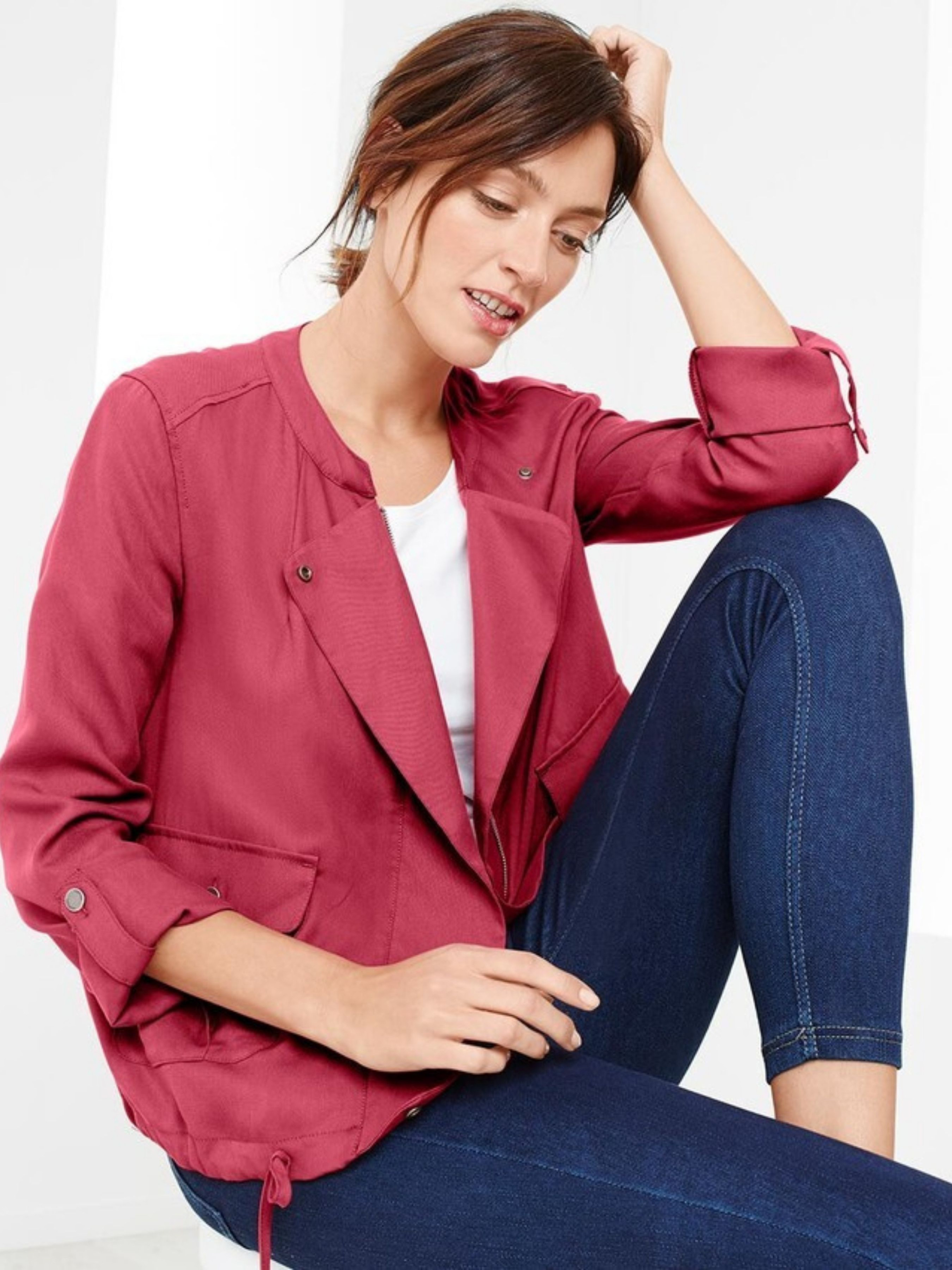 Женская куртка Tchibo, розовая Описание: Эта куртка имеет свободный крой и стильный спортивный вид благодаря продуманным деталям: закрученные рукава с ремешком, два больших передних кармана на кнопках с защёлкой и стяжная лента внизу, спрятанная в тоннеле, для регулировки объёма. Изготовлена из волокна TENCEL®, что обеспечивает лёгкость, мягкость и комфорт при носке. Детали: Свободный крой Закрученные рукава с ремешком Два больших передних кармана на кнопках с защёлкой Стяжная лента для регулировки объёма внизу Спортивный стиль Цвет: розовый Состав: 100% лиоцелл (TENCEL®) Размер: Европейский 40 (L) / Украинский 46–48 ПОГ (полуобхват груди): 55 см ПОТ (полуобхват талии): 54 см ПОБ (полуобхват бедер): 57 см Длина рукава: 62 см Общая длина: 62 см Примечание: Одежда бренда Tchibo обычно не имеет бумажных этикеток. В большинстве случаев внутренние бирки с составом ткани, названием бренда или размером срезаны частично или полностью.