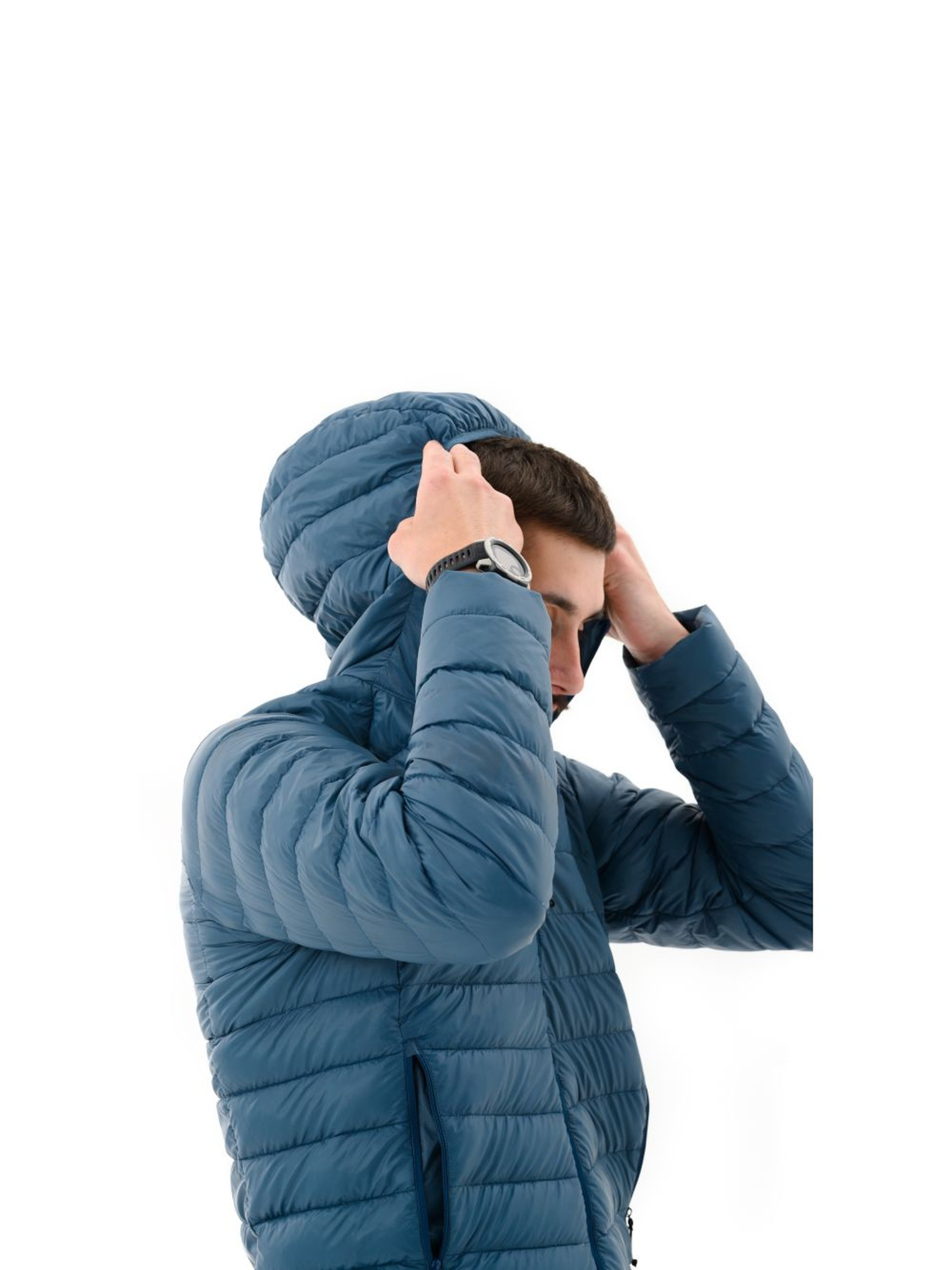 Куртка спортивного покроя, спроектированная для удобного использования со штормовым или хайкинговим рюкзаком, альпинистской системой. В ней будет комфортно во время зимних экспедиций, походов в горы и долгих скитаний. Эргономичный капюшон надежно защищает от холода, а удлиненные рукава позволяют свободно поднимать руки вверх. В комплекте есть специальный мешочек, в сложенном виде куртка занимает минимум места.