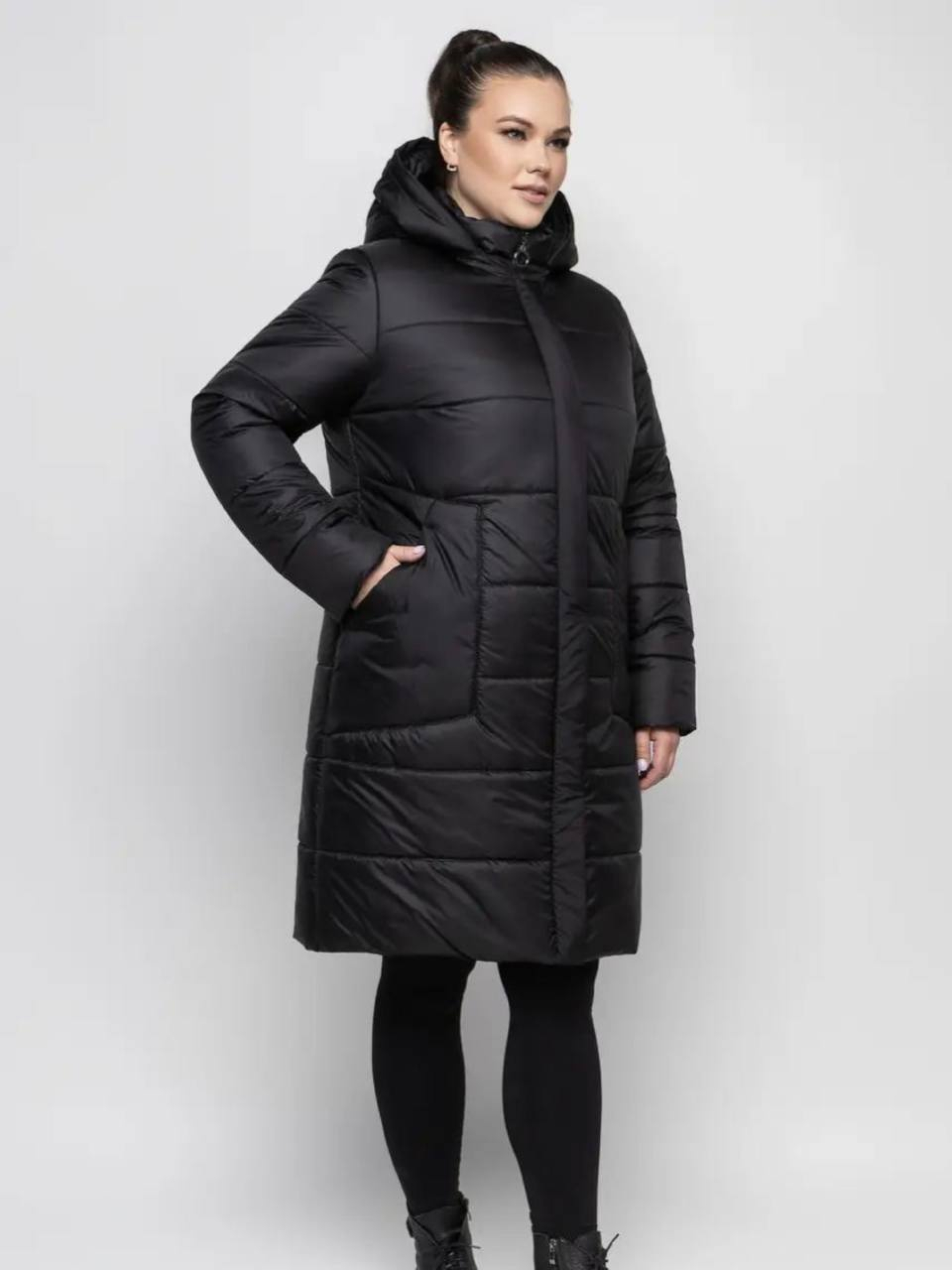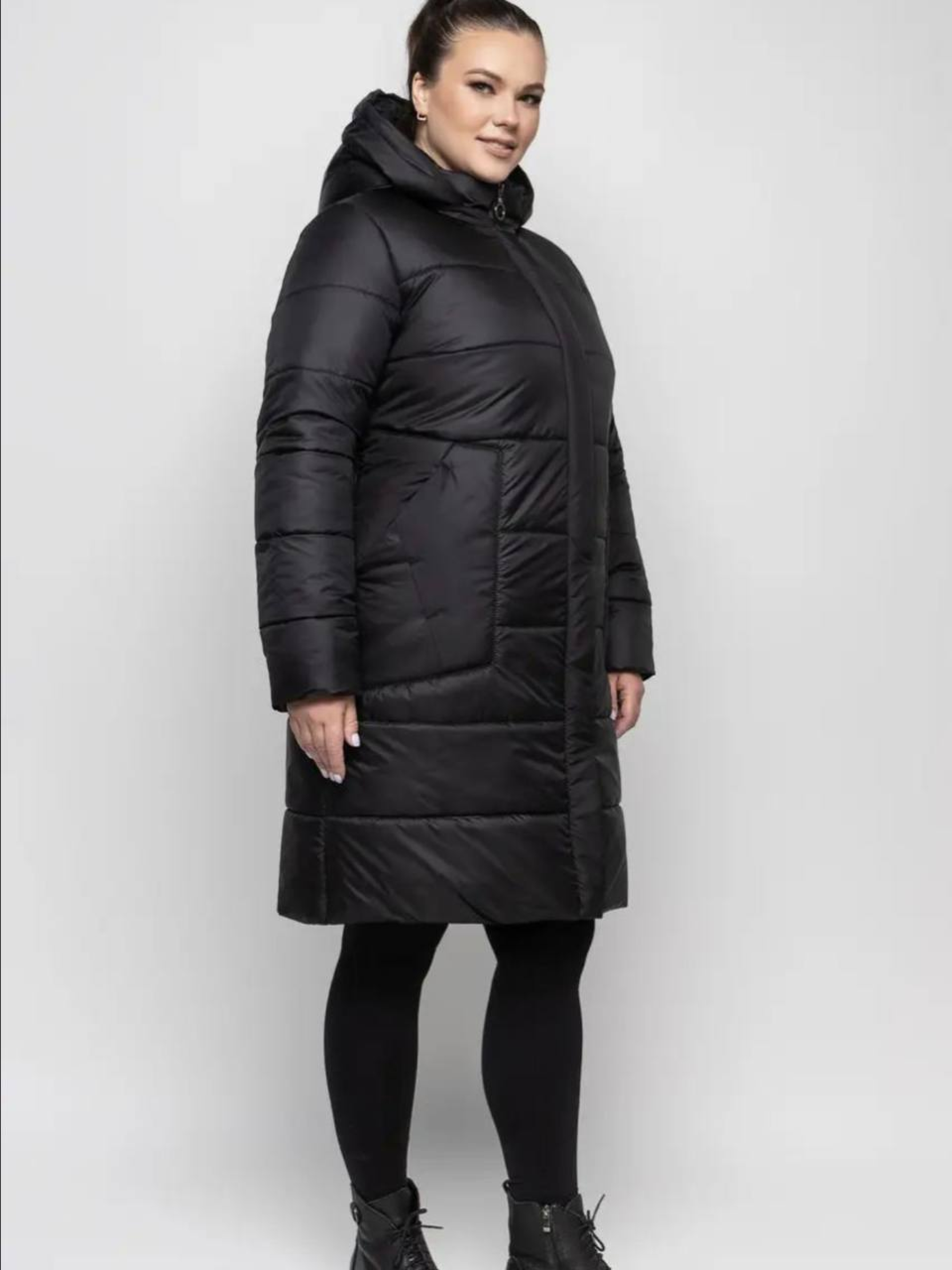 Стильный чёрный молодёжный пуховик без меха Размеры 48- 62. Длина спинки 100 см. Рукав 65 см. Стильная модель молодёжного пуховика. Капюшон съёмный. Черная куртка зимняя женская в Харькове представлена в лаконичном дизайне прямого полуприталенного силуэта. Это позволяет изделию быть востребованным у молодежи и женщин, обеспечивая им небывалый комфорт и уют в любую погоду зимой. Преимущества модели: качественный, прочный материал верха – плащевка, что износоустойчива, длительное время сохраняет цвет и свои положительные характеристики; утеплитель синтепух обеспечивает тепло, при этом он не дает лишний объем, прекрасно стирается; практичный черный цвет, что сегодня весьма актуален; оптимальная длина до колена позволяет сочетать пуховик женский с различными предметами гардероба и эффективно согревать; глубокий съемный капюшон без меха дарит комфорт от использования, позволяет эксплуатацию без головного убора; для дополнительного комфорта в рукавах имеются манжеты; длина модели 100 см, рукава – 65 см, доступно в размерах – 48- 62. Размер 48 – Объём груди 98–102 см, Объём талии 79–84 см, Объём бёдер 104–108 см Размер 50 – Объём груди 102–106 см, Объём талии 85–89 см, Объём бёдер 108–112 см Размер 52 – Объём груди 106–110 см, Объём талии 90–93 см, Объём бёдер 112–116 см Размер 54 – Объём груди 110–114 см, Объём талии 94–97 см, Объём бёдер 116–122 см Размер 56 – Объём груди 114–118 см, Объём талии 98–101 см, Объём бёдер 122–126 см Размер 58 – Объём груди 118–122 см, Объём талии 102–105 см, Объём бёдер 126–130 см Размер 60 – Объём груди 122–126 см, Объём талии 106–109 см, Объём бёдер 130–134 см Размер 62 – Объём груди 126–130 см, Объём талии 110–113 см, Объём бёдер 134–138 см