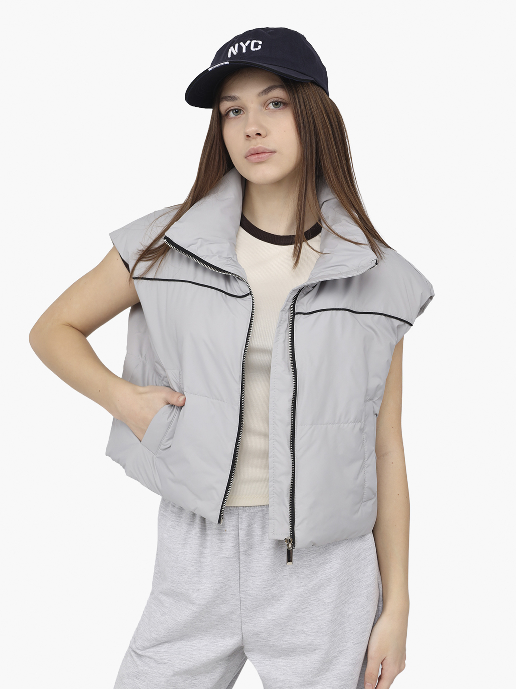 Жилет утеплённый женский цвет светло-серый ЦБ-00290253 модель ЦБ-00290253