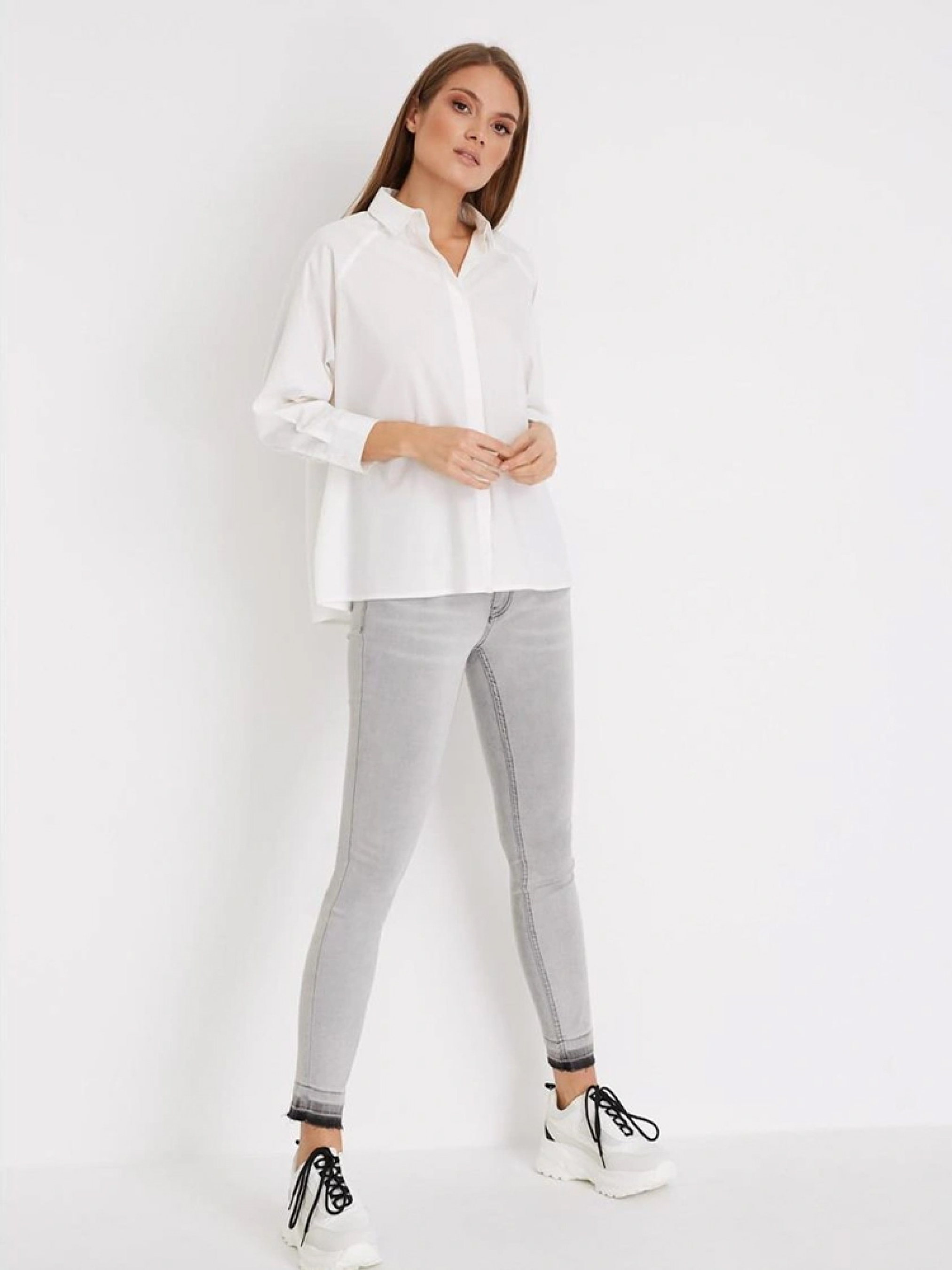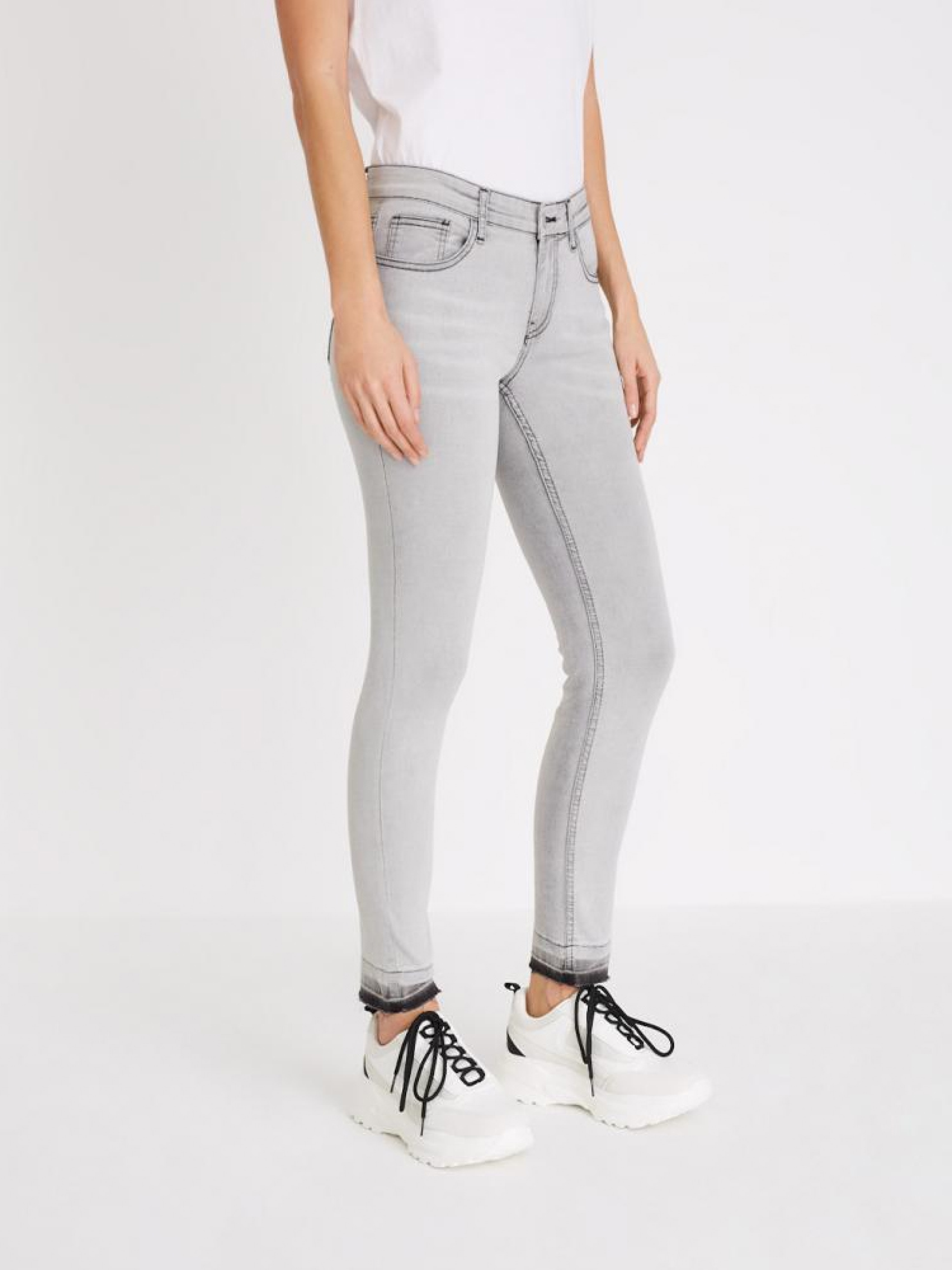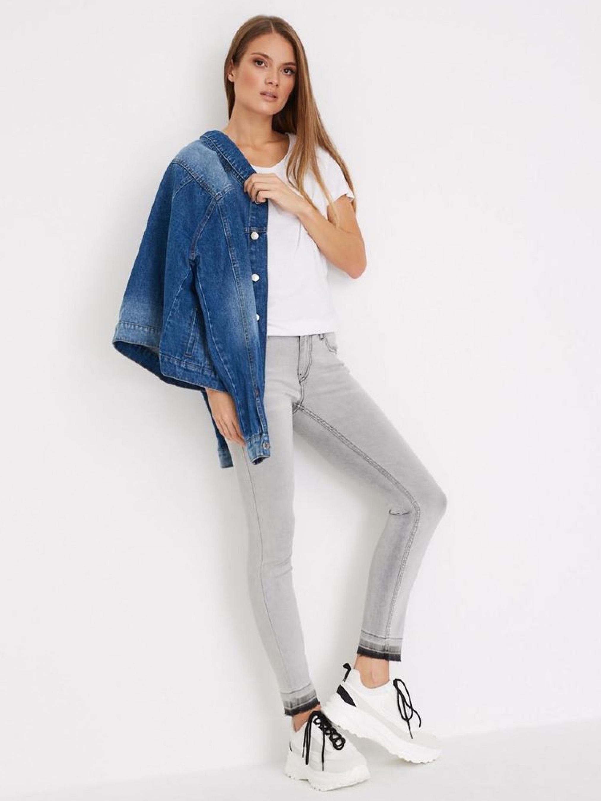 Женские приталенные брюки скинные COG из эластичного денима со средней талией. Закатанная штанина для контрастного эффекта. Изготовлены из качественного мягкого материала, смесь с хлопком, светло-серого цвета. Стильные и комфортные для повседневного использования весной и осенью. Длина до лодыжки. Цвет легкая стирка. Джинсы идеально сочетаются с рубашкой, курткой и высокими кедами из ассортимента. Сезон: Осень-зима Состав: 75% хлопок 15% полиэстер 8% вискоза 2% эластан Размер на модели – 36 Рост модели – 173 см