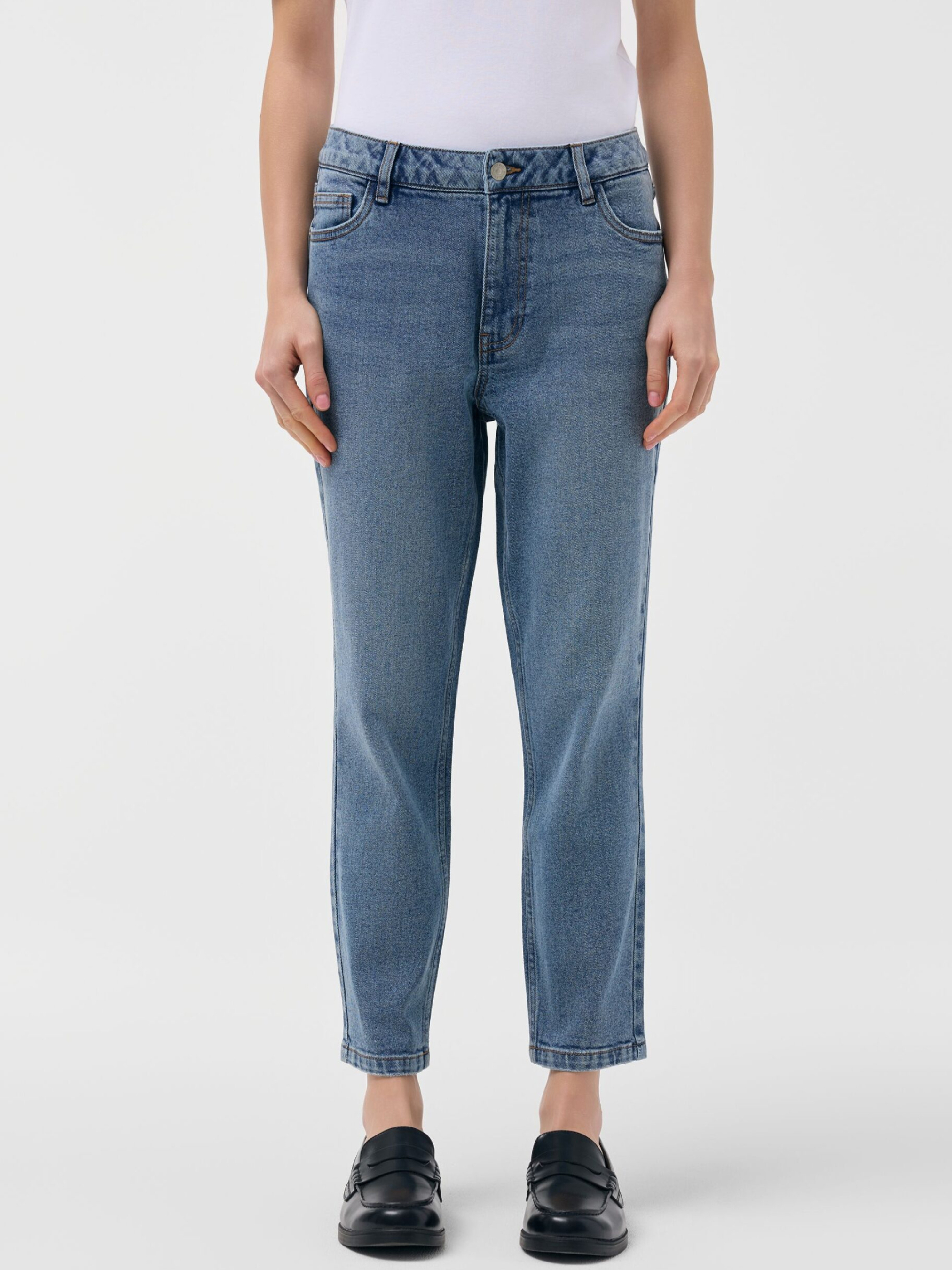 Брюки джинсовые WORDI III 261 / ID: 10048840 Рост модели: 177 см Размер товара: S Свободные джинсовые брюки из эластичного денима: - свободный крой, - средняя посадка, - пять карманов, - силиконовая этикетка сзади, - цвет и эффект вымывания могут несколько отличаться от изображенных на фотографиях из-за естественного процесса производства денима. Эти универсальные джинсы прекрасно подойдут для ежедневных выходов и неформальных встреч с друзьями. Внешний состав 99% хлопок 1% эластан Уход: - стирка при максимум 40 °С - не отбеливать - сушить при низкой температуре - гладить максимум при темп. 150°С - не подвергать химчистке Размер: 34 36 38 40 42 Ширина талии: 35 37 39 41 43 Длина внутренней части штанины: 68 68 68 70 70 Ширина бедра: 29 30 31 32 33 Ширина нижней части штанины: 13,5 14,5 15,5 16,5 17,5